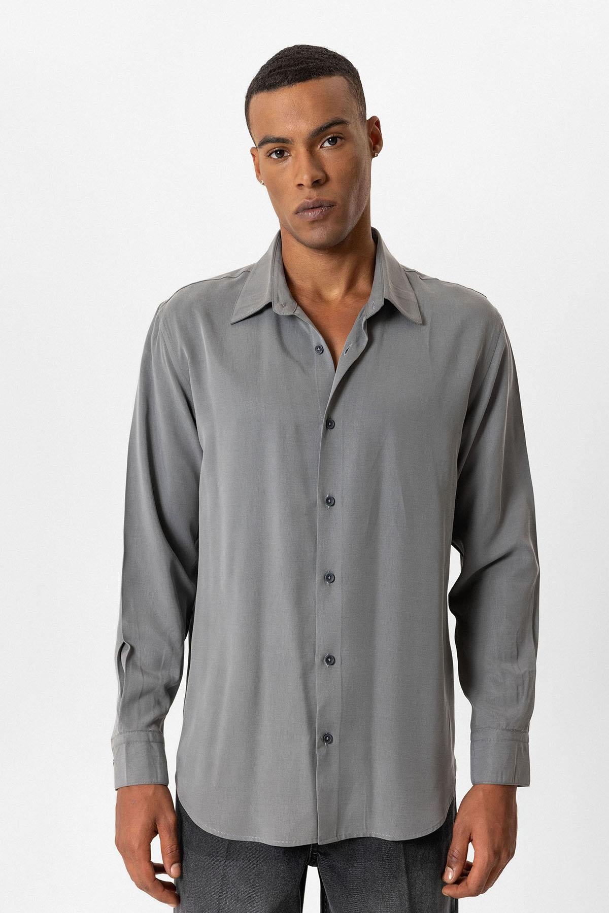 Gri Teknik Tencel Kumaş Erkek Gömlek