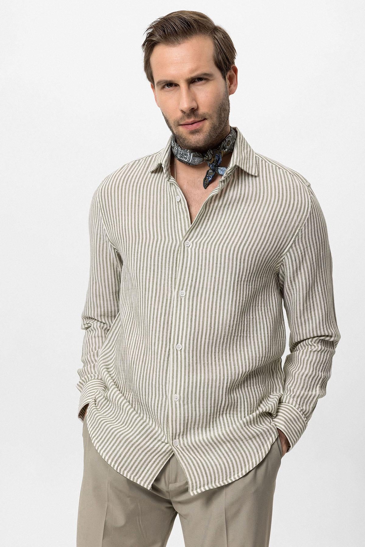 Haki hakimiyetinde özgün duruşuyla öne çıkan Antioch Uzun Kol Gömlekkarakteristik silüet yansıtan lüks tasarımıyla göz dolduruyor.Uzun Kol tasarım Tam Pat Düğmeli kapamasıyla tamamlanıyor. Lüks dokusu ve kalıbıyla son derece konforlu hissetmenizi sağlayacak tasarım günlük şehir stillerinizde ve ofis takımlamalarınızda kullanıma uyum sağlıyor. İsteğinize göre çeşitli pantolonlarınızla beraber kullanabileceğiniz tasarım şık ve iddialı görünüm kazanmanızı sağlıyor ve stilinizi bir adım öne taşıyor.