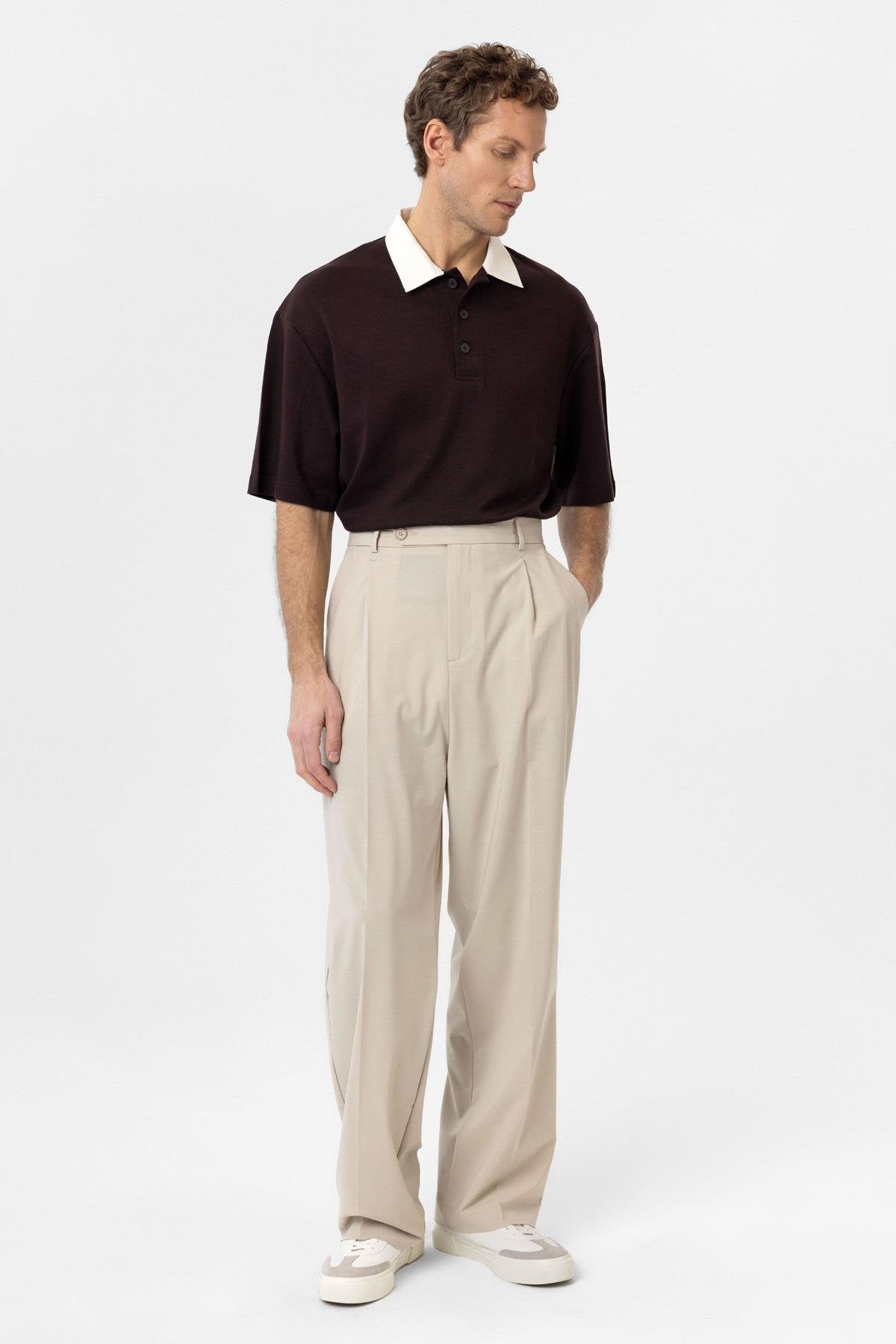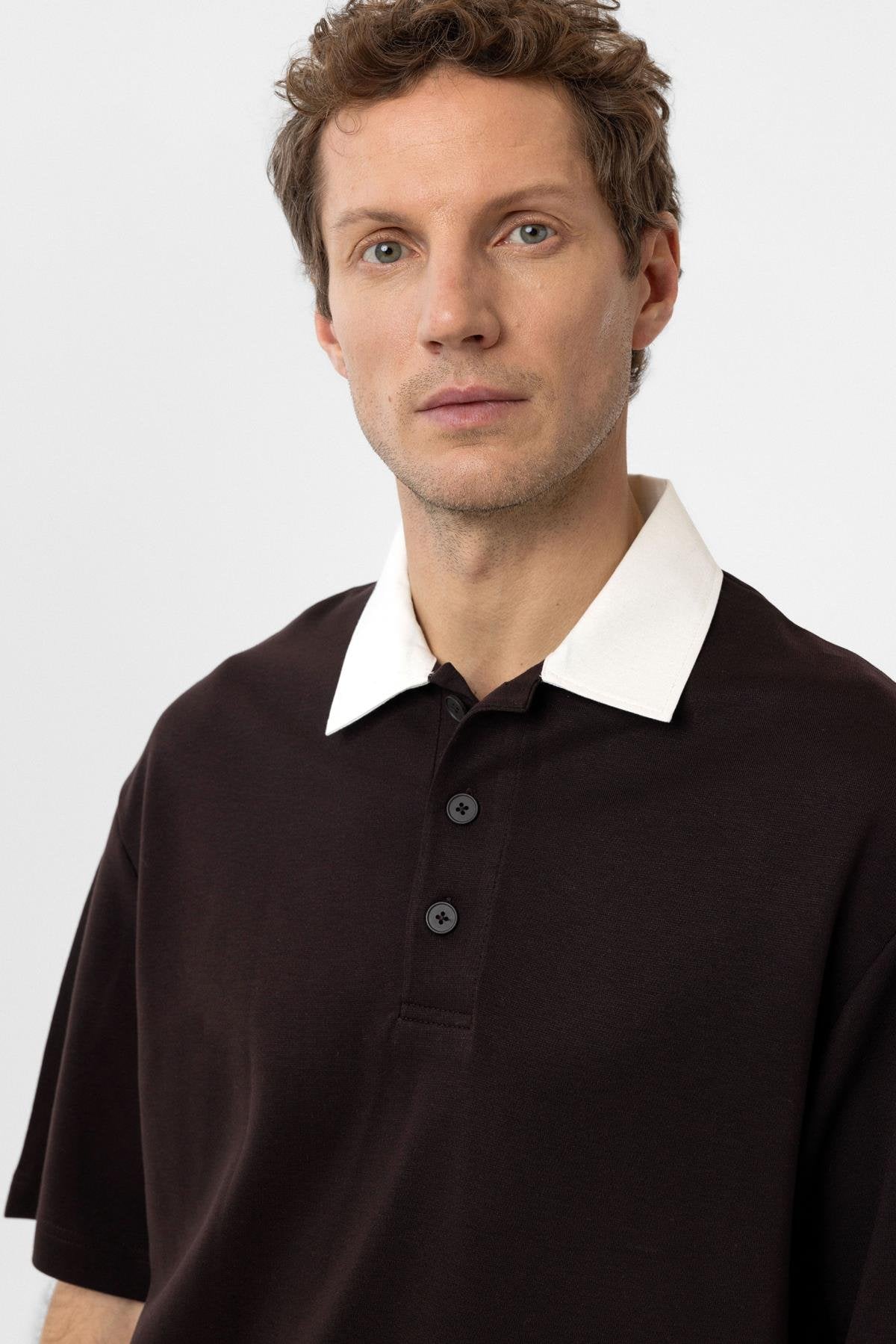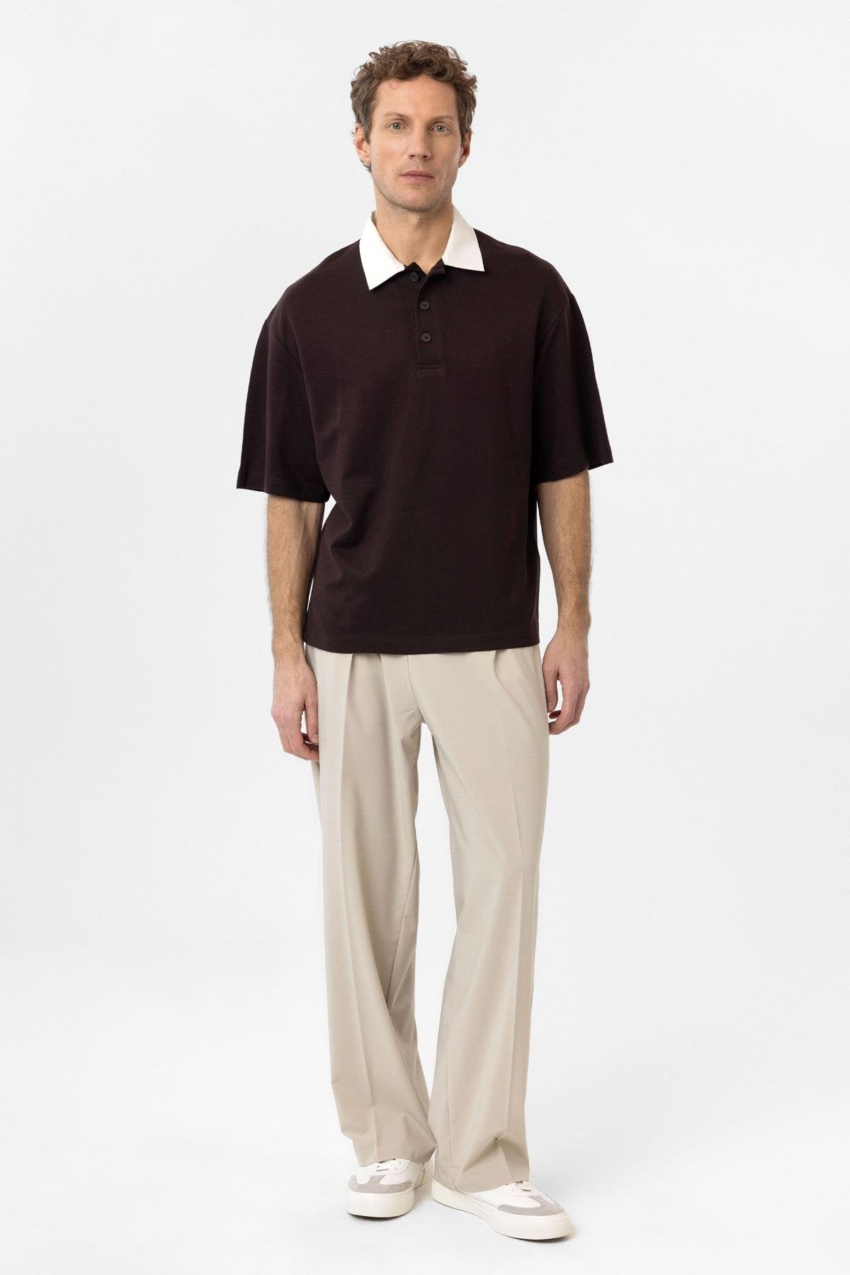 Kahve Kontrast Yaka İNterlok Dokulu Erkek T Shirt