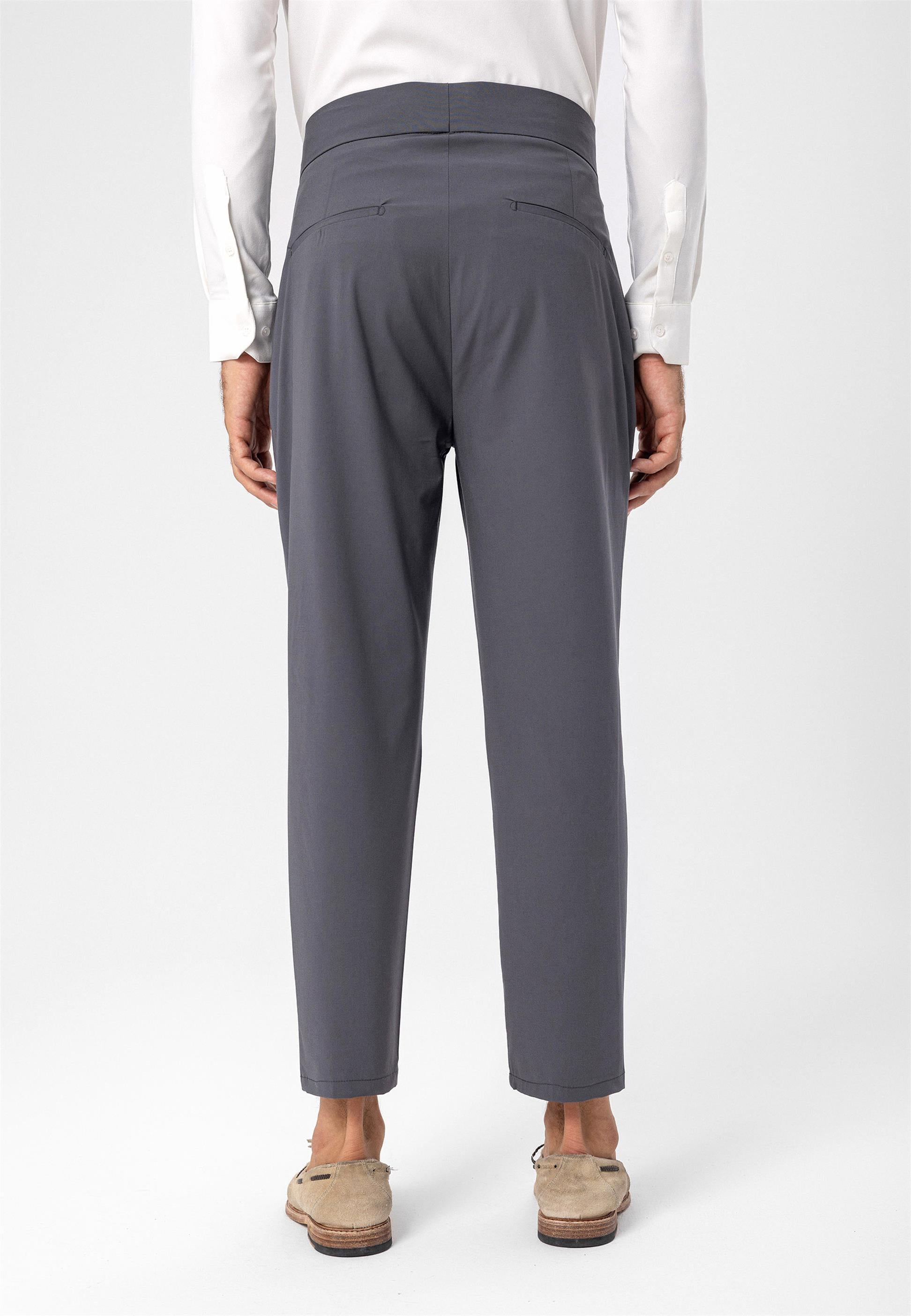 Koyu Gri Yüksek Bel Toka Kemerli Pileli Kumaş Pantolon