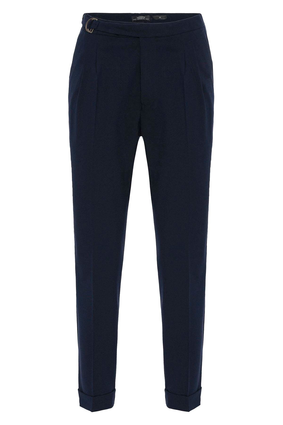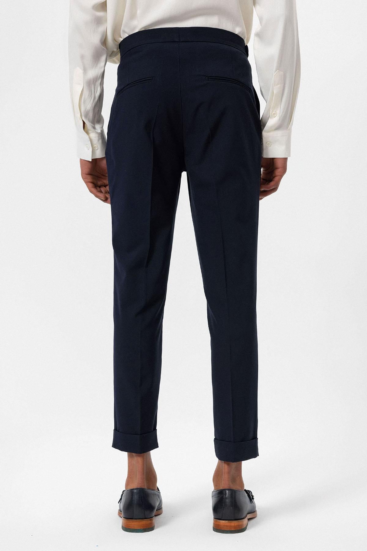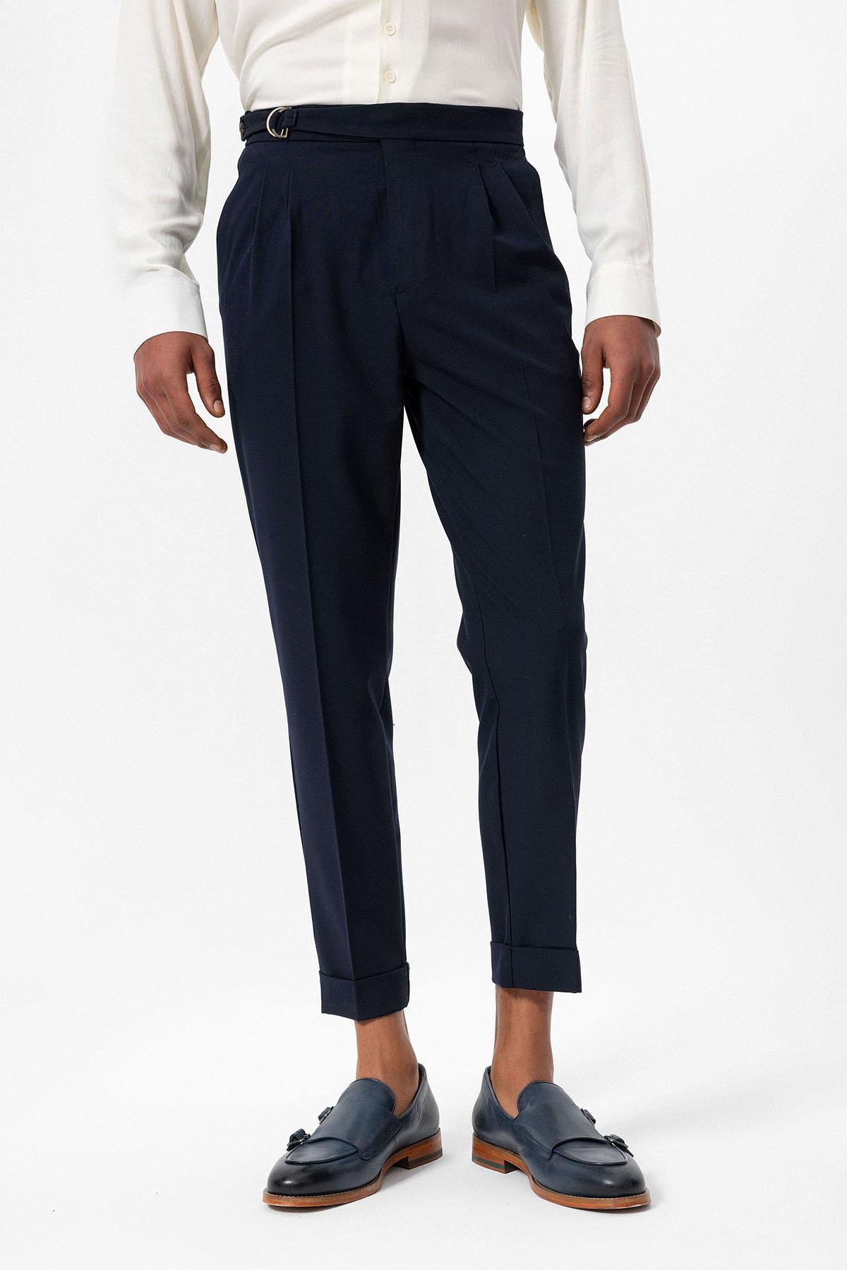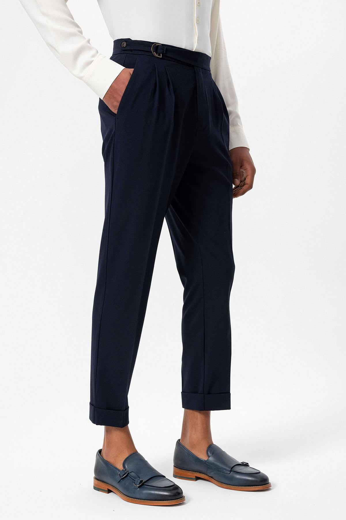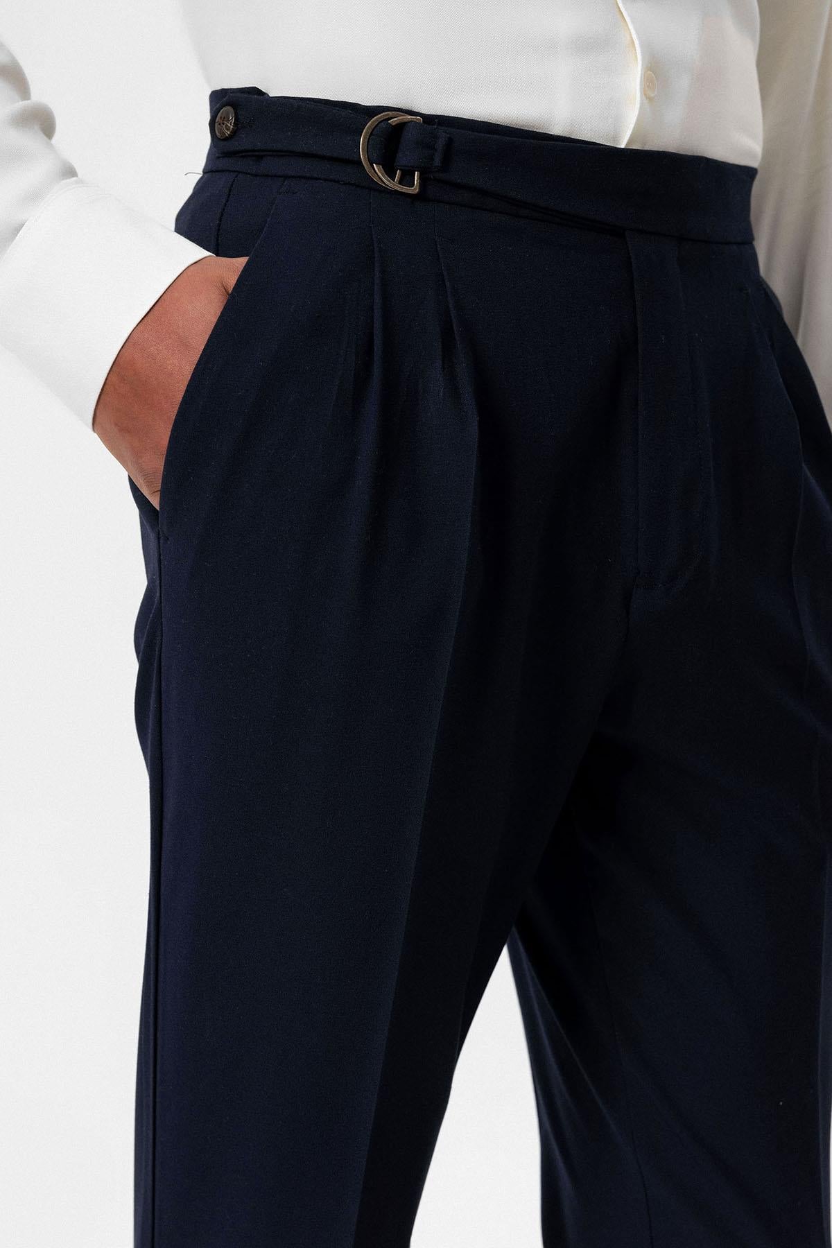 Koyu Lacivert Yüksek Bel Toka Kapama Pileli Erkek Pantolon