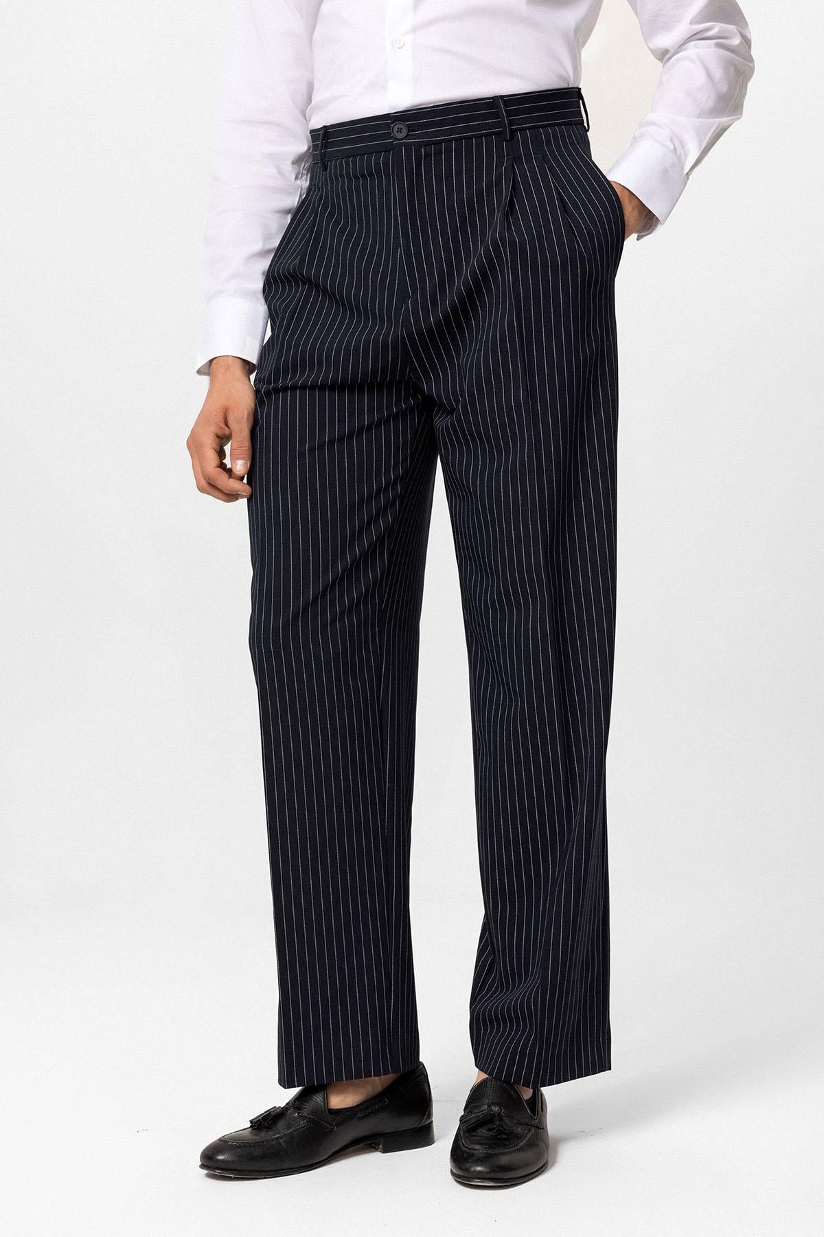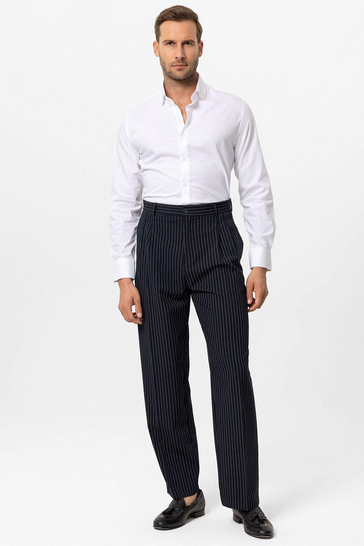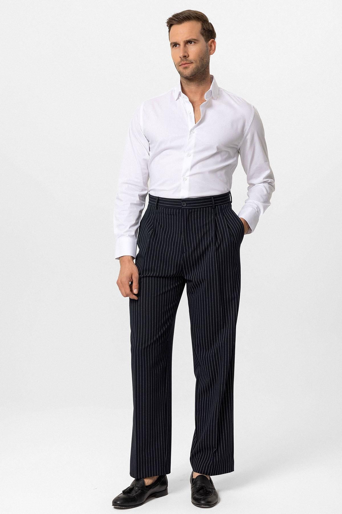 Lacivert Yüksek Bel Relax Fit Çizgili Erkek Pantolon