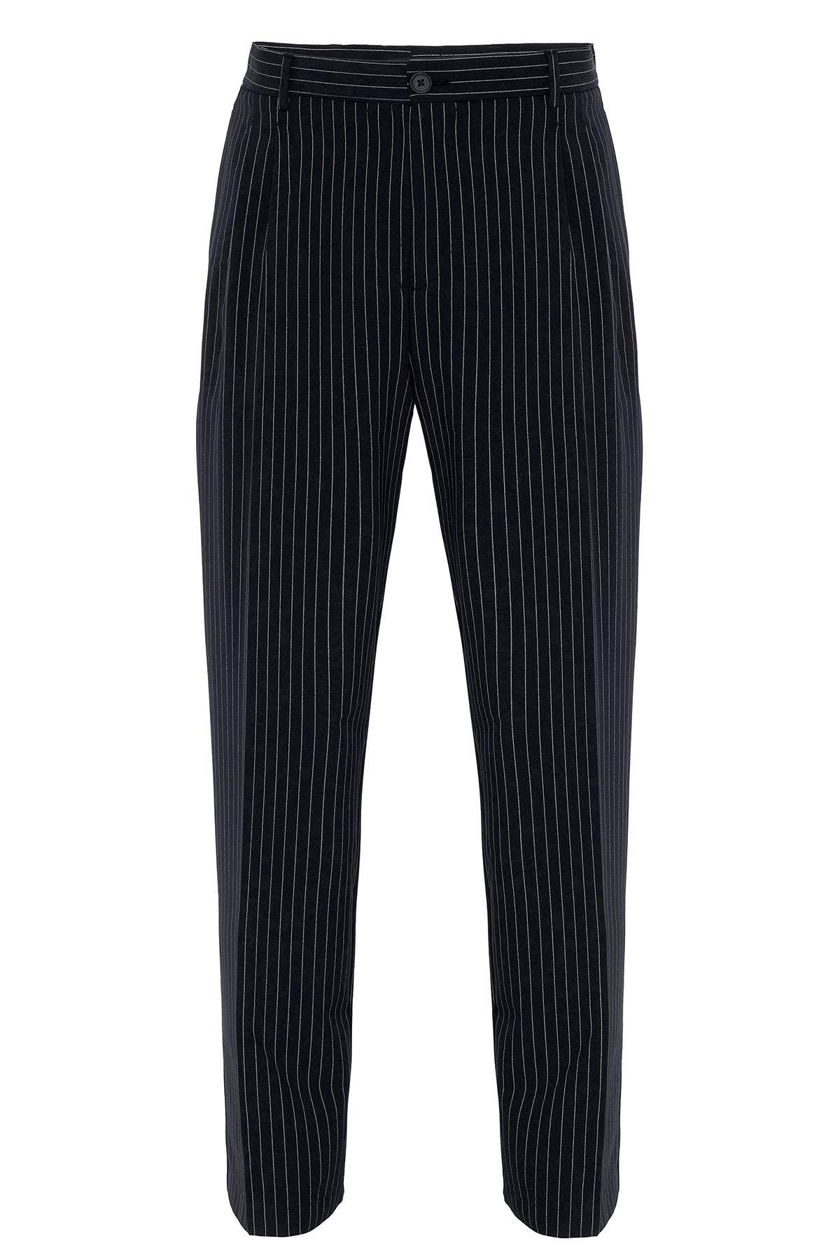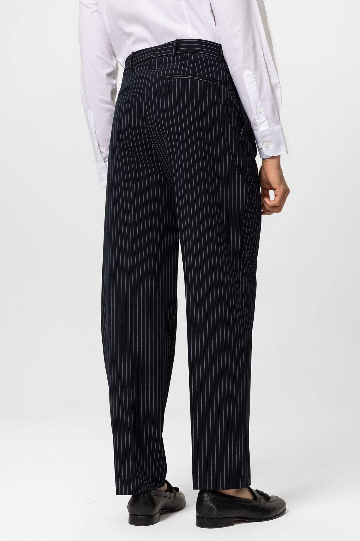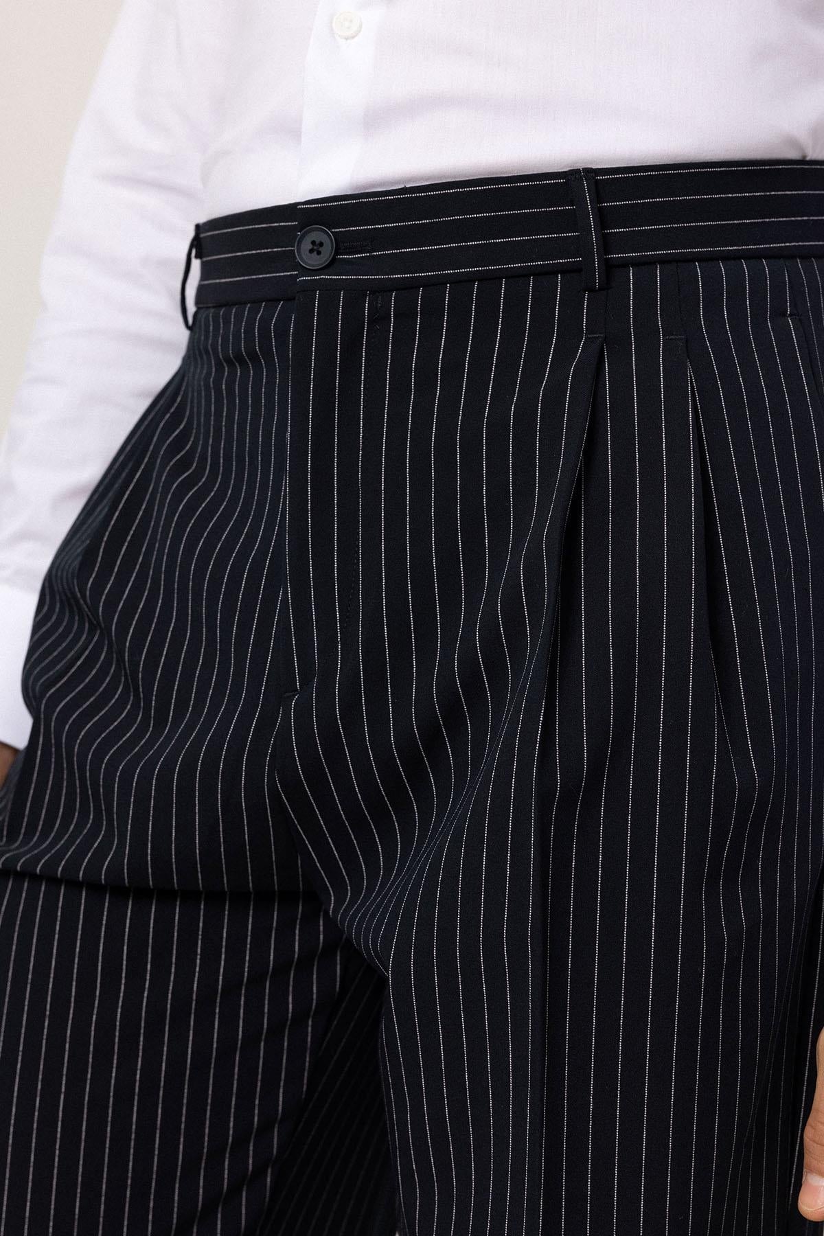 Lacivert Yüksek Bel Relax Fit Çizgili Erkek Pantolon