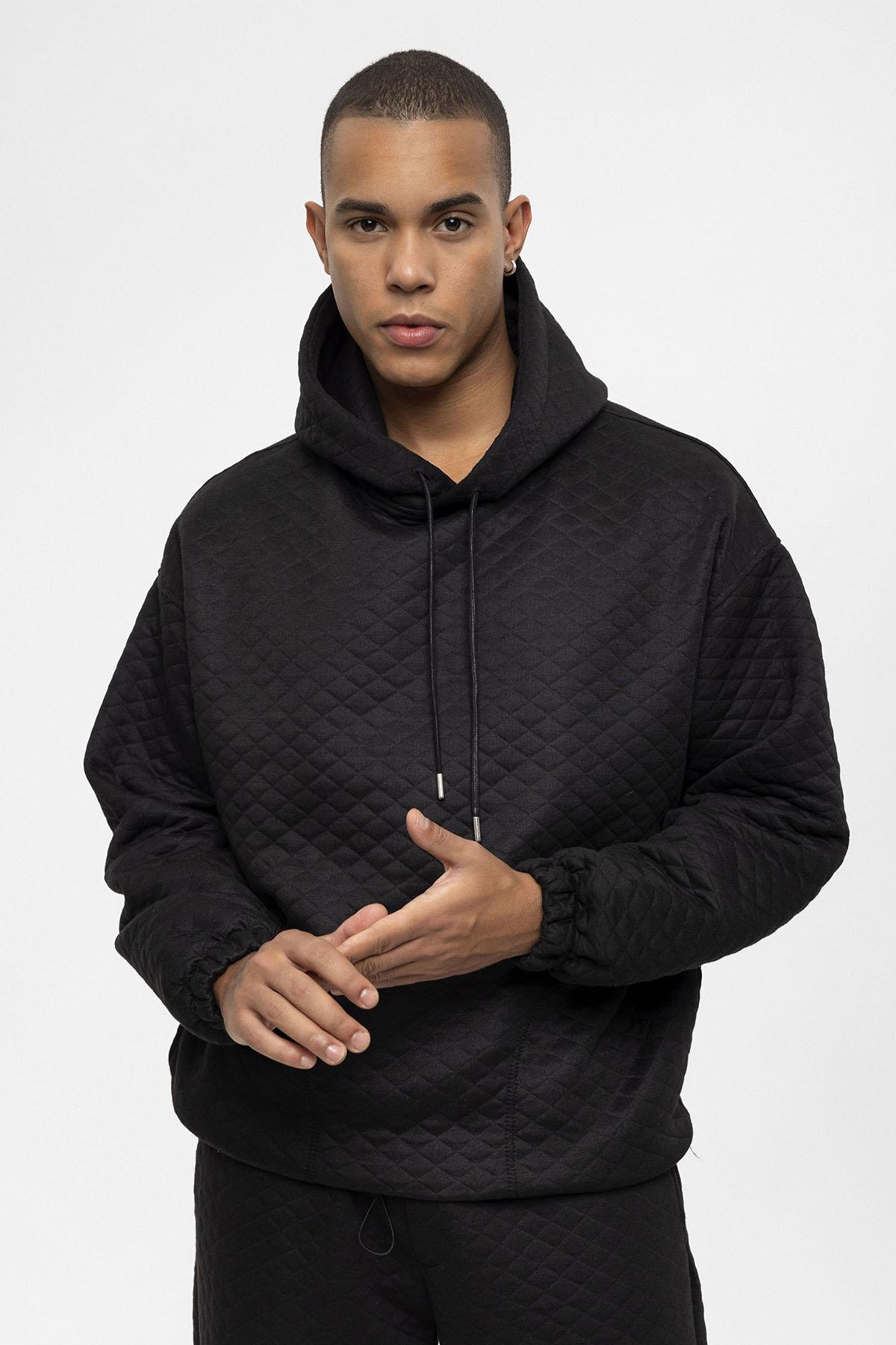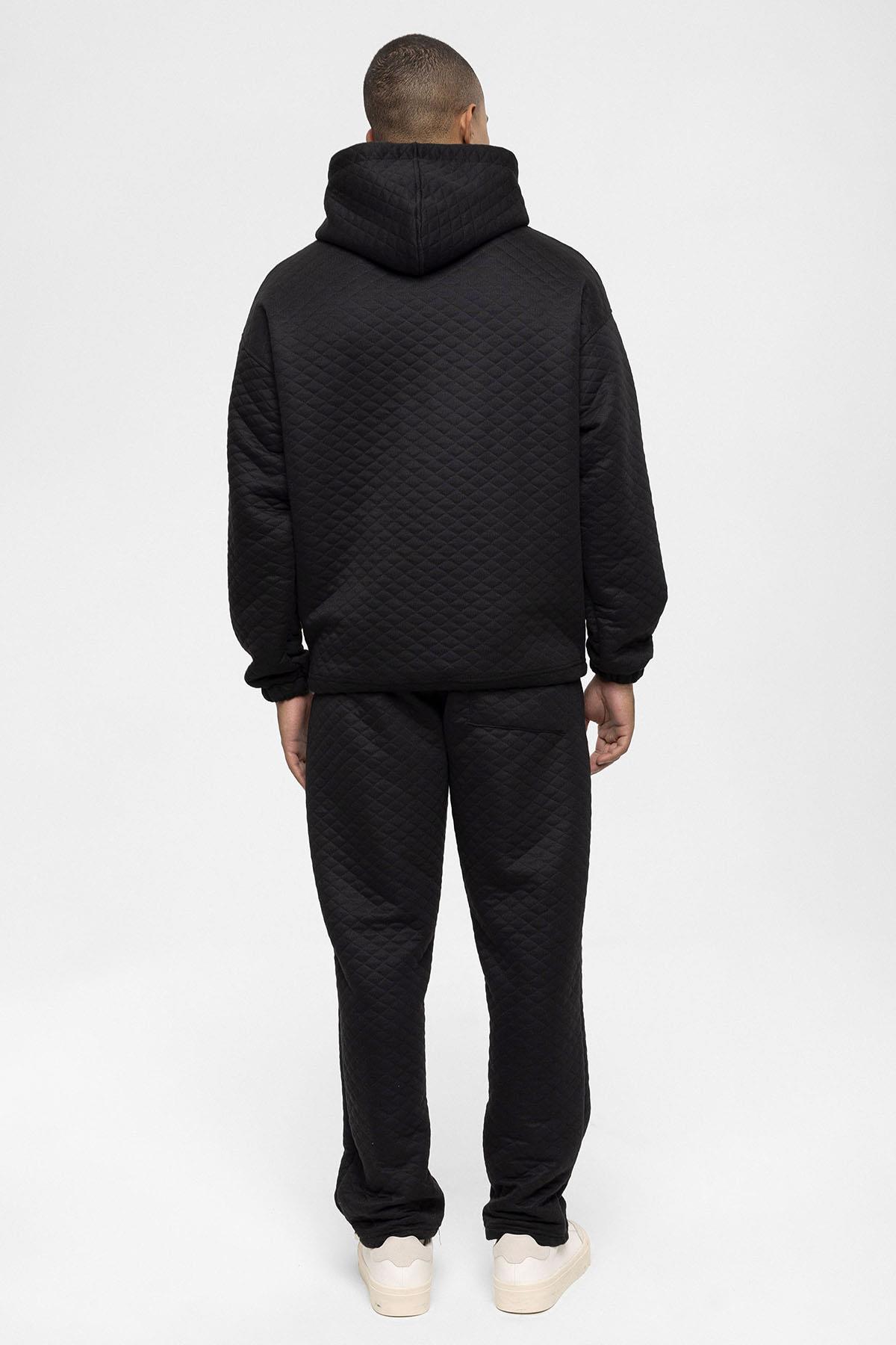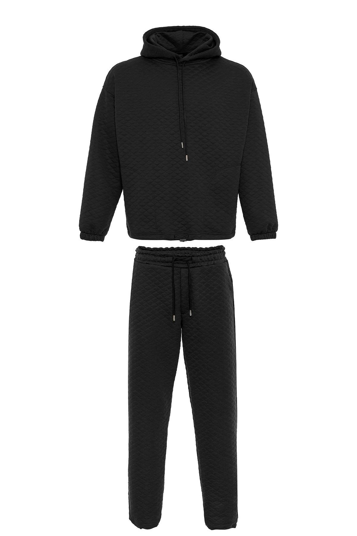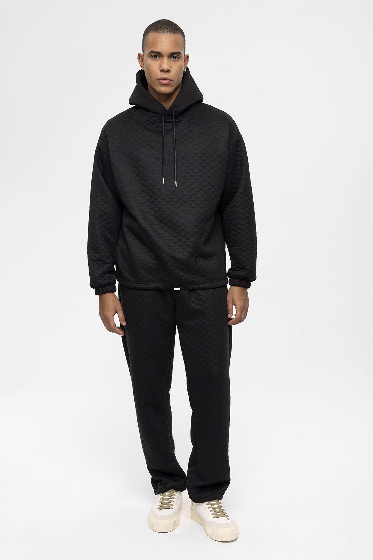 Siyah Baklava Desenli Oversize Erkek Eşofman Takımı