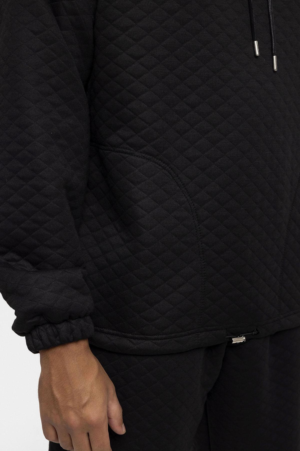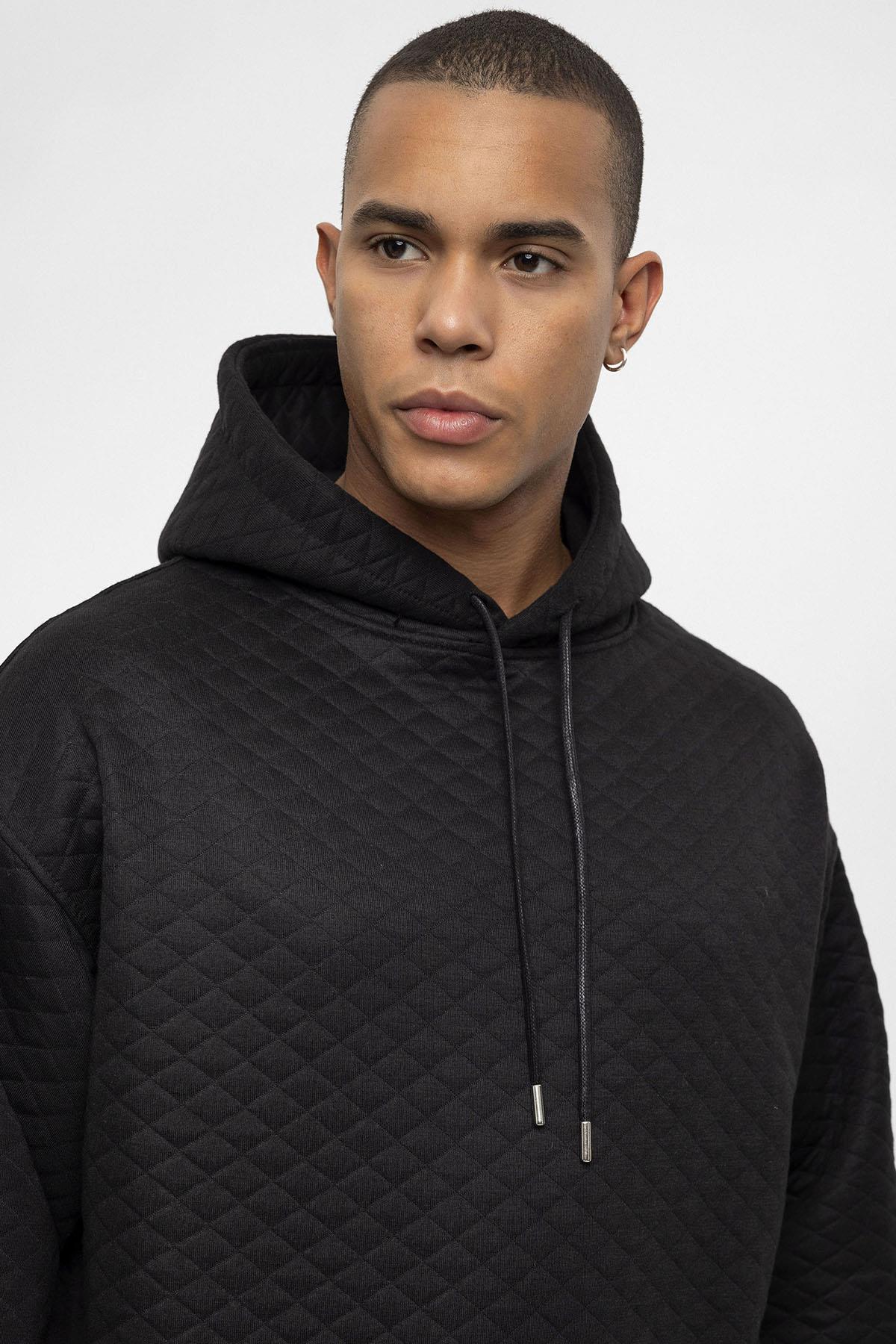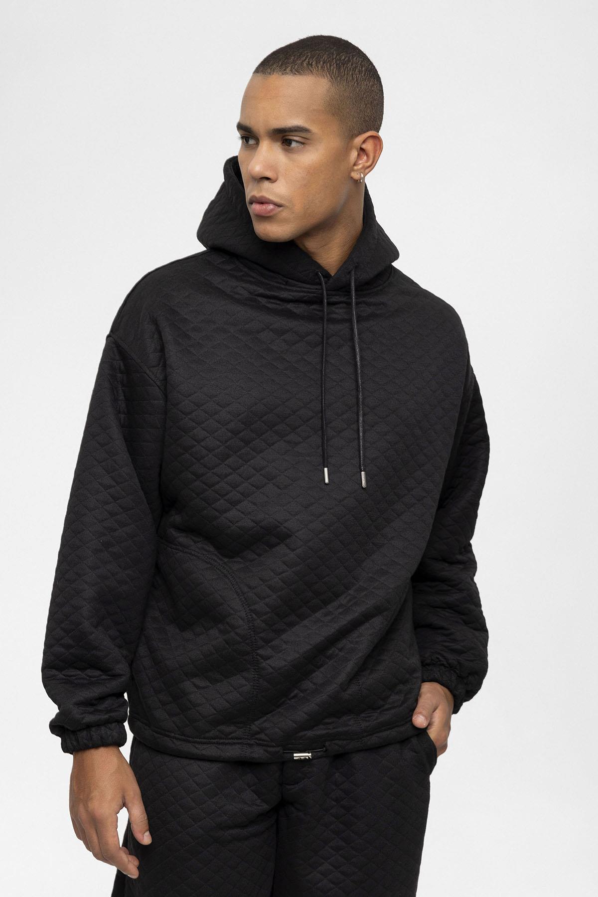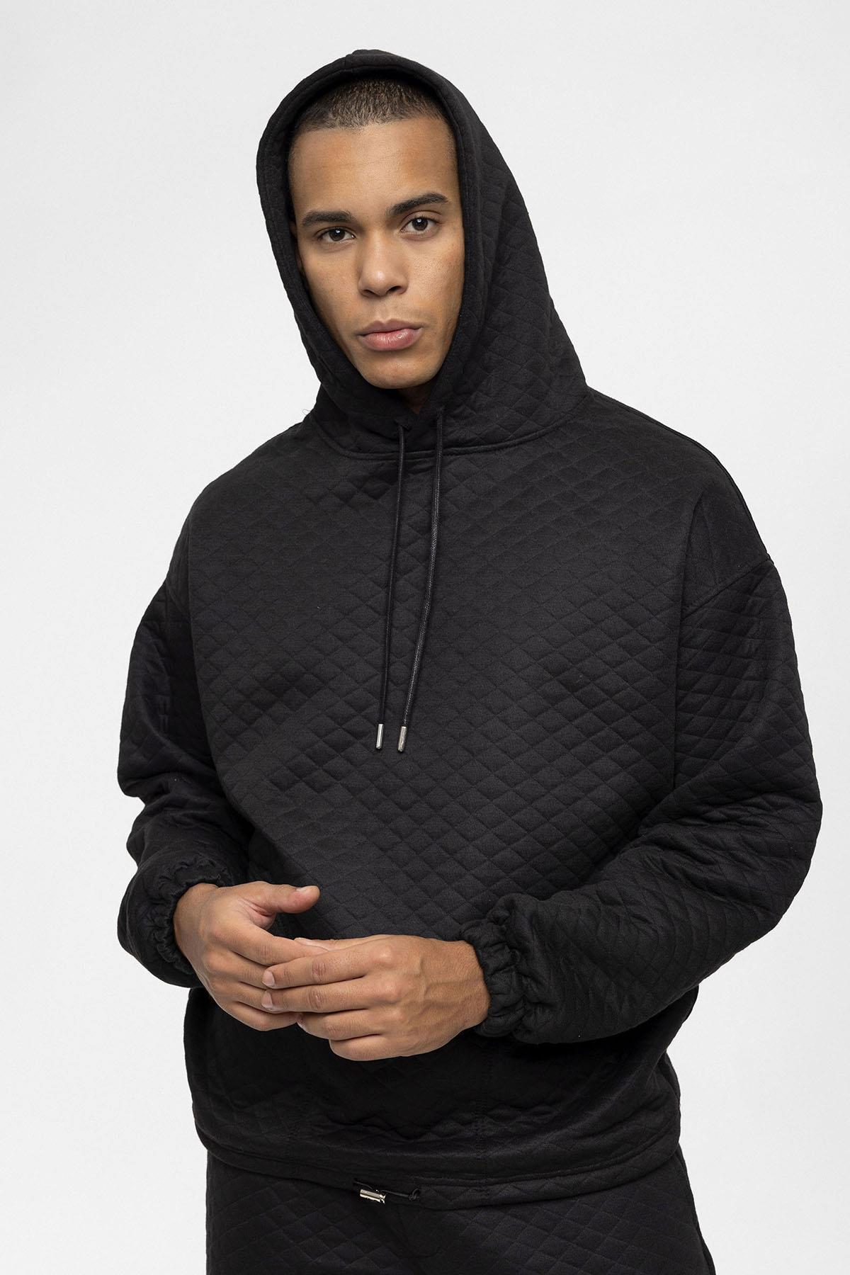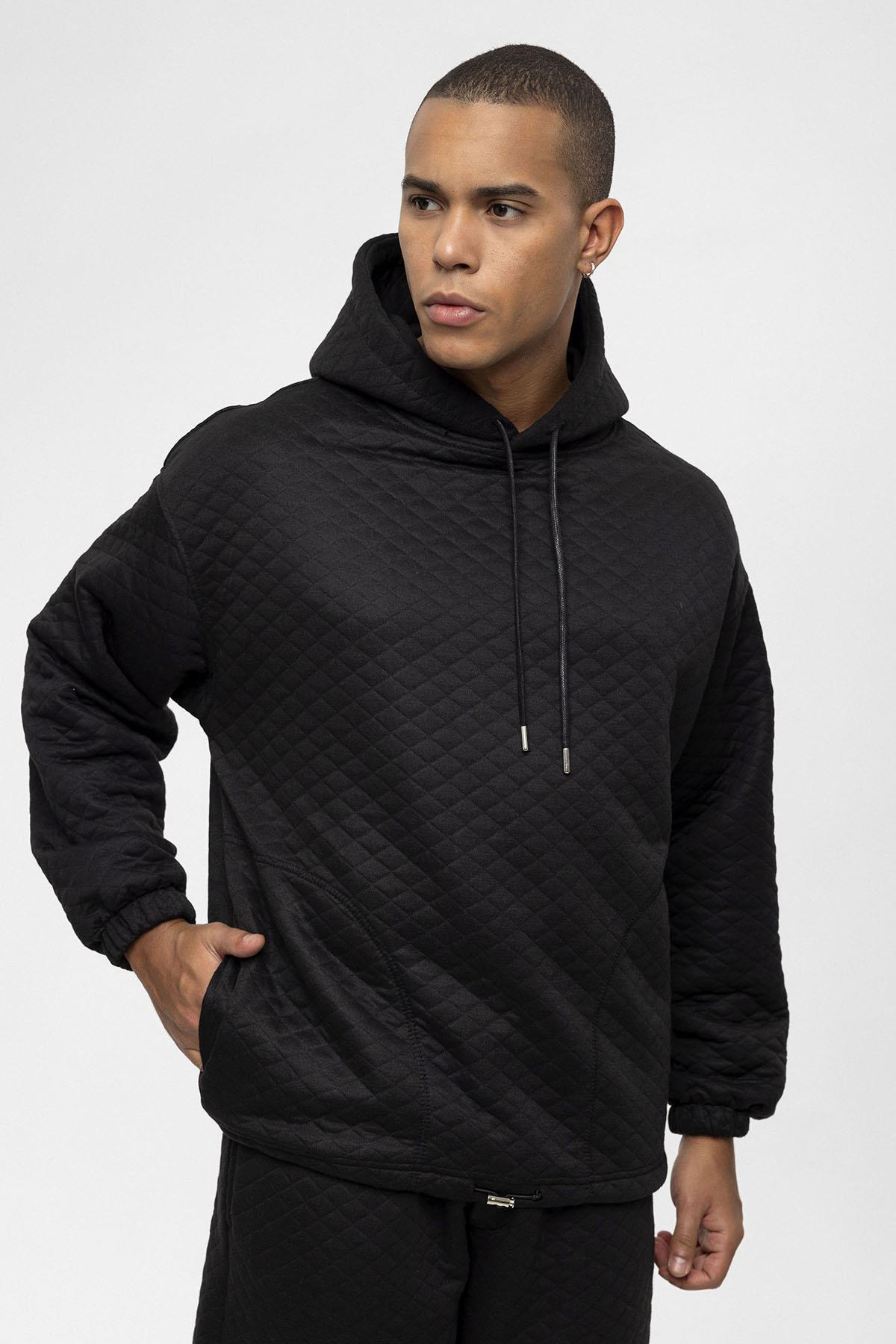 Siyah Baklava Desenli Oversize Erkek Eşofman Takımı