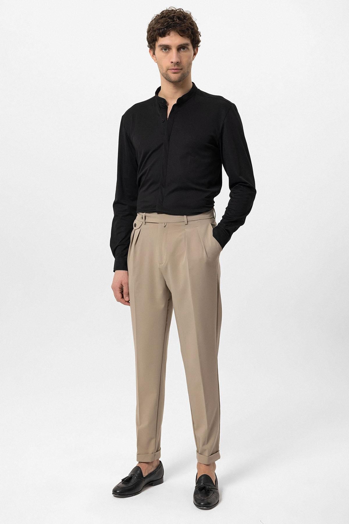 Siyah Erkek Hakim Yaka Gizli Düğme Uzun Kollu Slim Fit Gömlek