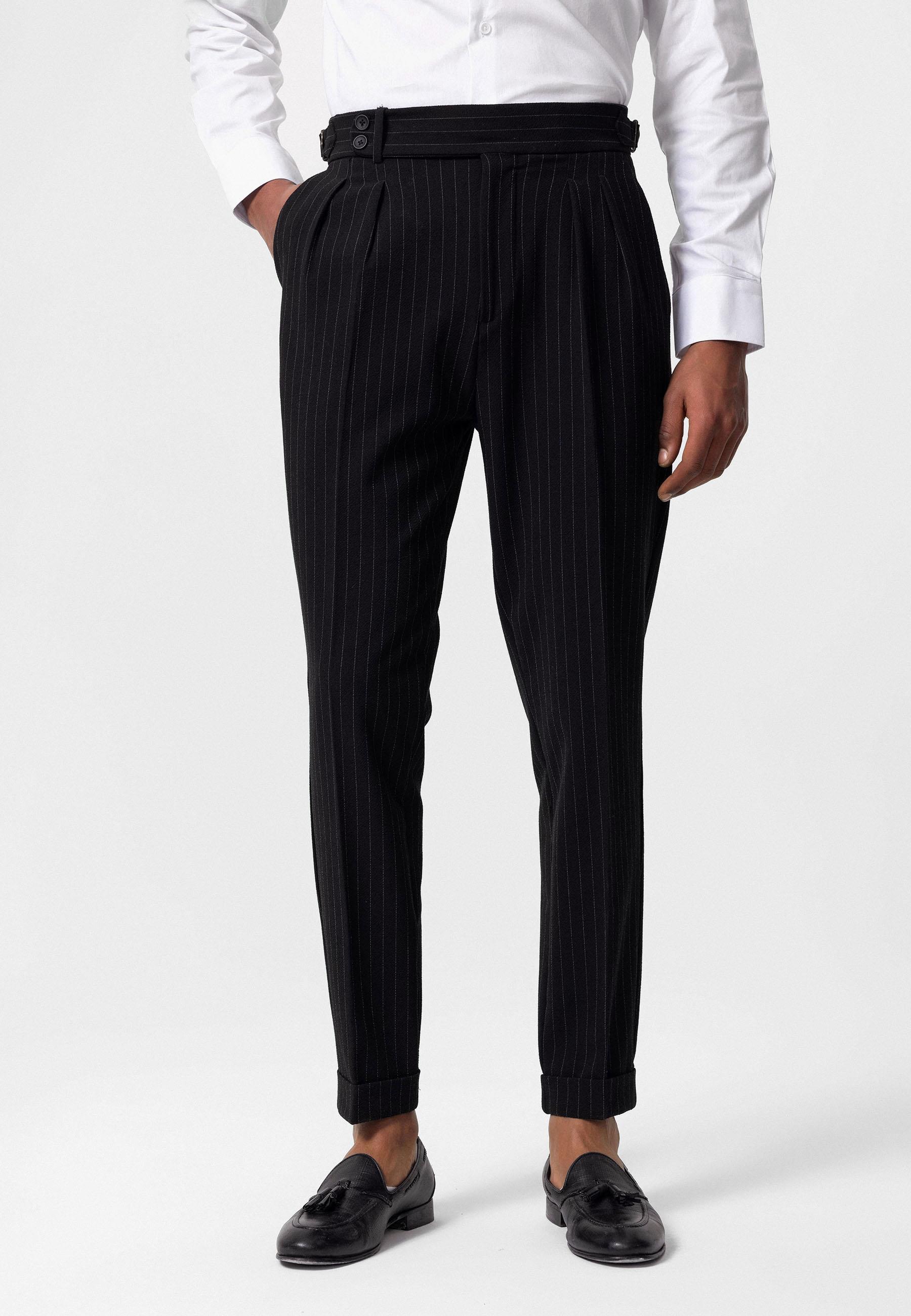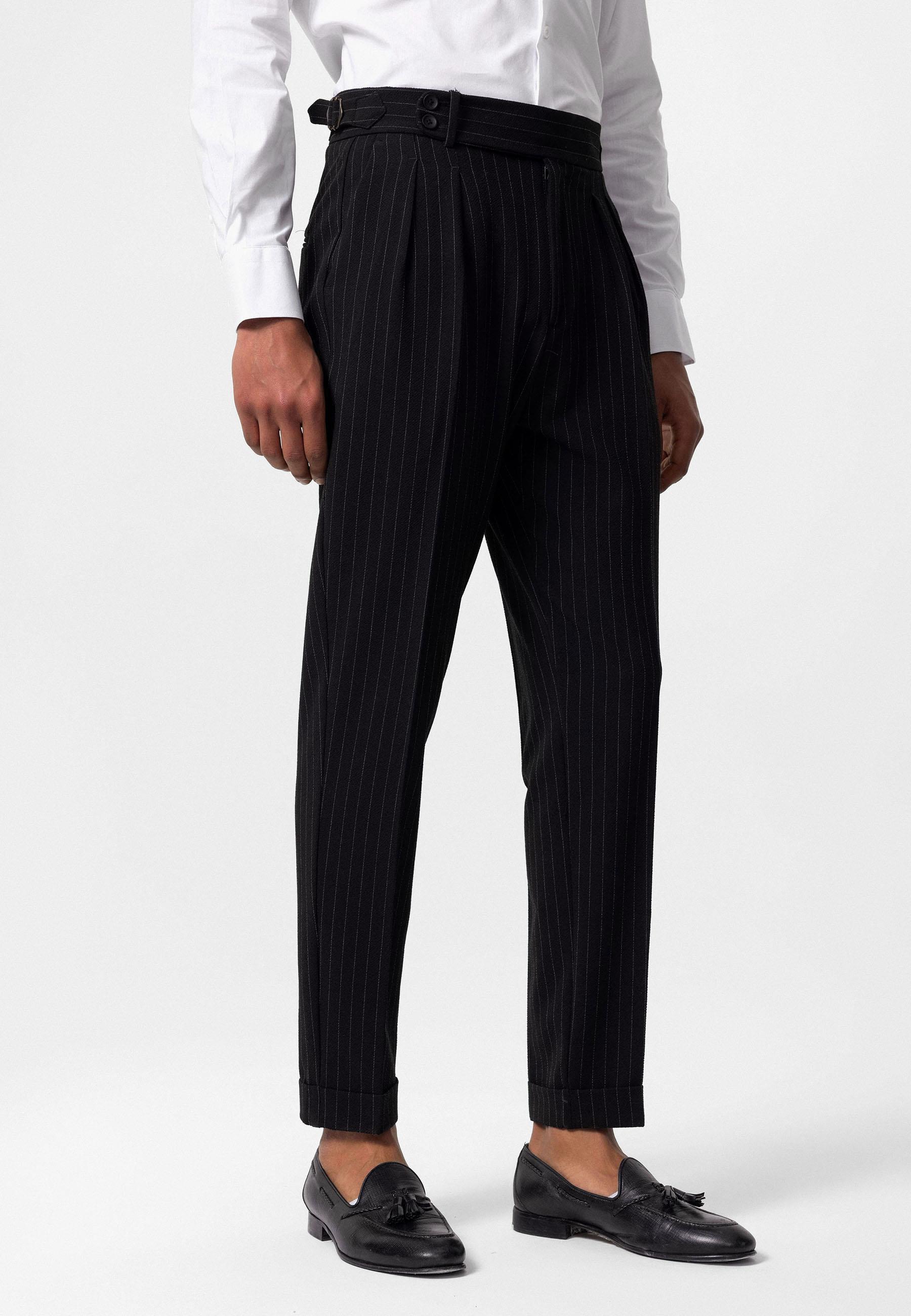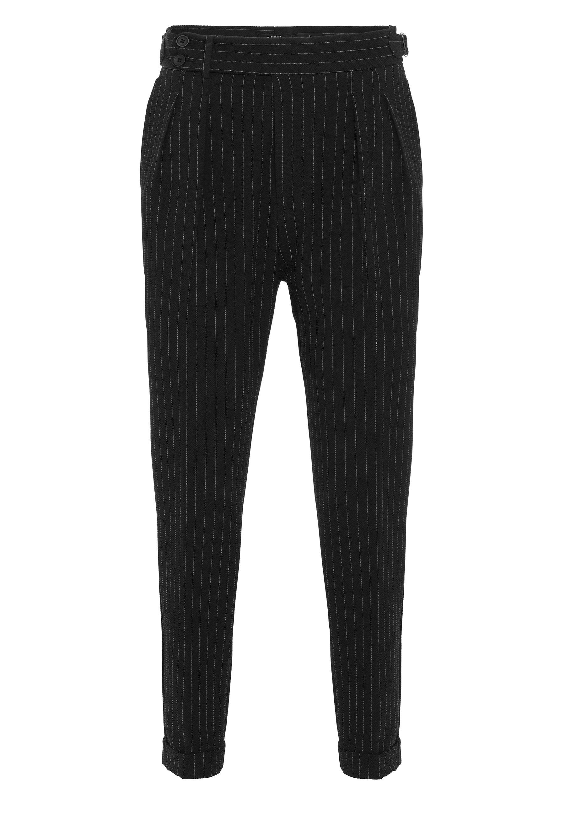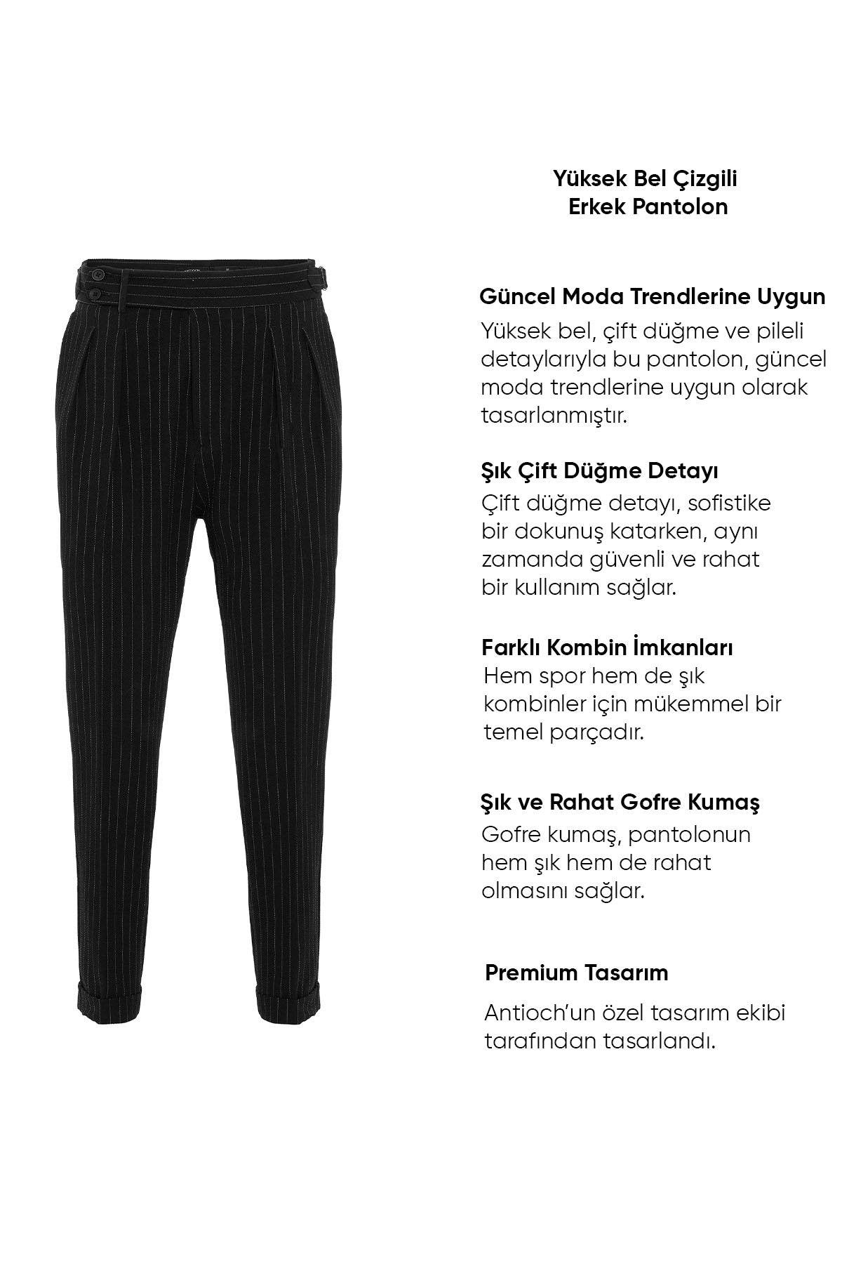 Siyah Yüksek Bel Çizgili Erkek Pantolon