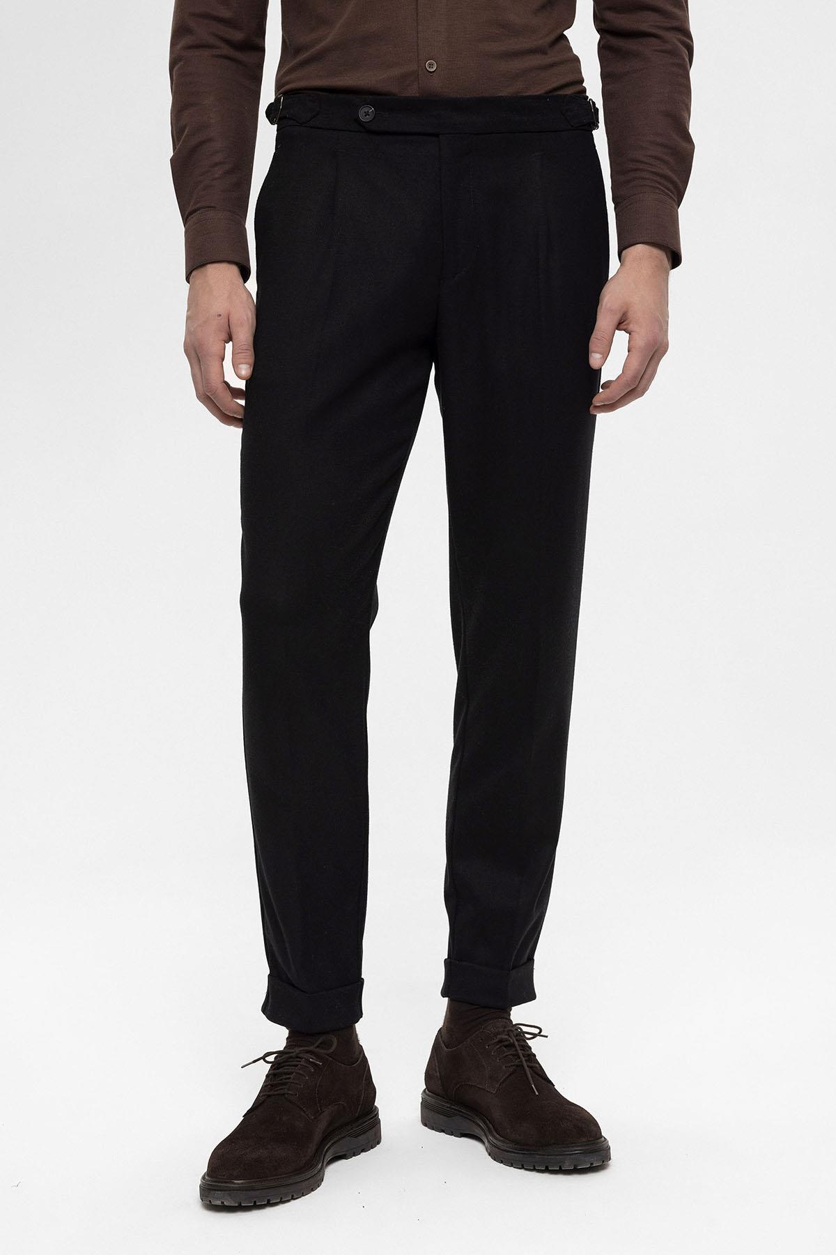 Siyah Yüksek Bel Pileli Erkek Pantolon