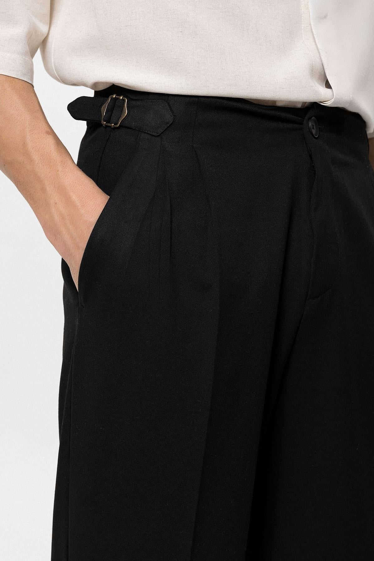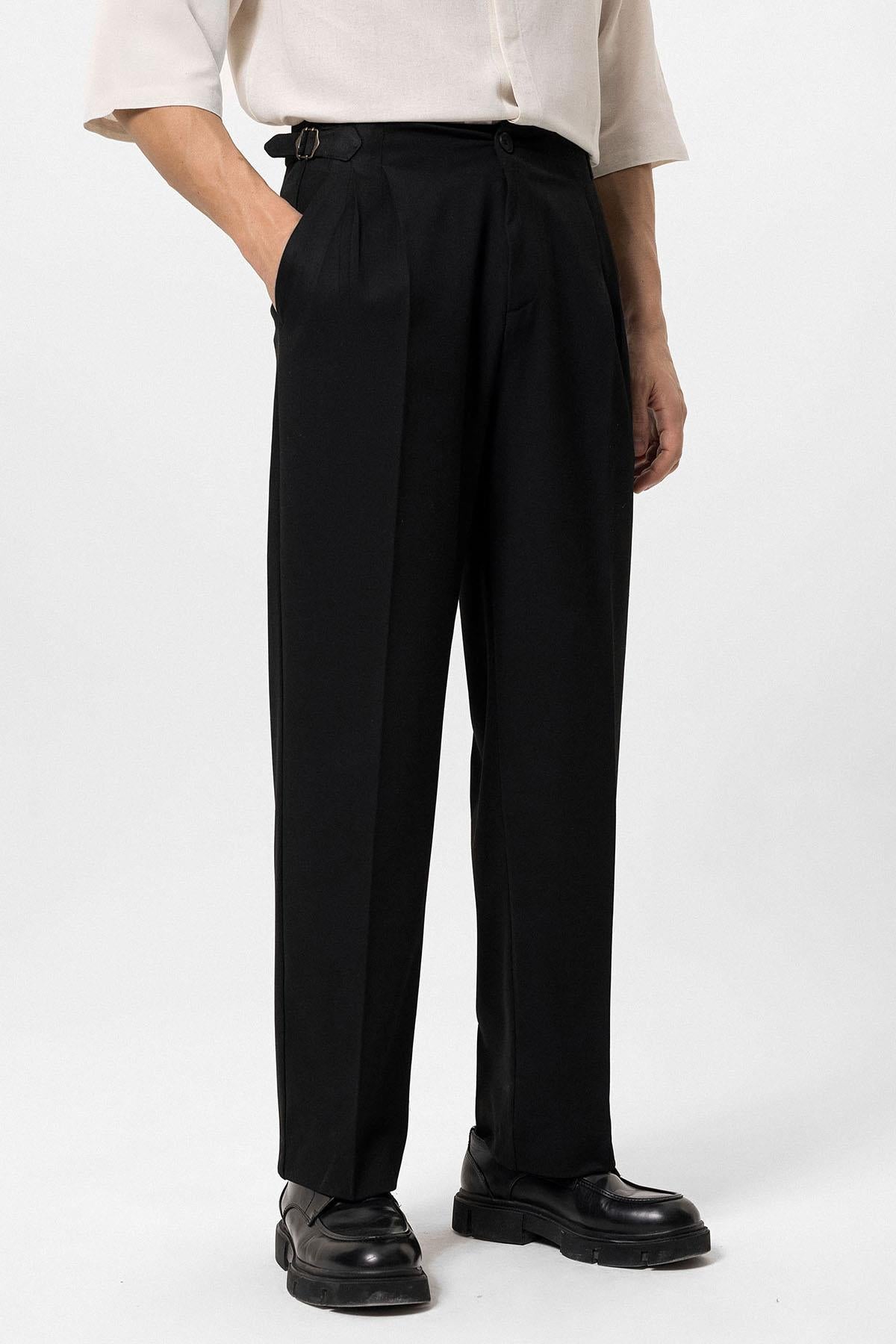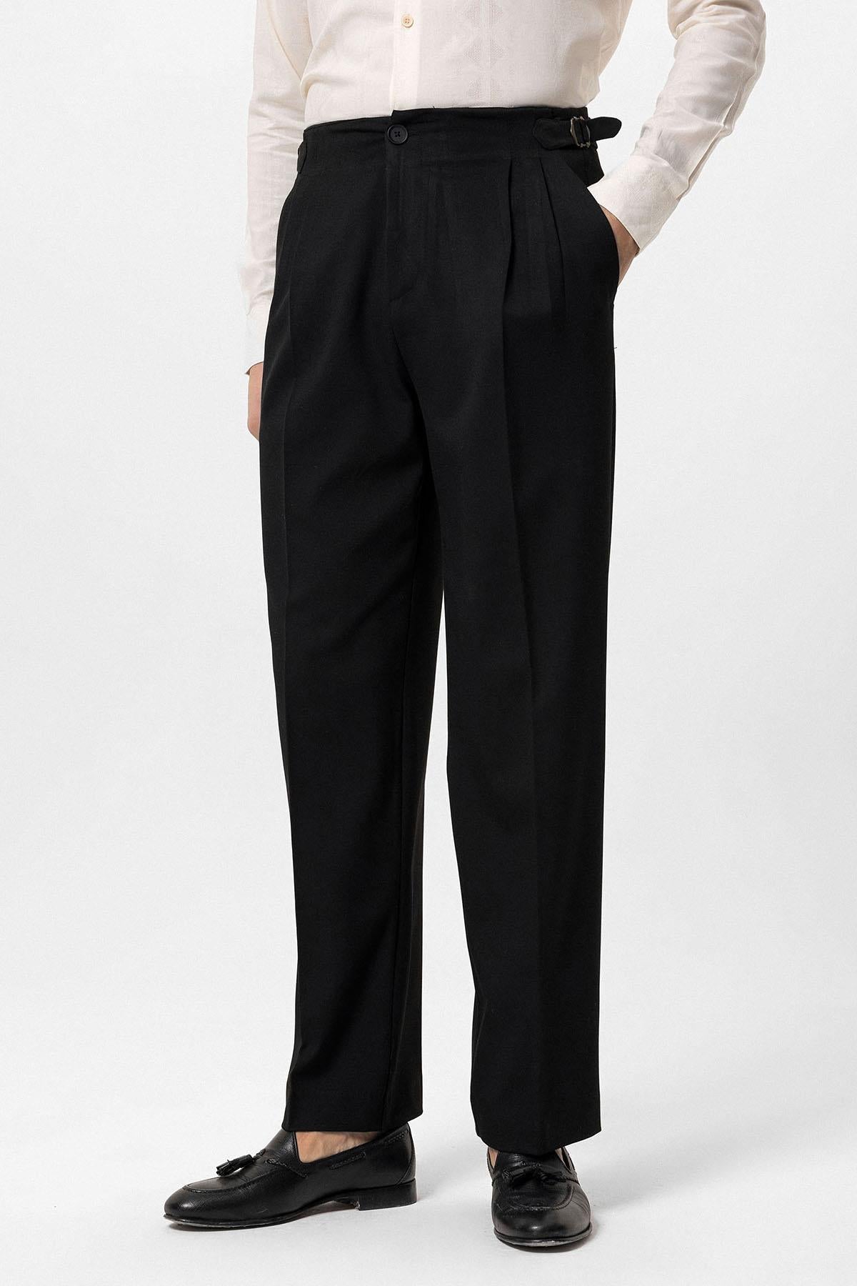 Siyah Yüksek Bel Toka Detaylı Rahat Kalıp Erkek Pantolon
