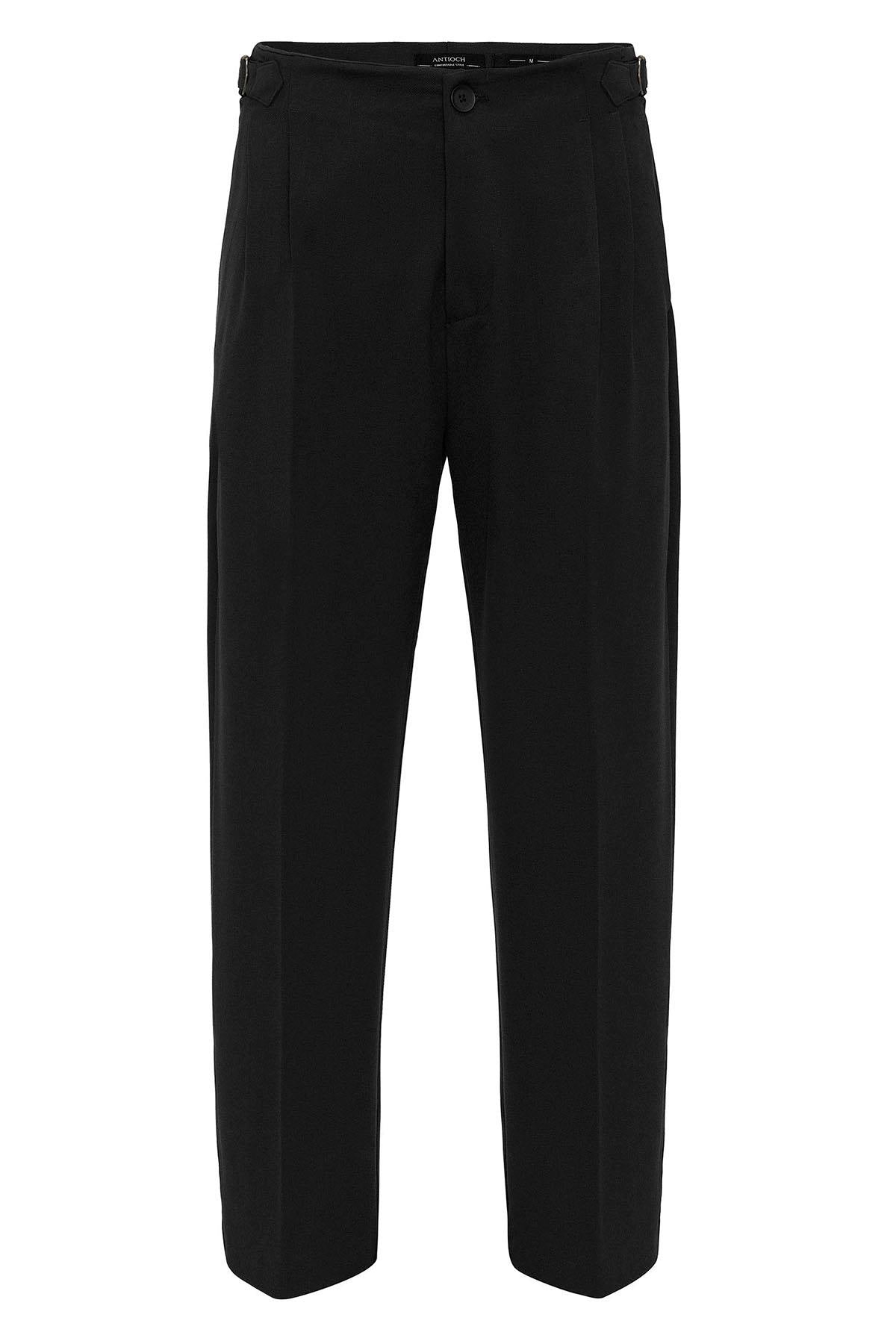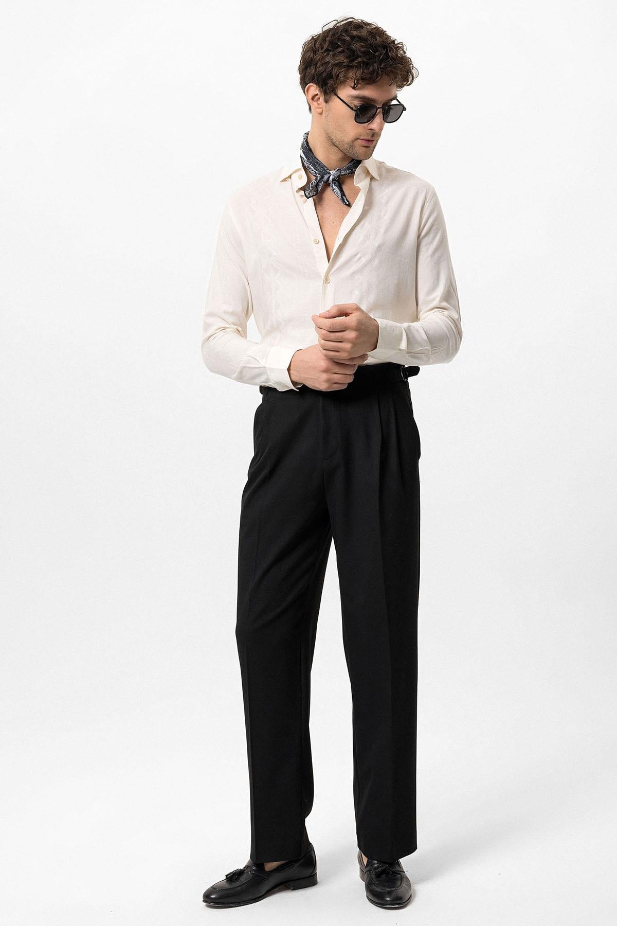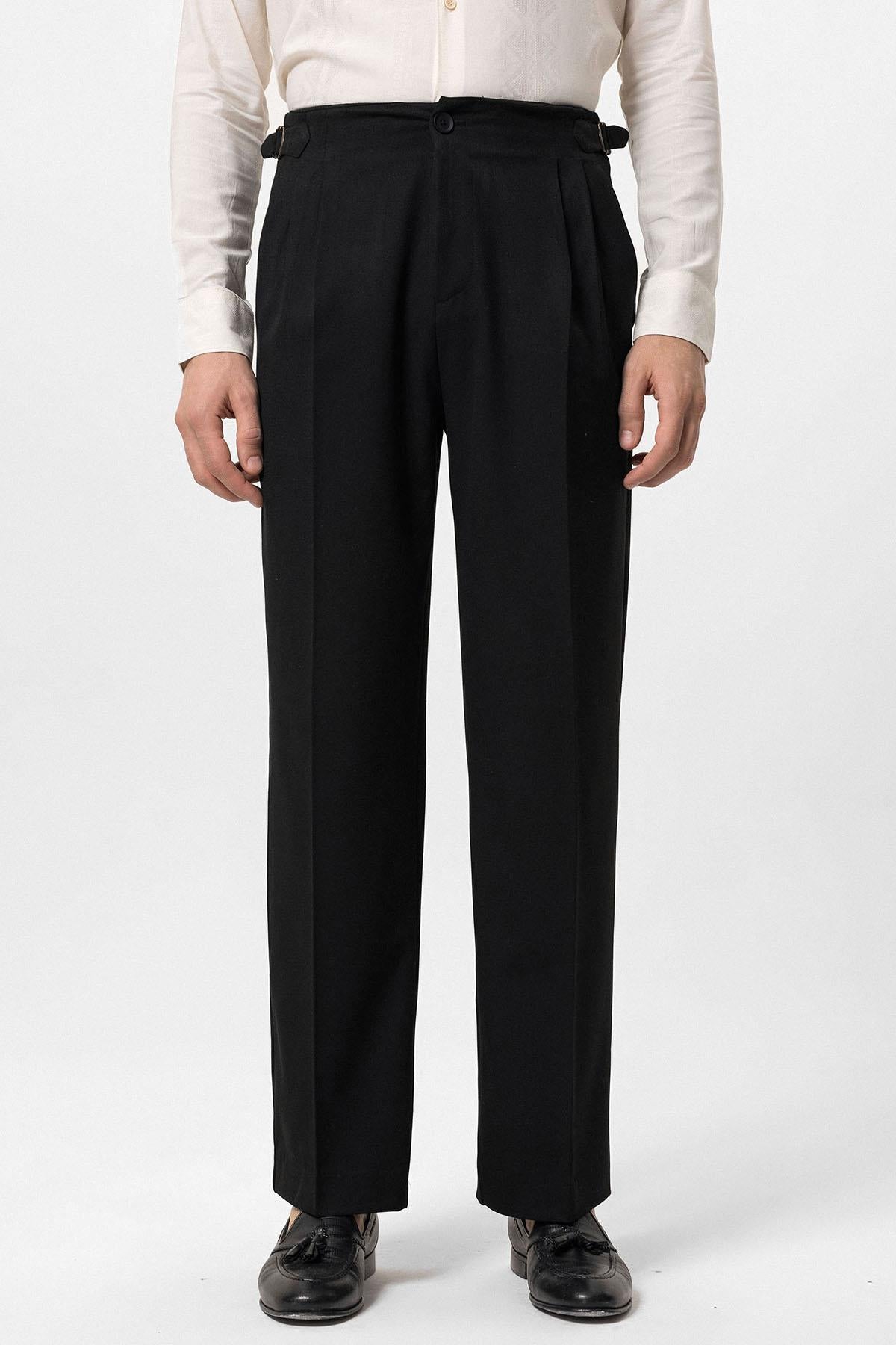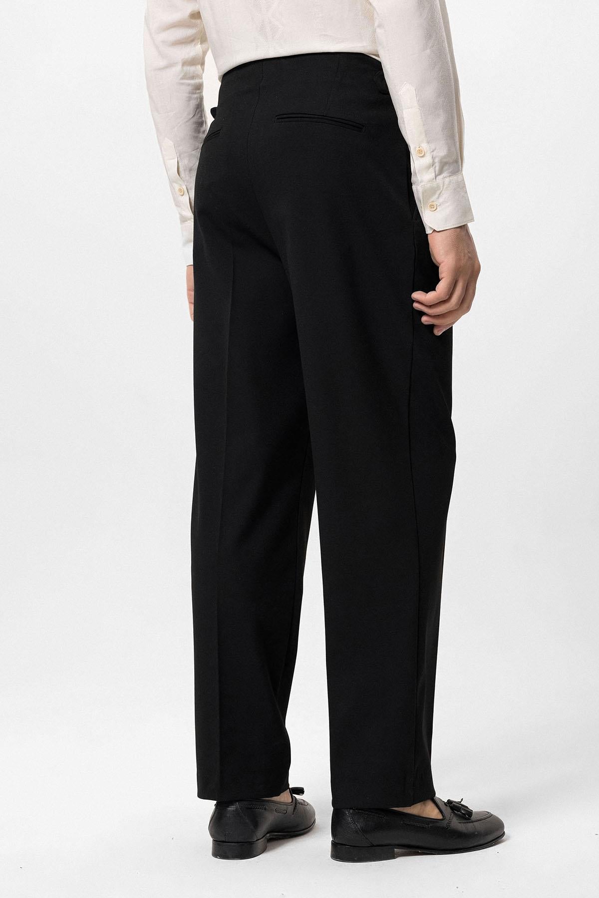 Siyah Yüksek Bel Toka Detaylı Rahat Kalıp Erkek Pantolon