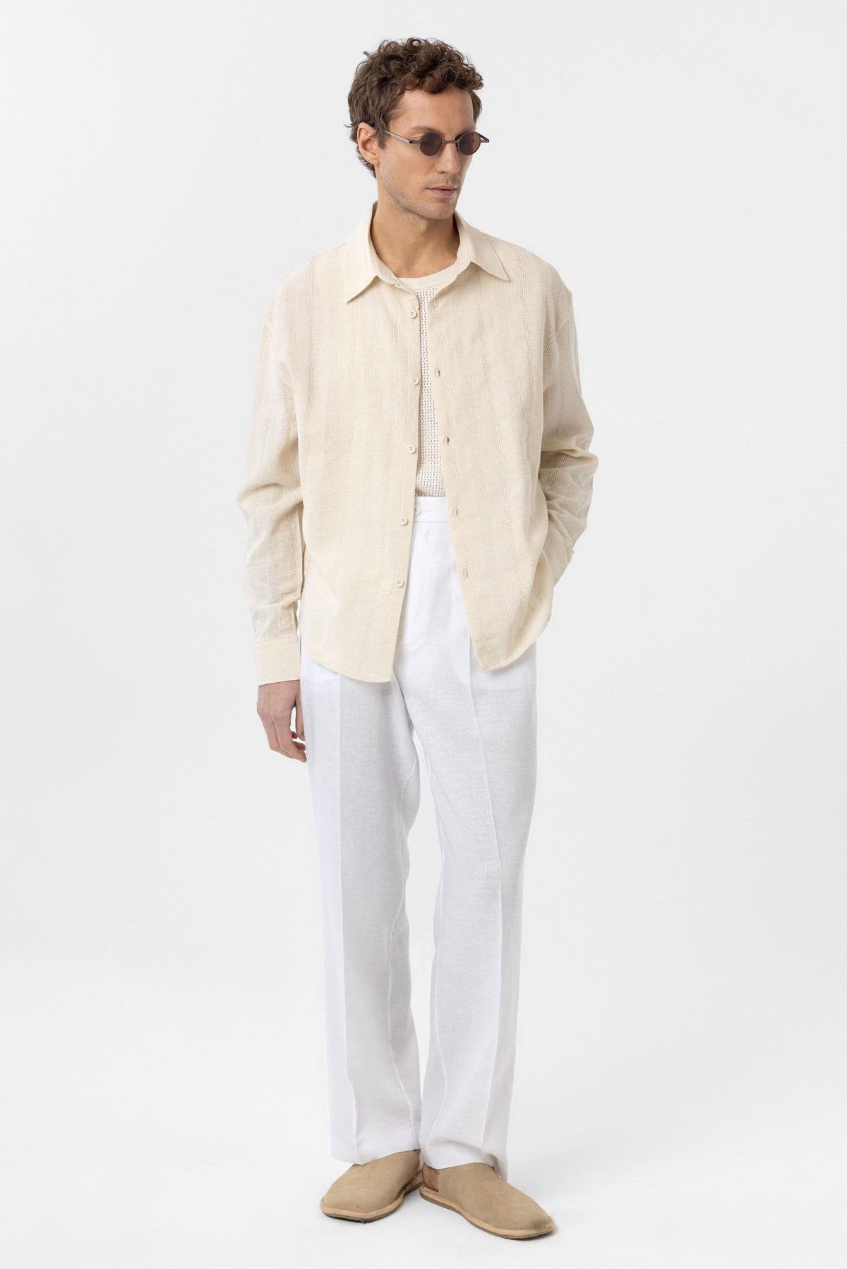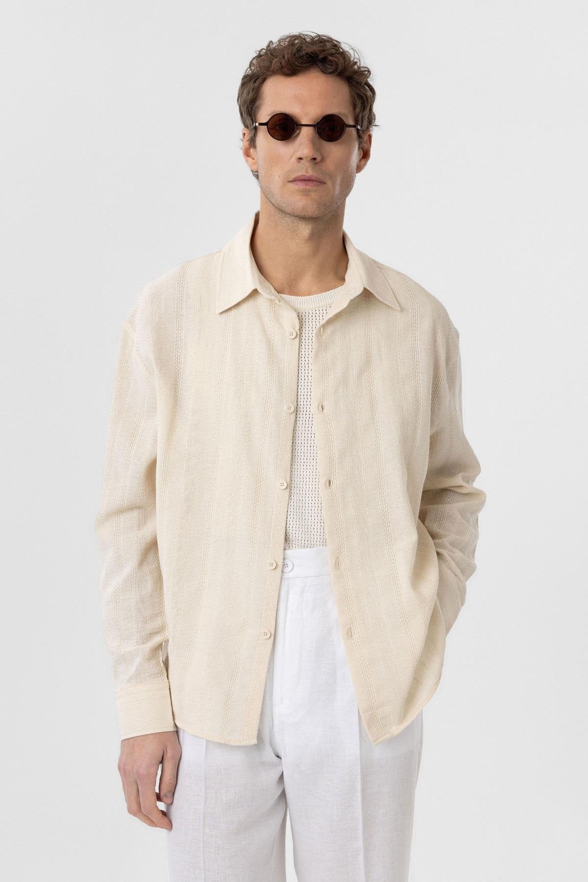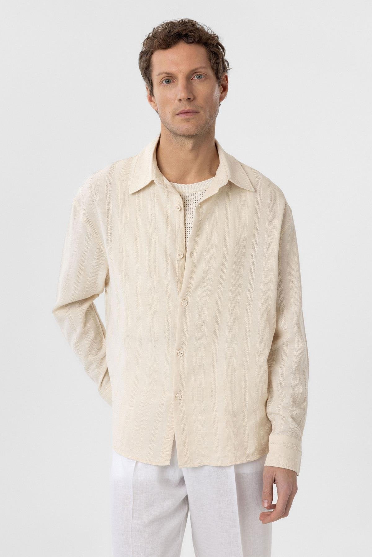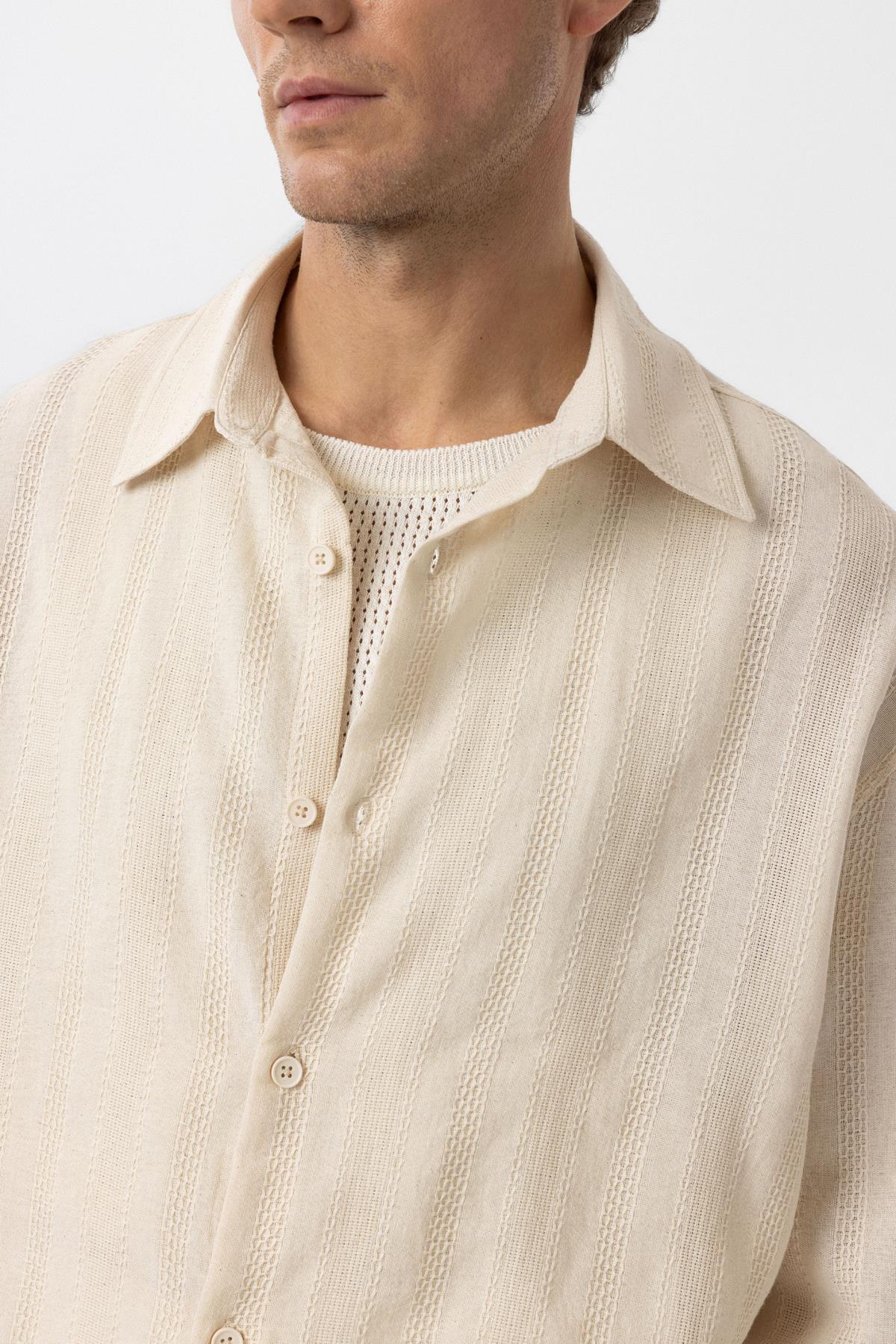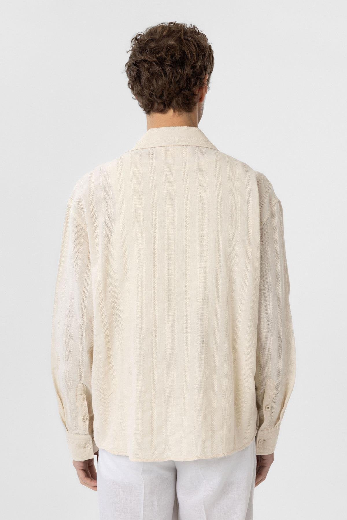Taş Dokulu Jakarlı Pamuklu Erkek Gömlek