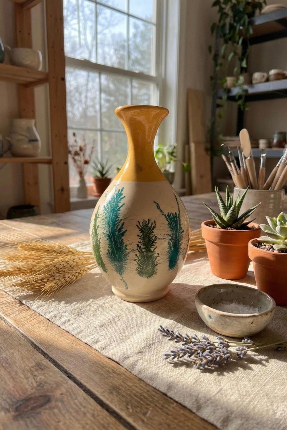 Botanik Desenli El Boyaması Seramik Vazo – Zarif, Modern Ve Lüks Ev Dekoru