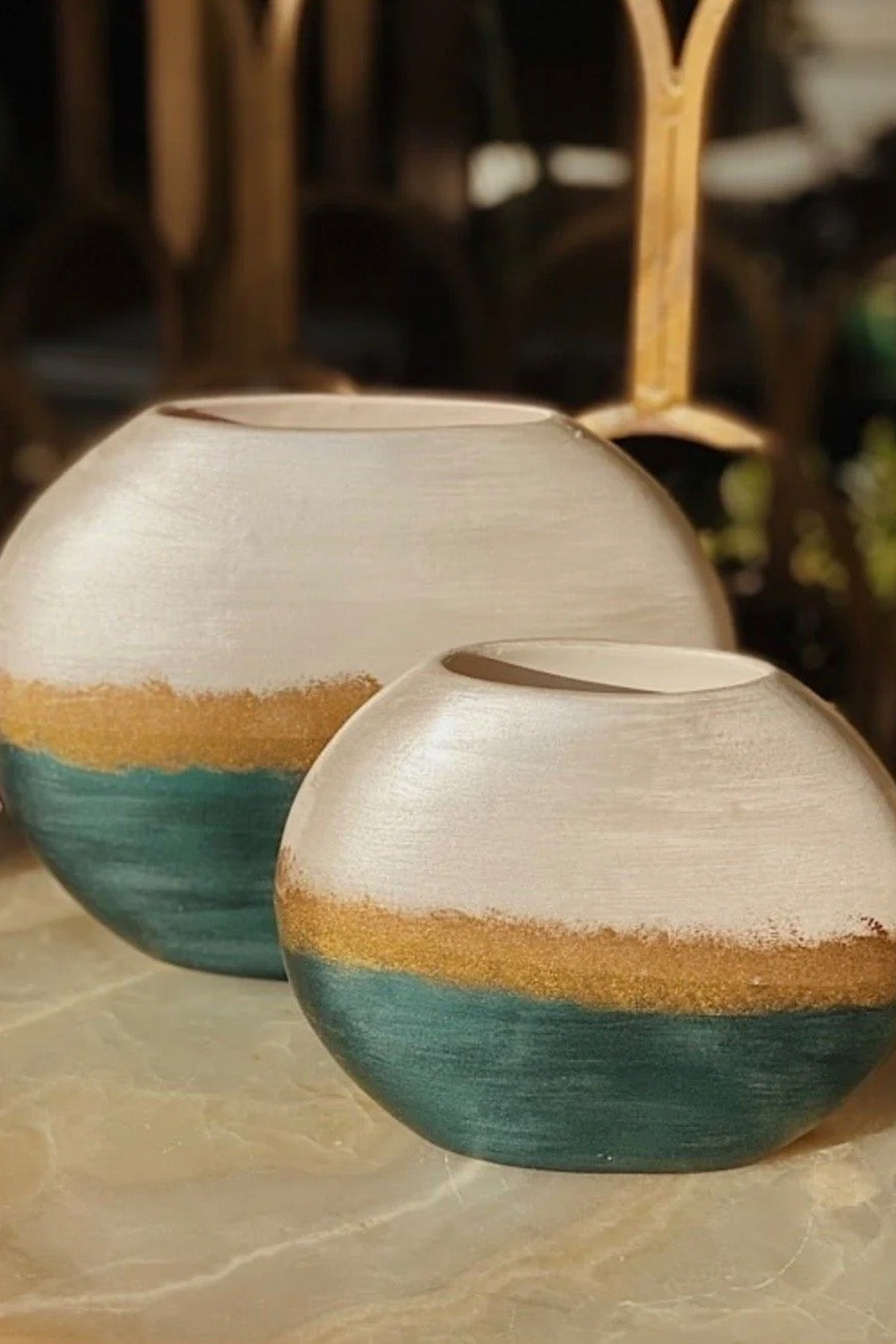 Dea'rt İstanbul'un tasarımcısı Derya Kurdoğlu'nun özel tasarımı Margarita ikili seramik vazo, stil sahibi, yaşam alanında seçkin parçaları sevenler için ideal bir seçenek.