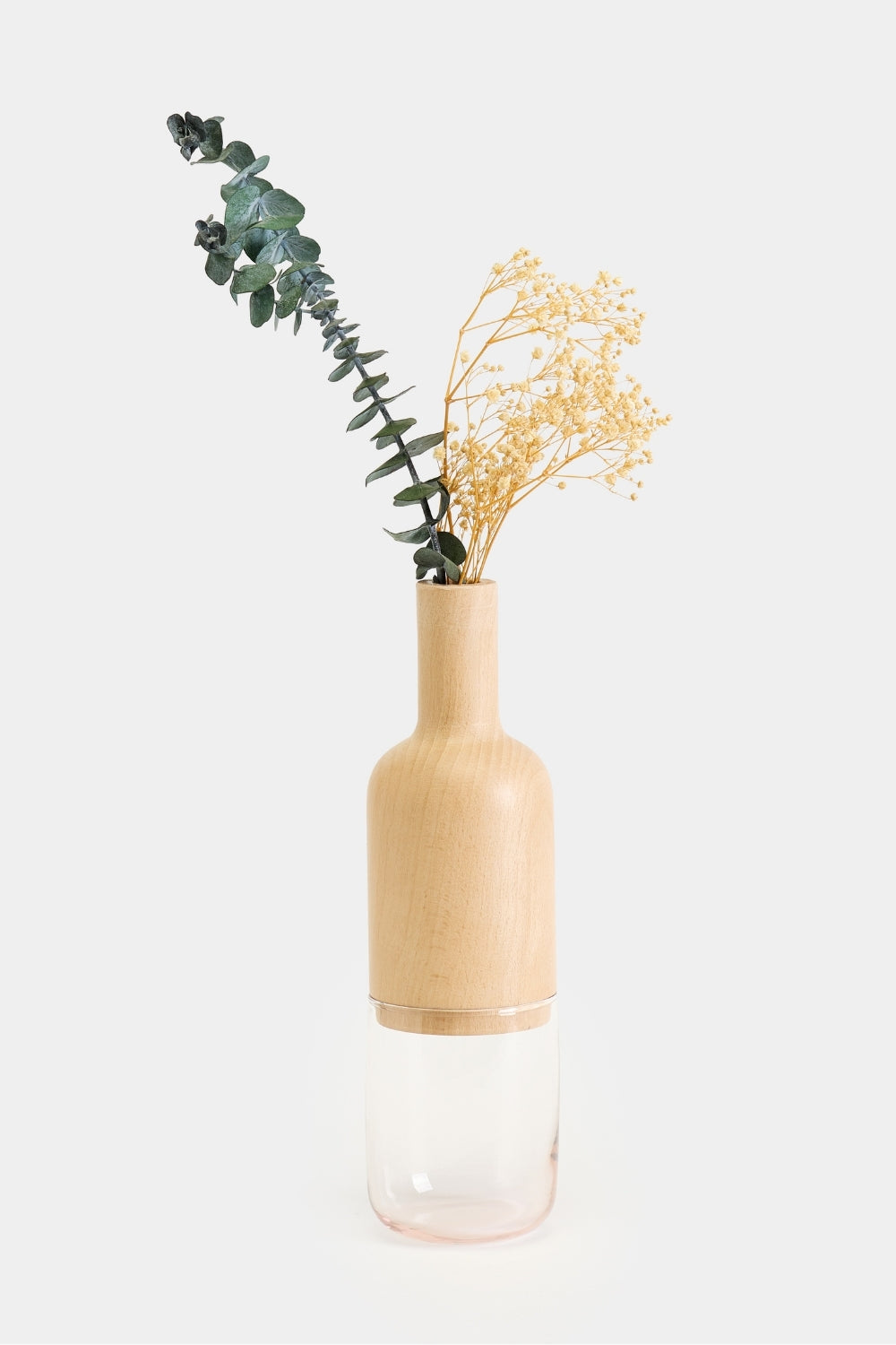 Tarz ve İlham:Masif ahşabın sıcaklığı ve köklü duruşu, camın saydam ve hafif yapısıyla buluşur. Ahşap ve cam kısmının yumuşak ve silindirik hatları içine koyacağınız bitkilerin veya çiçeklerin gövdesini ve suyunu gizemli bir atmosferde tutarak meditatif bir ortam yaratır.