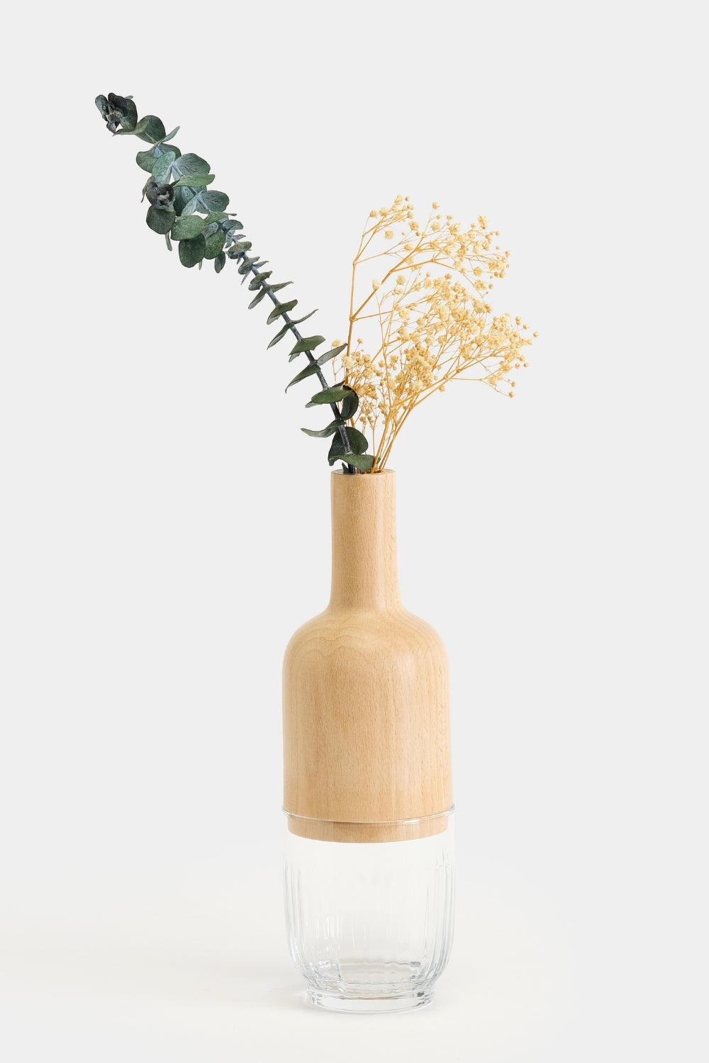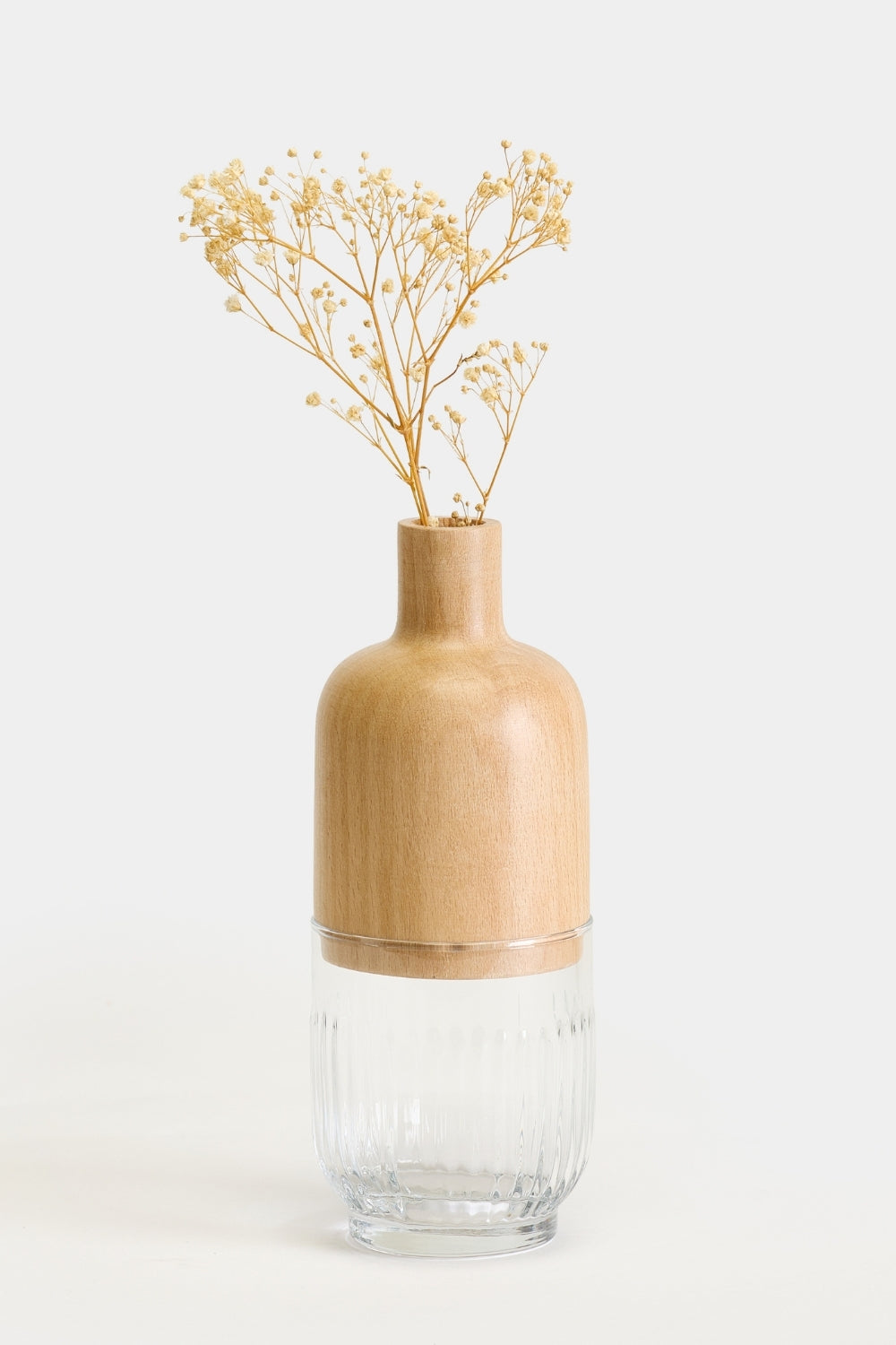 Tarz ve İlham:Masif ahşabın sıcaklığı ve köklü duruşu, camın saydam ve hafif yapısıyla buluşur. Ahşap ve cam kısmının silindirik hatları içine koyacağınız bitkilerin veya çiçeklerin gövdesini ve suyunu gizemli bir atmosferde tutarak meditatif bir ortam yaratır.