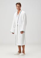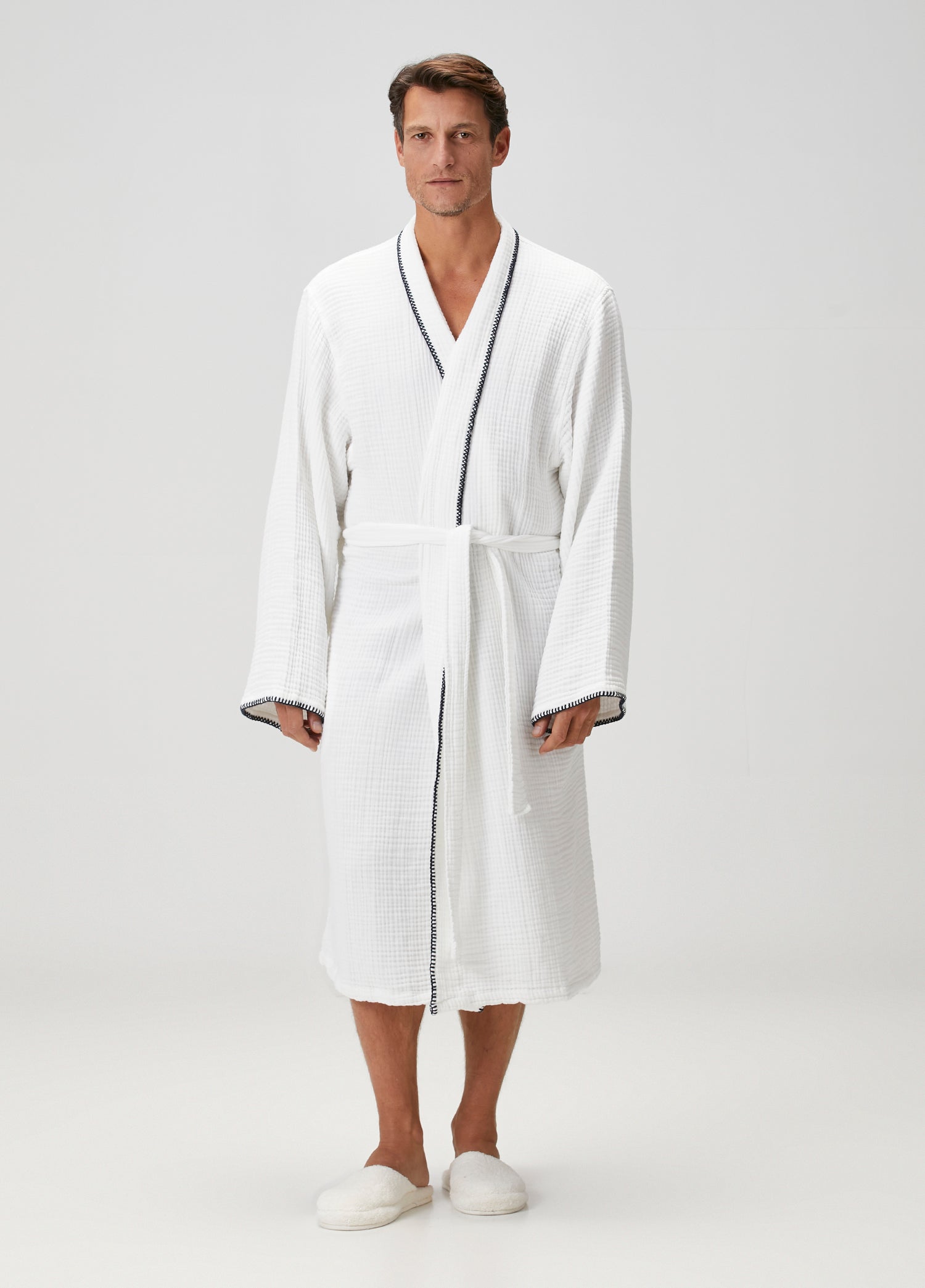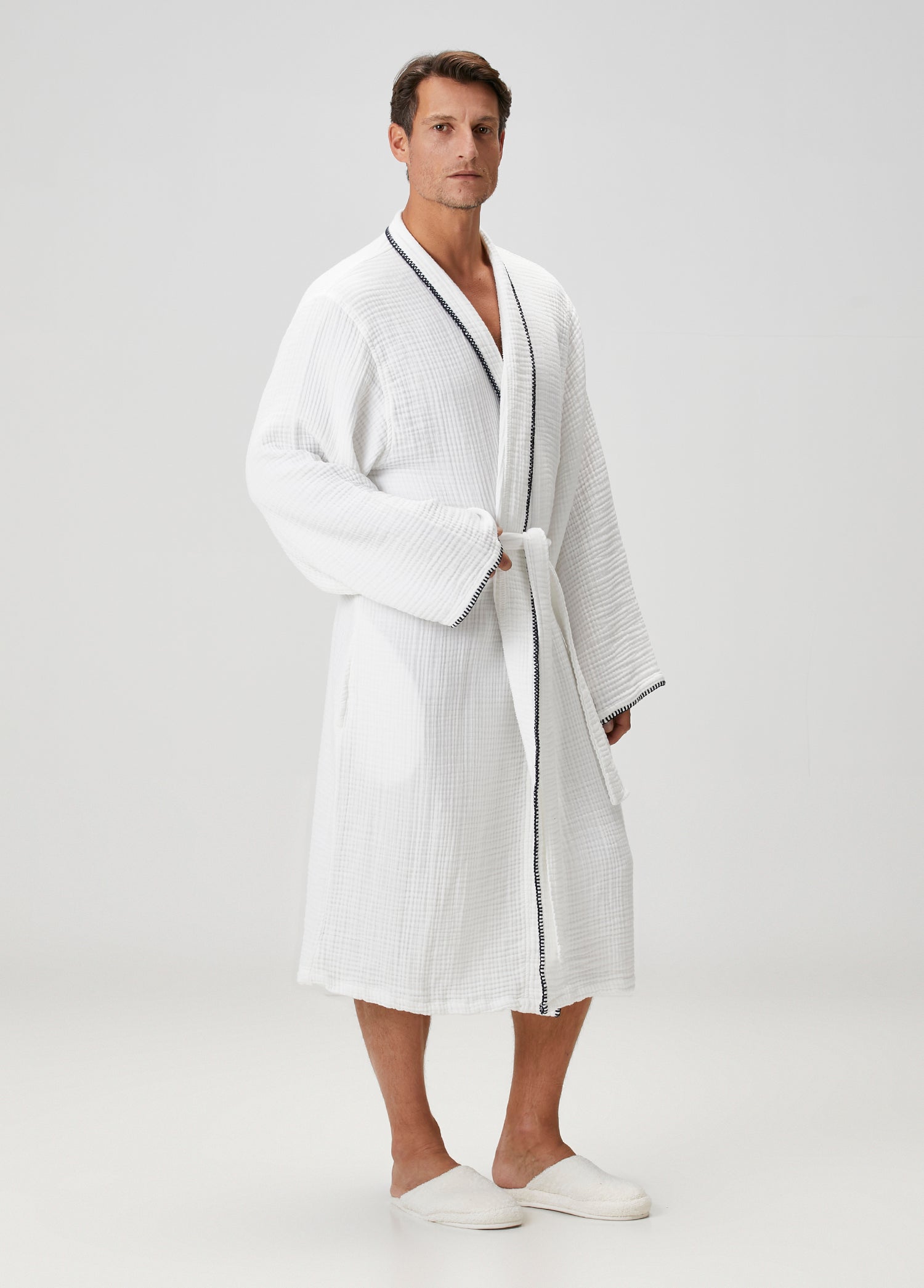 Loom 4 Katlı Müslin çoban Dikşili Erkek Bornoz Beyaz