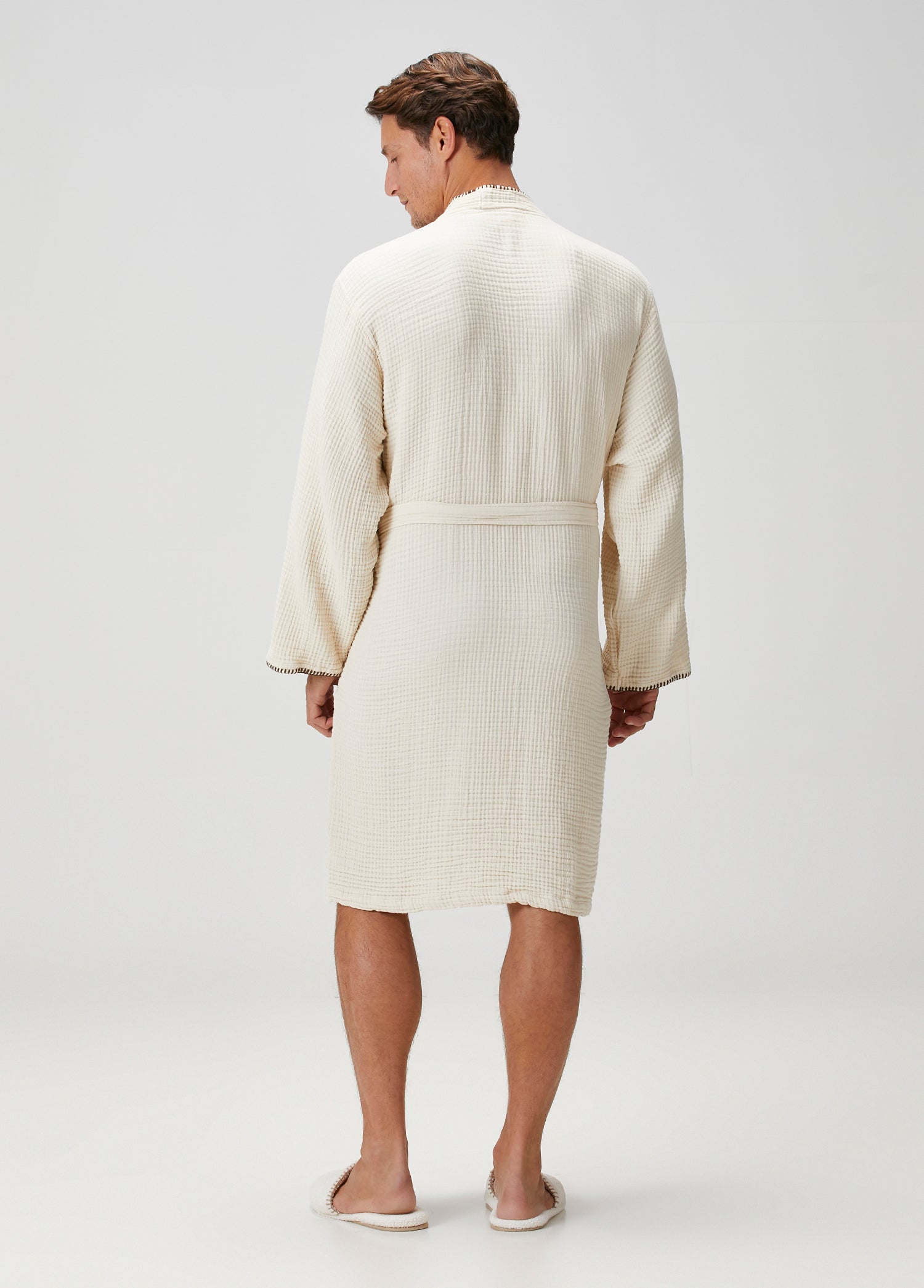 Loom bornoz, hafif dokusu ve çoban dikişiyle doğal bir şıklık sunar. Pamuksu yapısı rahatlık sağlarken, soft tonlarıyla bulunduğu ortama sade ve özenli bir hava katar