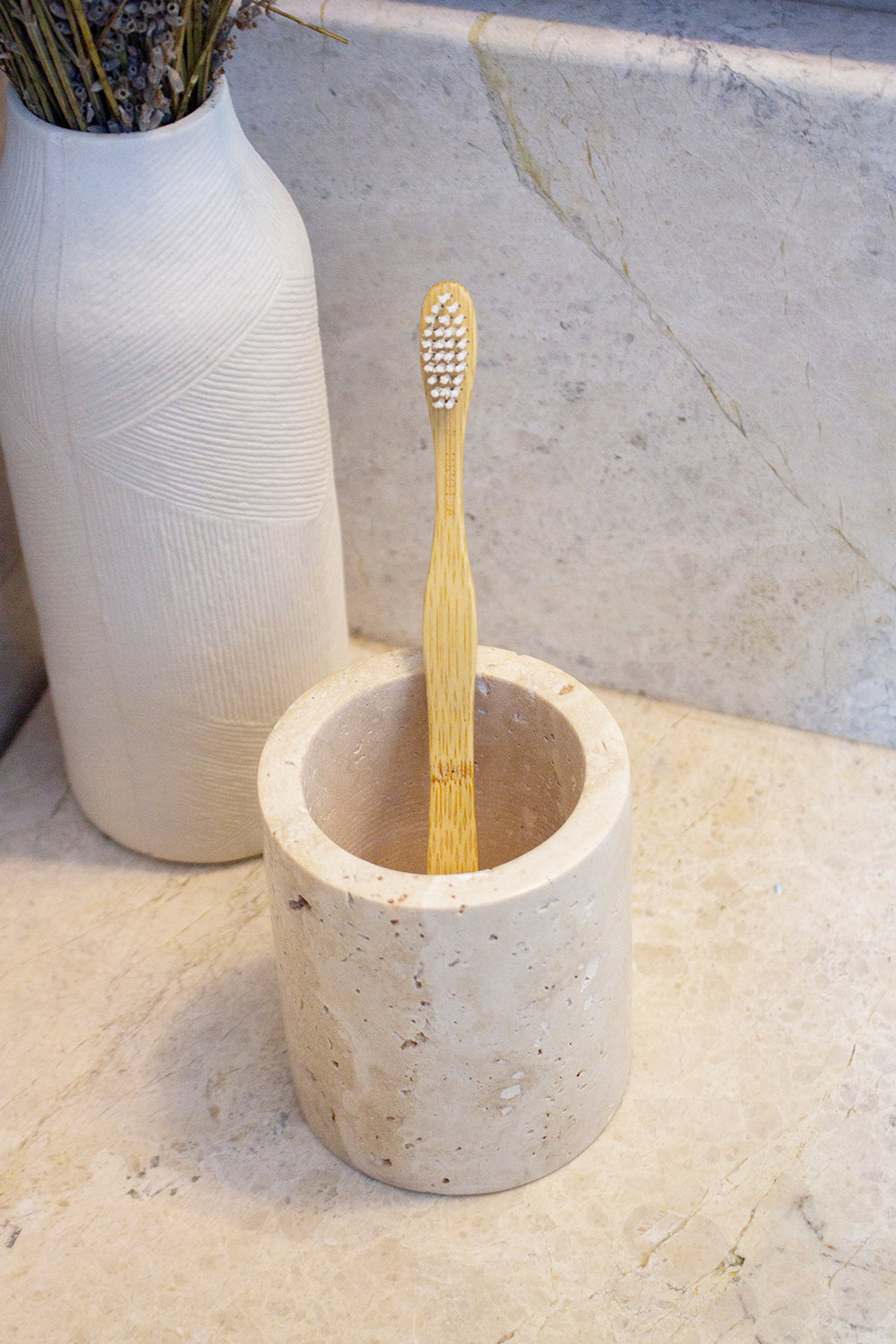 %100 mermerden üretilen Luna Diş Fırçalık işlevini yerine getirirken mermerin estetikliğini yaşam alanlarınıza yansıtabilirsiniz.
