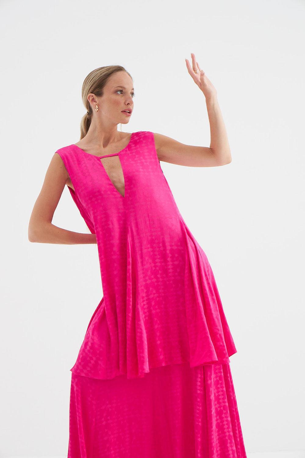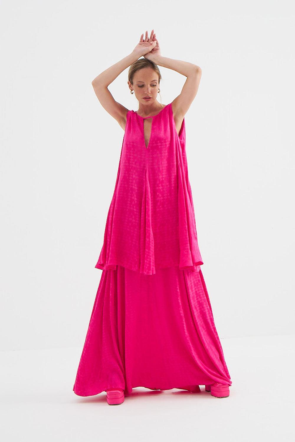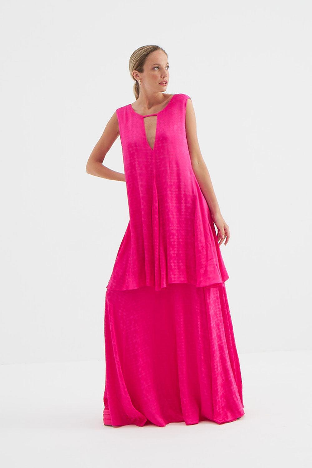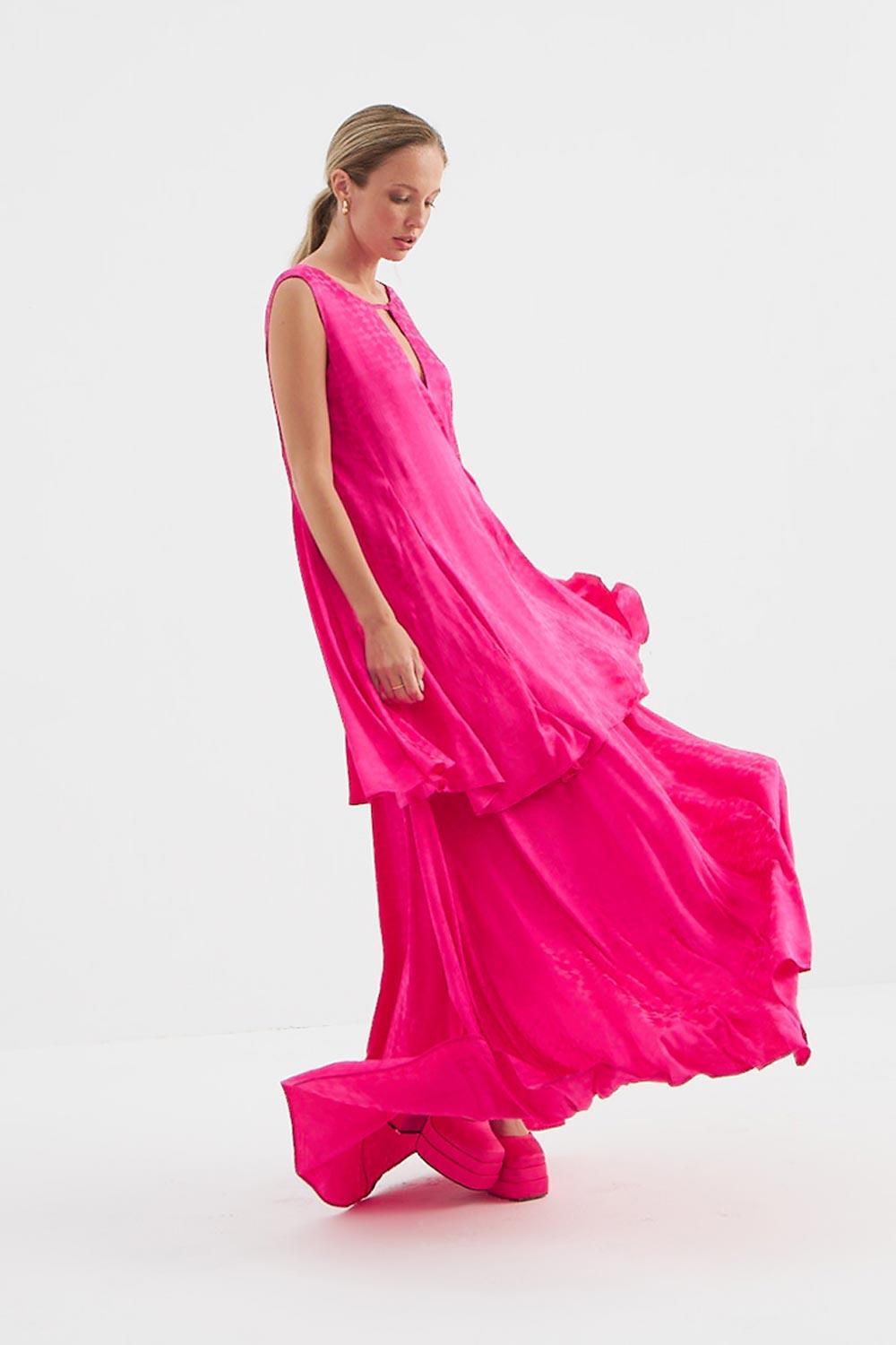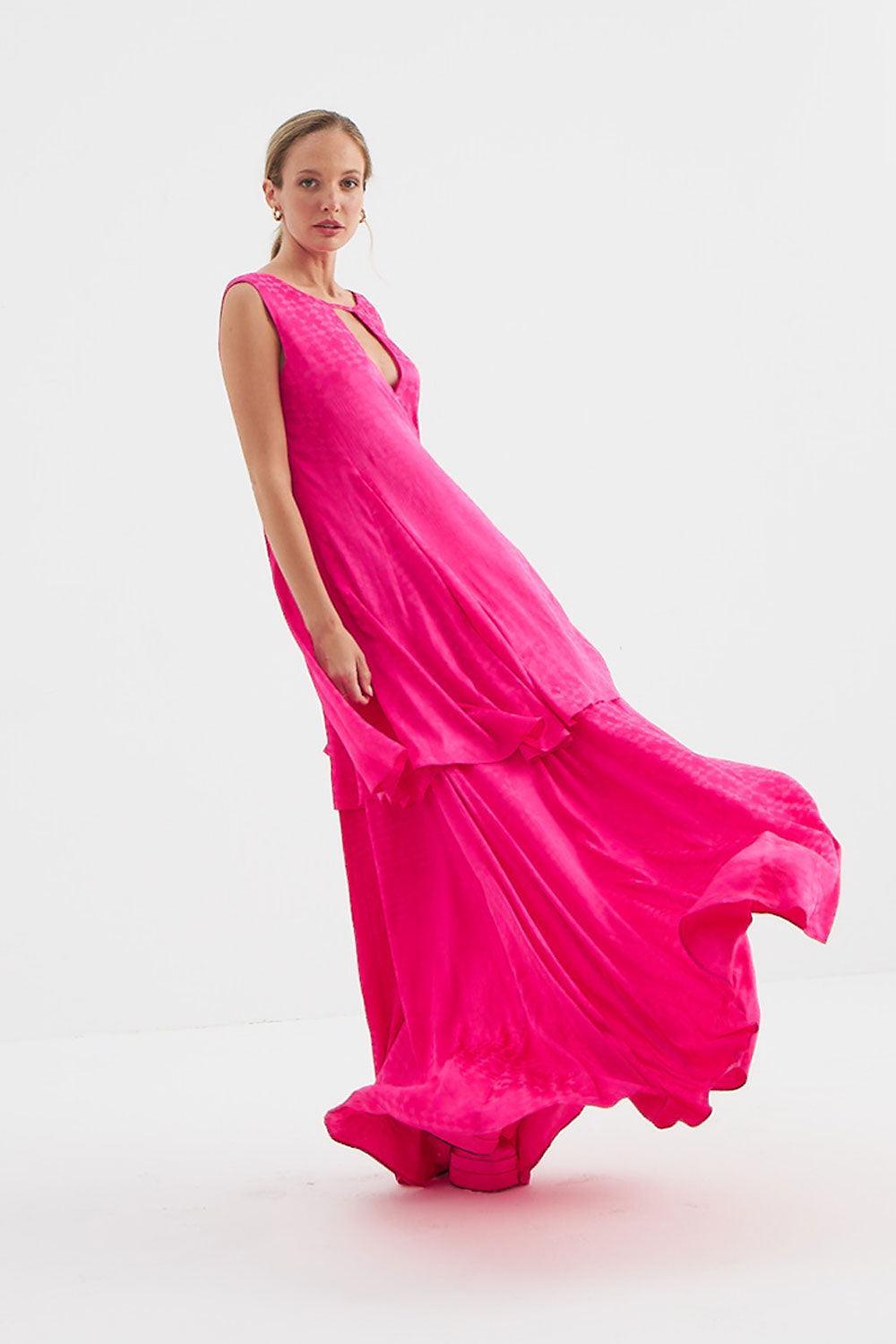 Holly Uzun Fuşya Elbise