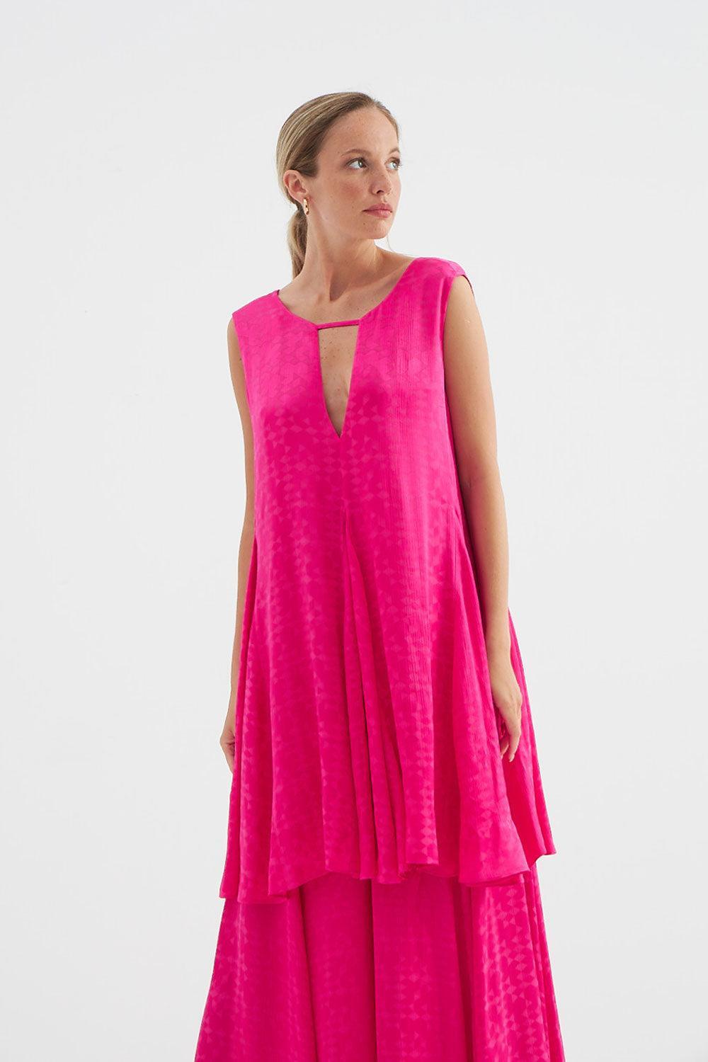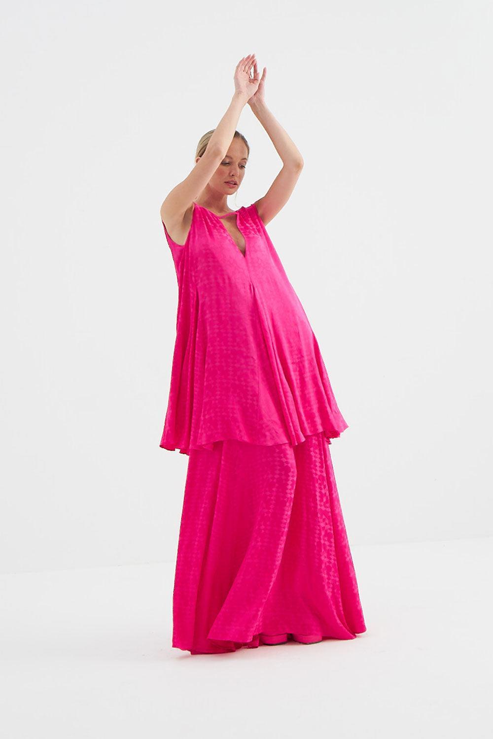 Fuşya jakar desenli