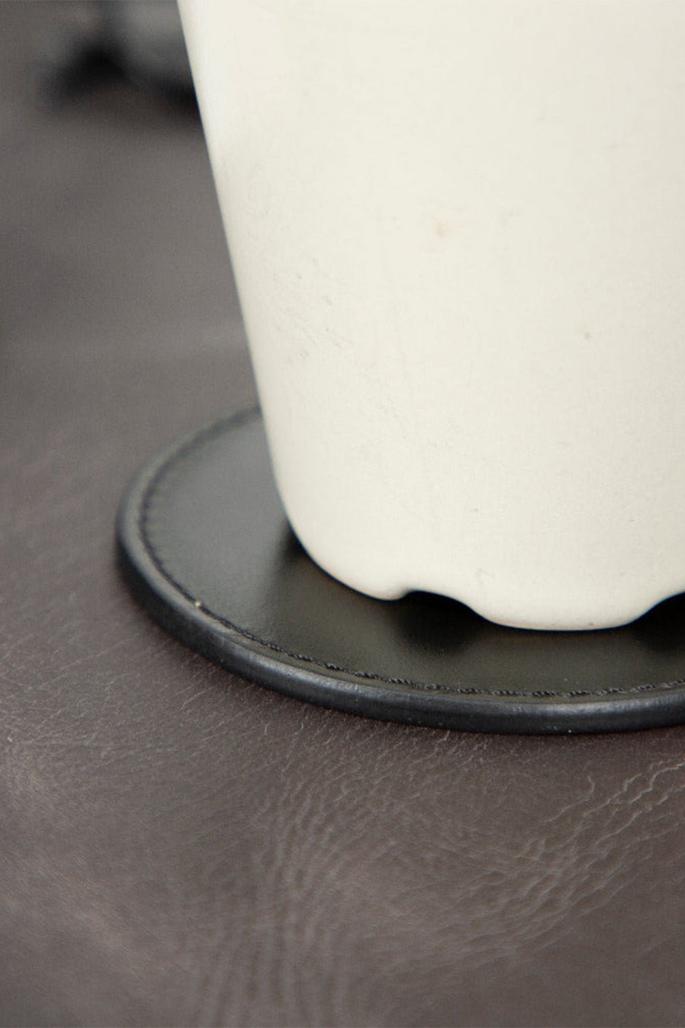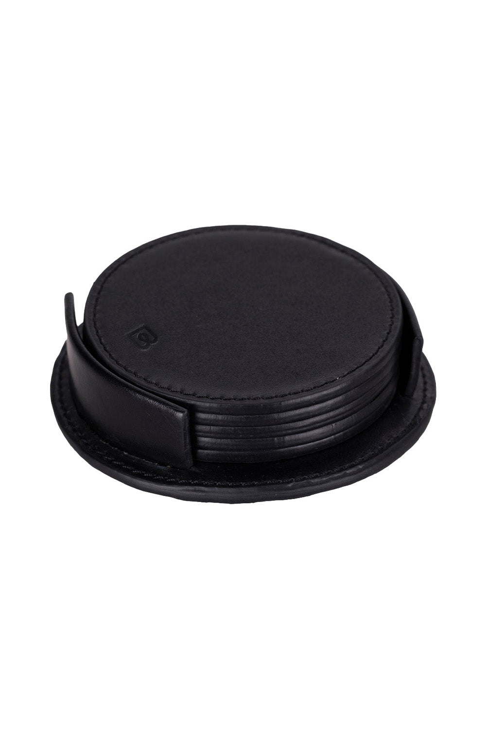 Siyah Deri Yuvarlak Bardak Altlığı Seti (5'li)