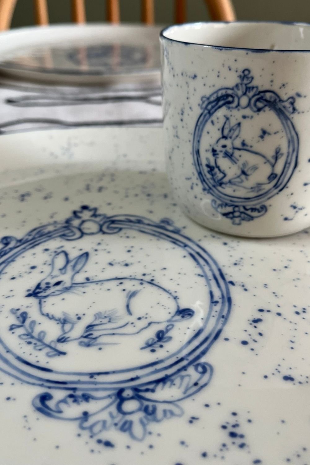 Ekru üzerine sır altı boyalar ile renklendirilen Fransız Limoges porselen mug özel tasarım ve el yapımıdır.