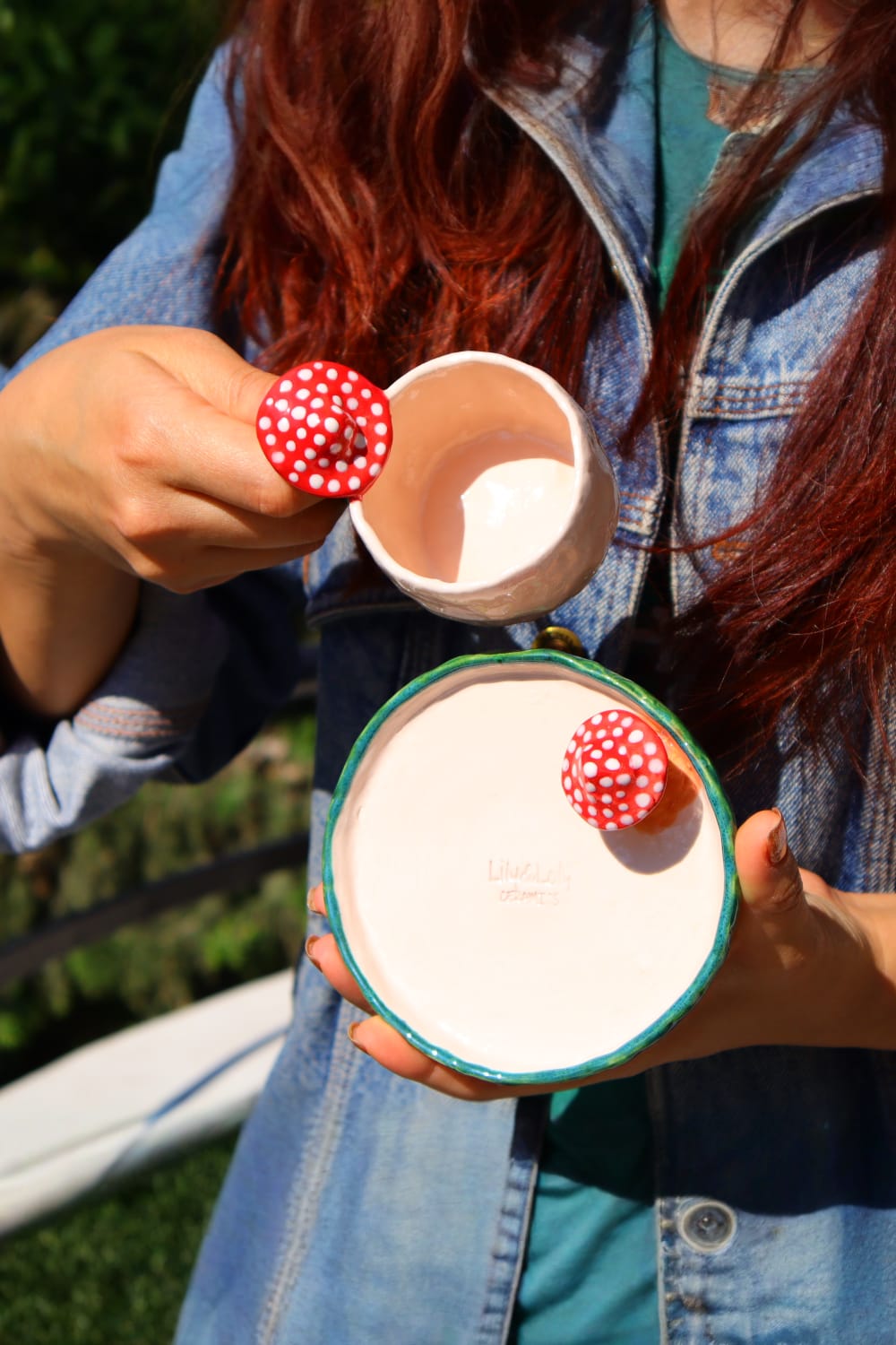 Lily Serisi "Mushrooms" Mantarlı 2'li Türk Kahvesi Seti- Mantar Kulplu El Yapımı Seramik Fincan
