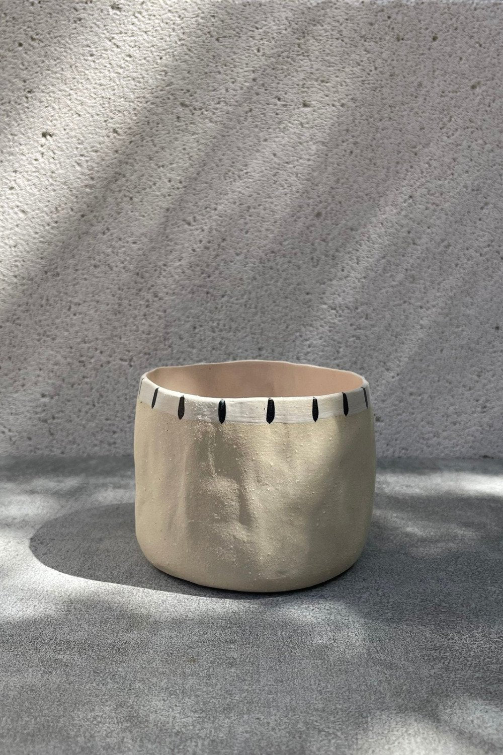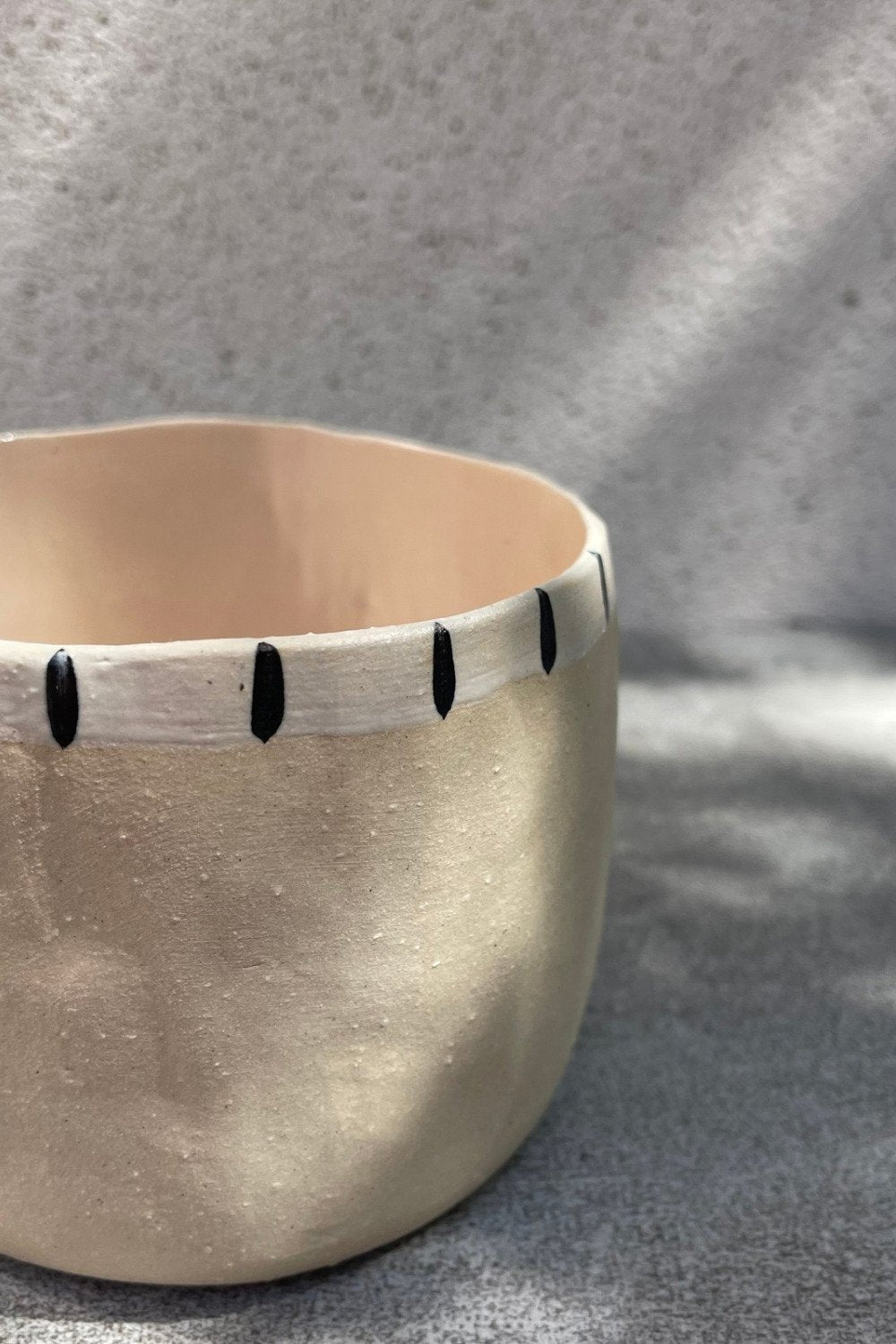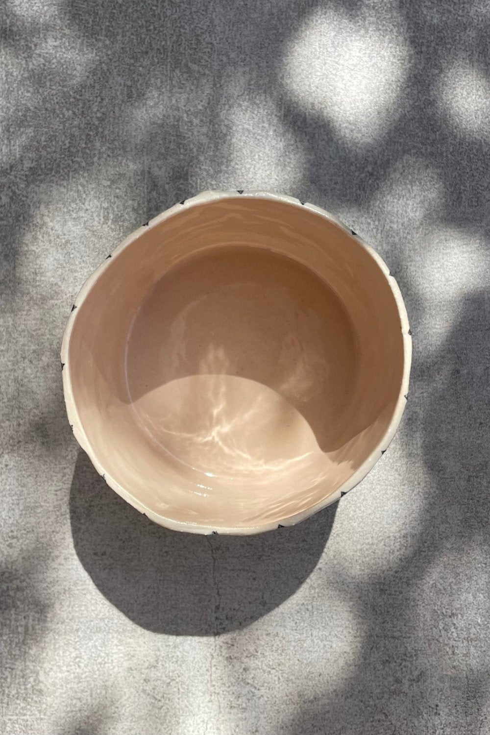 Renk: Dışı krem üzeri siyah beyaz çizgili, içi bej.