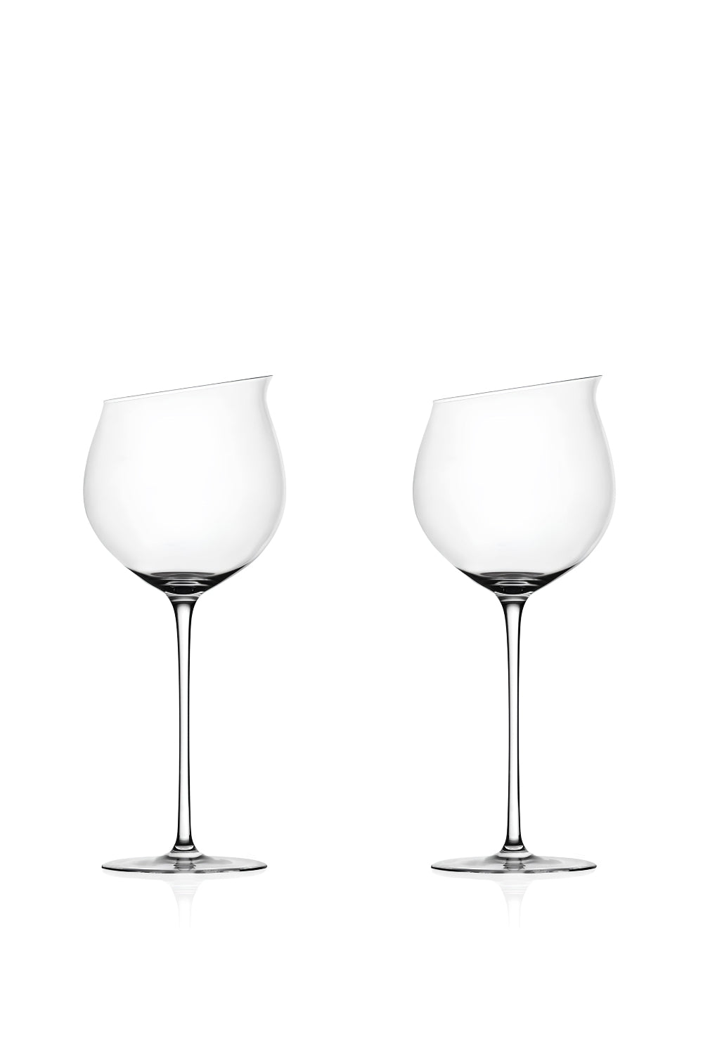 Solisti Cutted koleksiyonundan 2 adet kesik ağızlı cam kırmızı şarap kadehi.