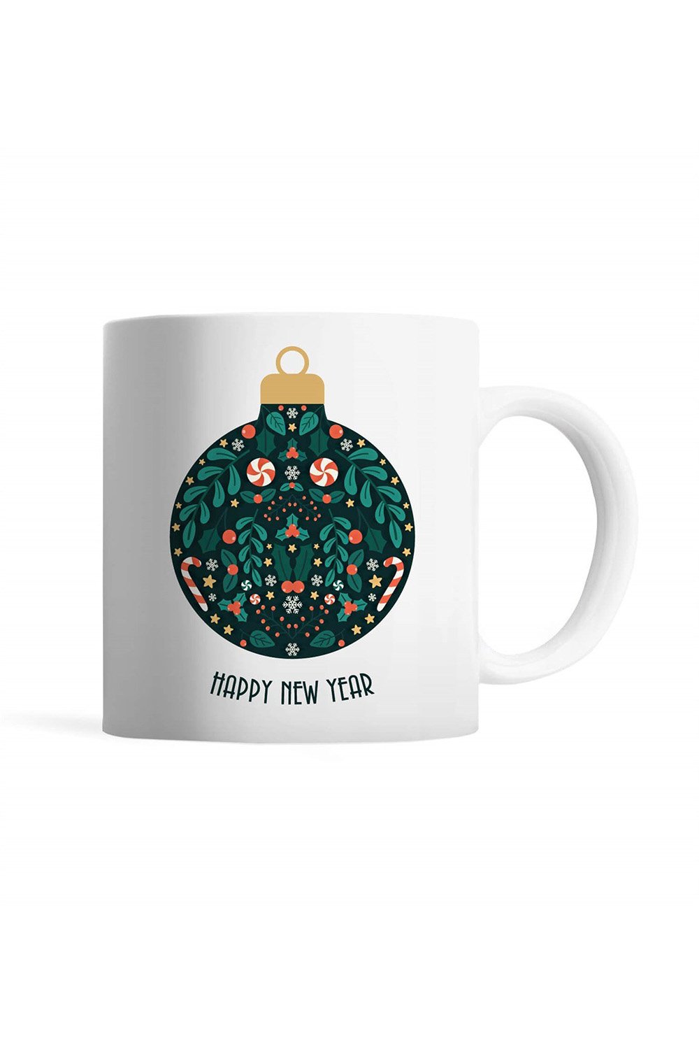 - Çift taraflı yılbaşı tasarım baskılı porselen kupa,