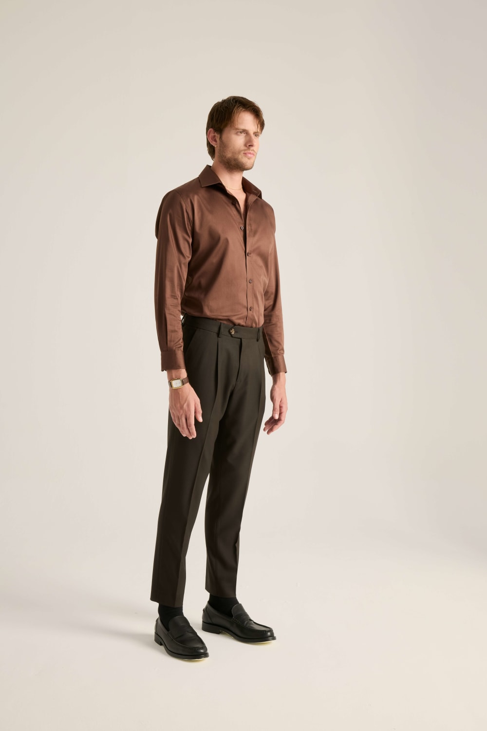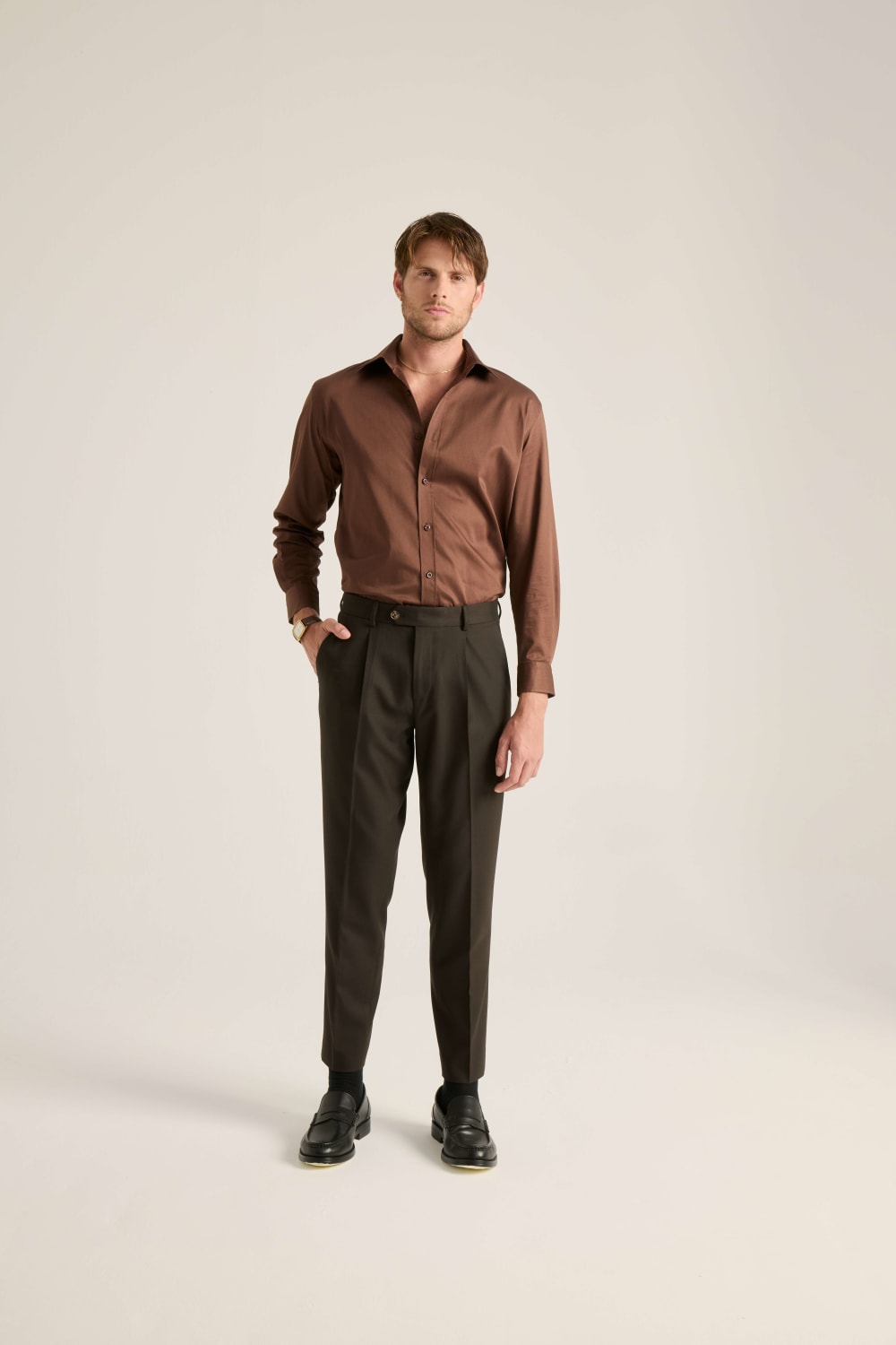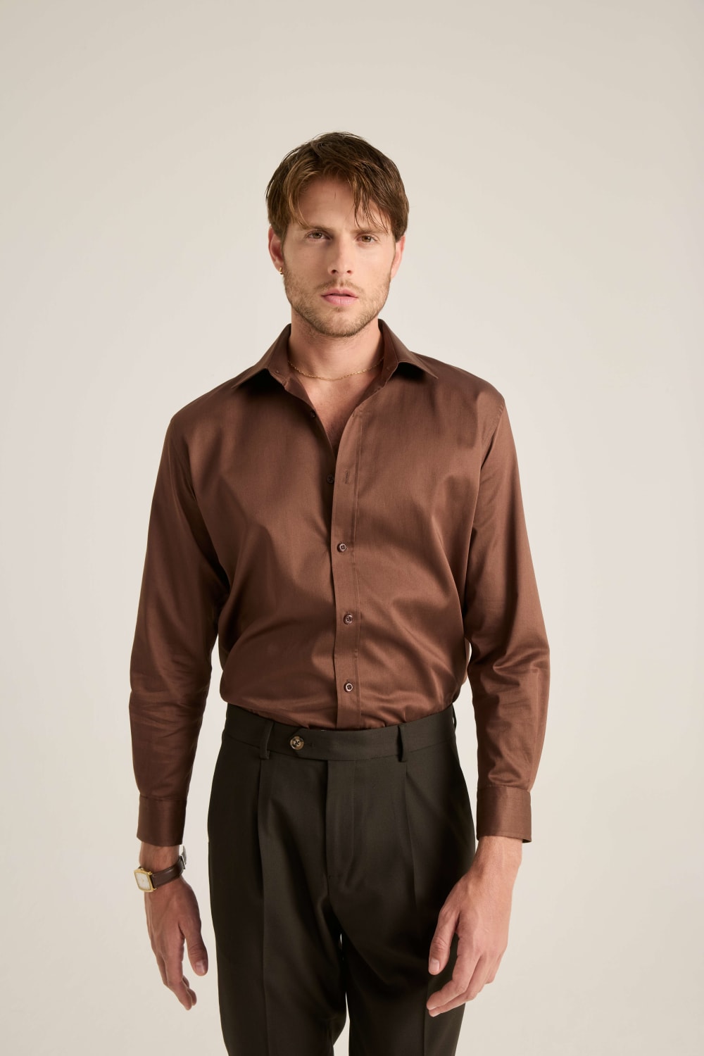 Vincent Koyu Kahve Saten Gömlek