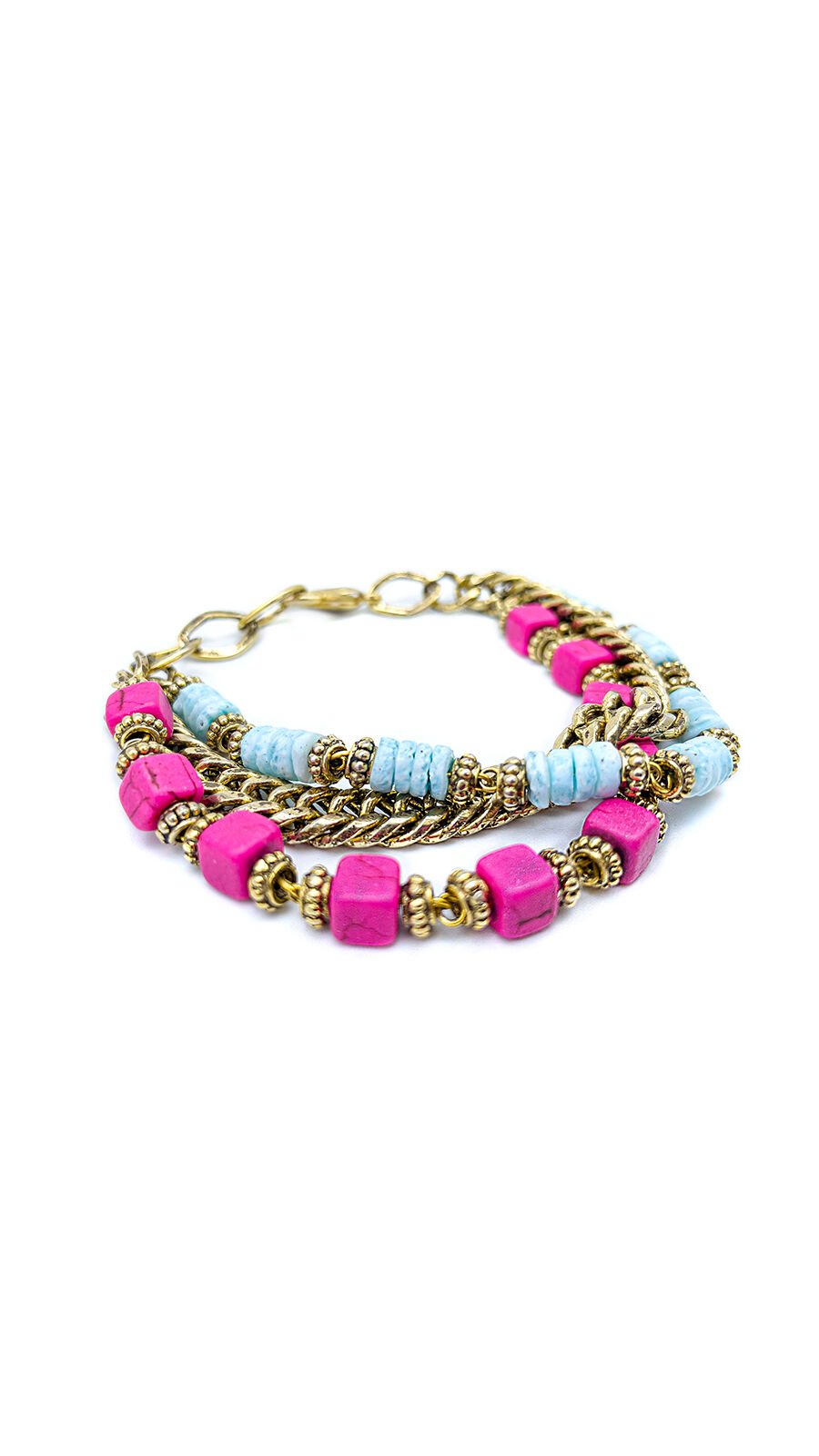 CHIRPING Doğal Taş Bileklik, modern ve doğal materyallerin bir araya gelmesiyle sofistike bir estetik sunar. Parlak ve dayanıklı 22 ayar altın kaplama pirinç zinciriyle başlayan bu üç sıralı bileklik, doğal havlit ve sedef taşlarıyla zenginleştirilmiştir. Her iki taş sırasında, 22 ayar altın kaplama pirinç halkaların zarif sıralaması bilekliğe ilave bir ışıltı ve lüks katmaktadır. Doğanın güzellikleriyle modern tasarımın buluştuğu CHIRPING Doğal Taş Bileklik, hem gündüz hem de gece giyimlerinizde şıklığınızı tamamlar.