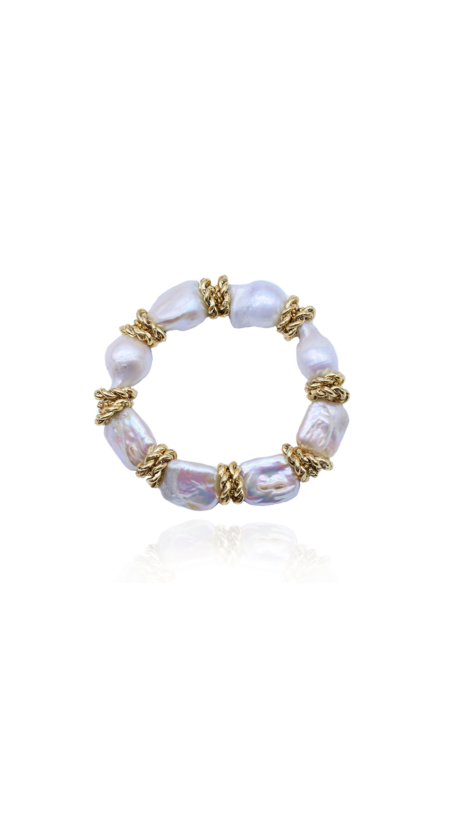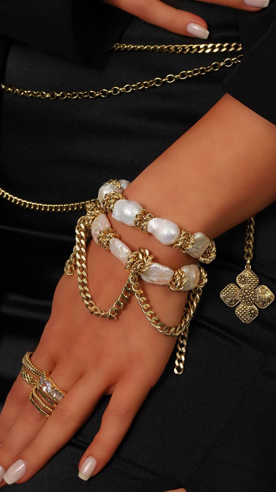 Doğanın en değerli hazinelerinden barok inciler, göz alıcı ışıltısı ve kendine özgü formlarıyla Lucenza bilekliğinde buluşuyor. 22 ayar altın kaplama burgular ve özenle yerleştirilmiş güverse detayları, tasarıma güçlü ve sofistike bir karakter katıyor.
