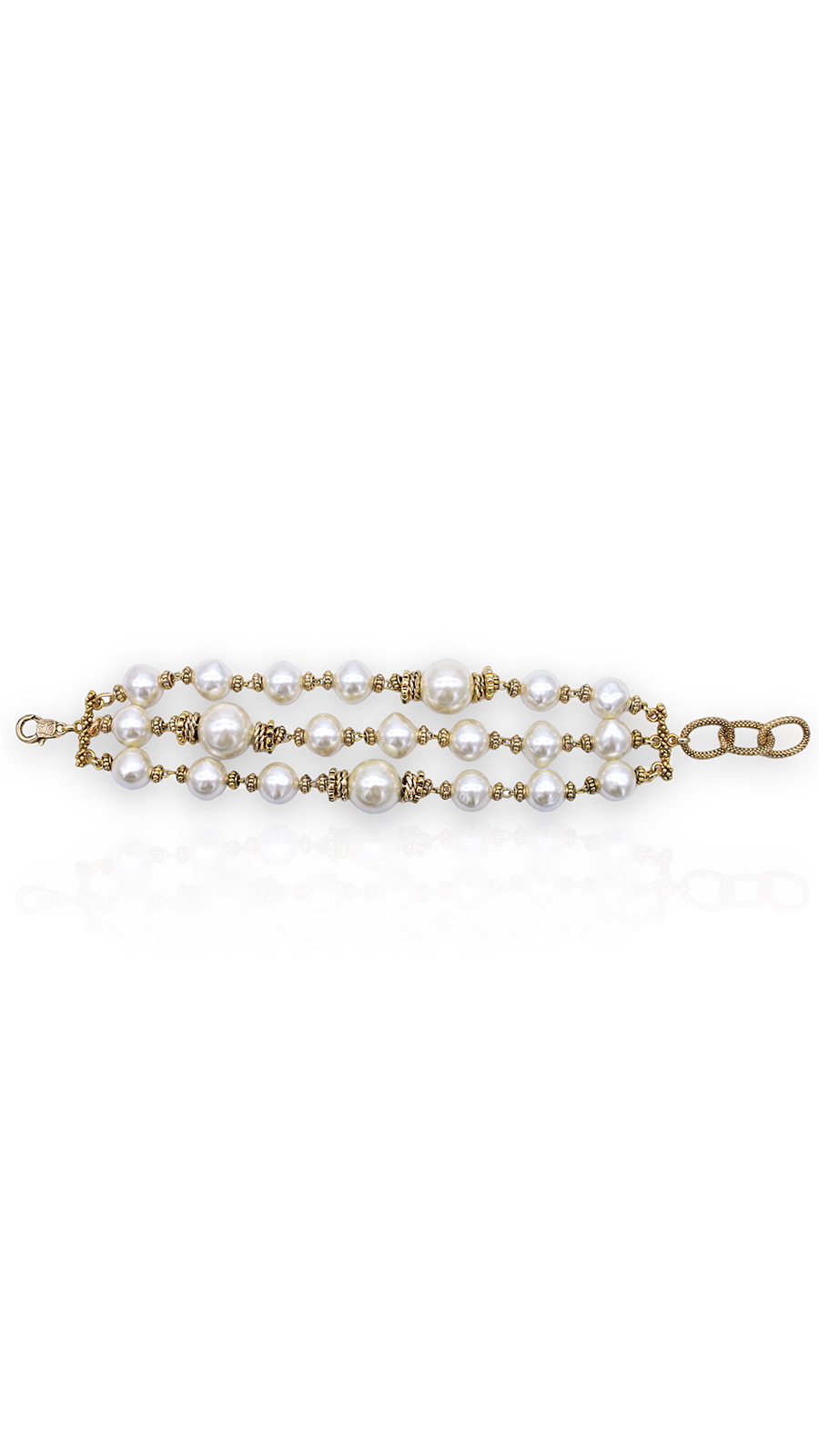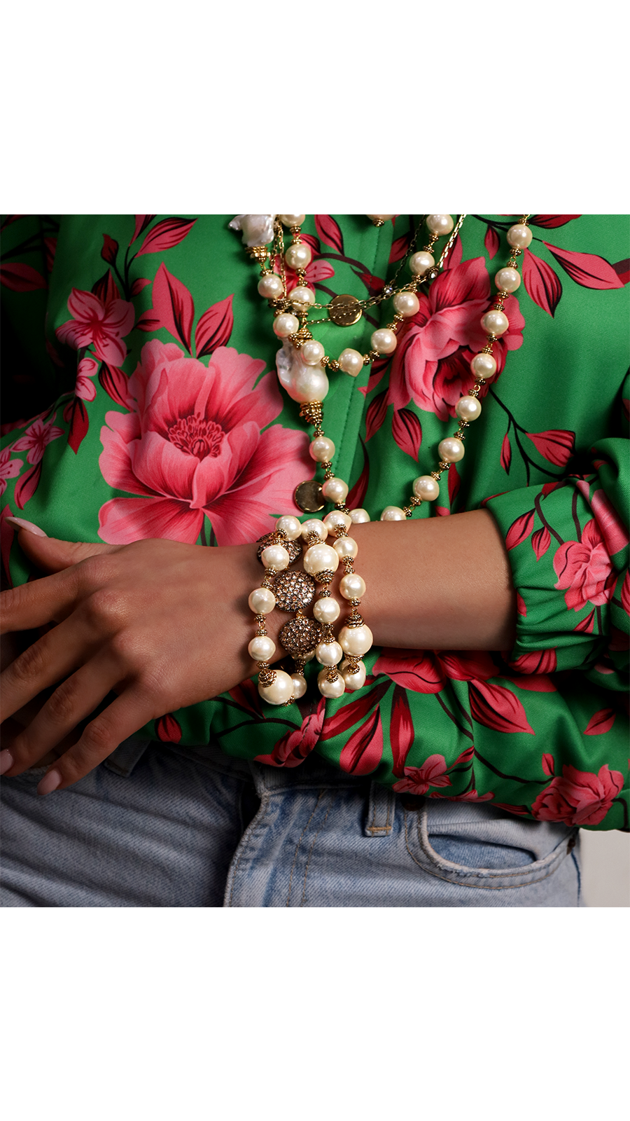 RICO İnci Bilekliği, zamansız bir zarafet ve göz alıcı ihtişamı bileğinizde taşımanız için tasarlandı. Üç zarif sıra halinde dizilmiş farklı boyutlardaki incilerin her biri, ışığın her dokunuşunda farklı bir hikaye fısıldar gibidir. RICO İnci Bileklik aralarındaki 22 ayar altın kaplama pirinç ara halkalar, eskitme işçiliği ile geleneksel zanaatin modern dokunuşlarıyla harmanlanmış, her bir halka adeta geçmişin izlerini, bugünün şıklığıyla birleştirmektedir. RICO İnci Bileklik, sadece bir aksesuar olmanın ötesinde, taşıyana özel bir hissiyat sunar. Her bir inci tanesi ve altının sıcak dokunuşu, doğanın ve insan elinin mükemmel uyumunu bileğinizde sergiler. RICO İnci Bileklik, sıradan bir günü özel kılacak, özel günlerde ise parıltınızı taçlandıracak bir mücevherdir.