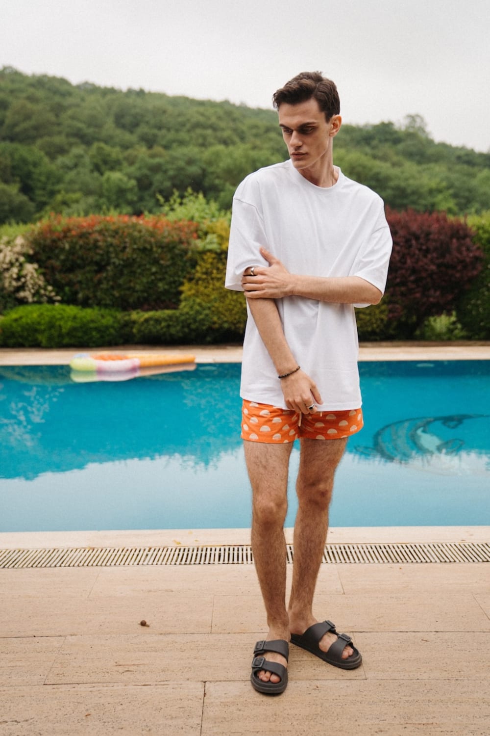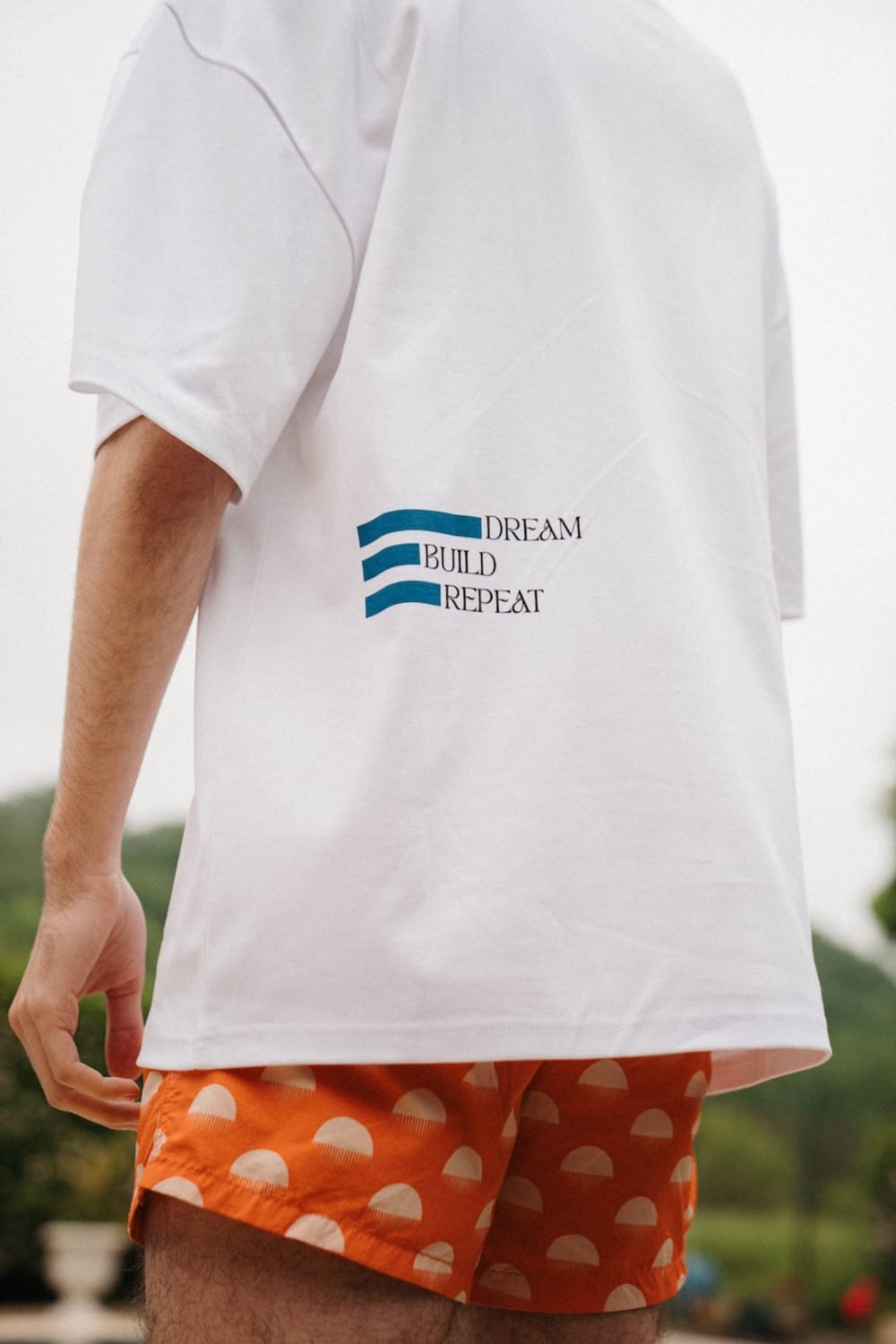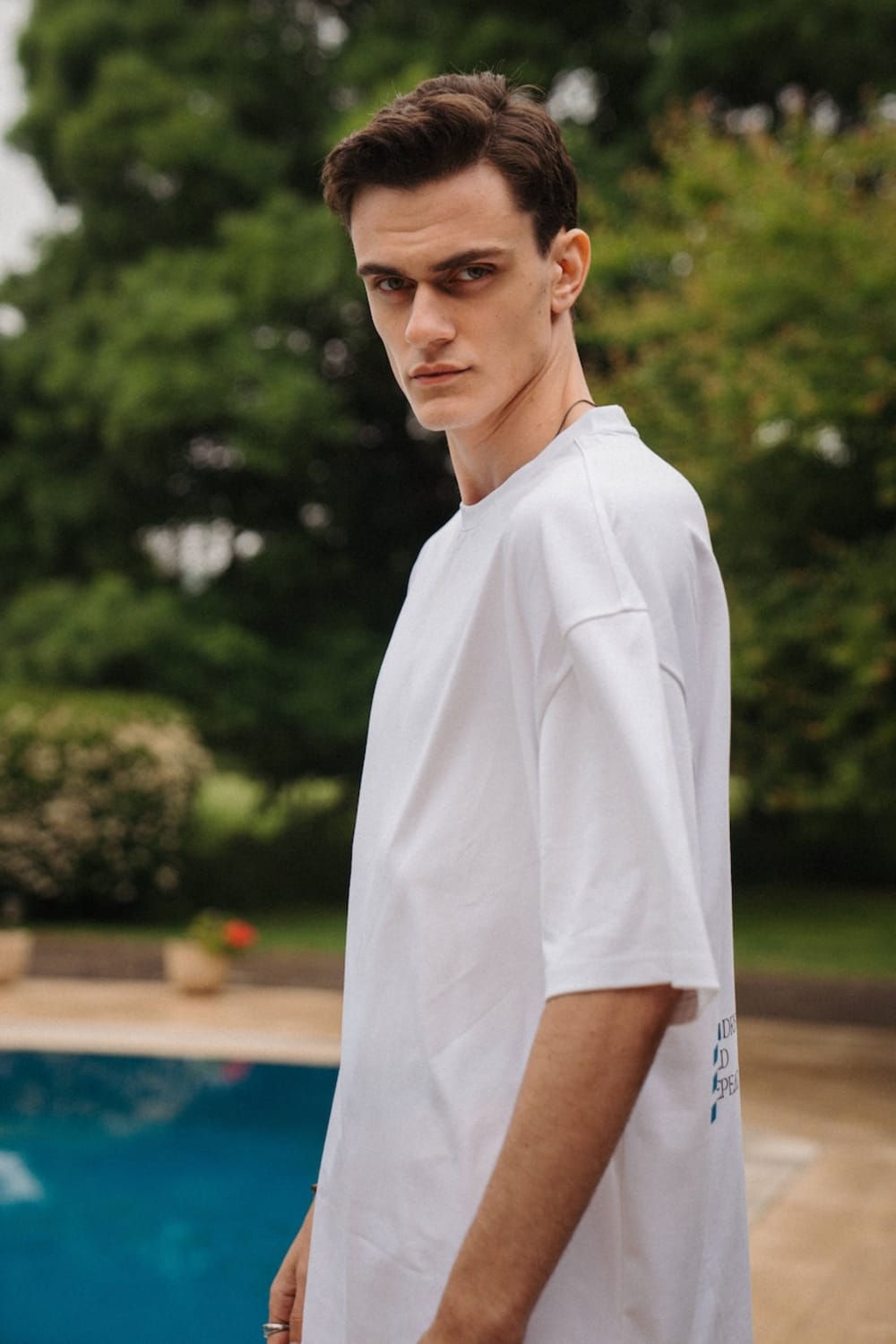Önü düz arkası kucuk baskılı oversize bir tshirttur