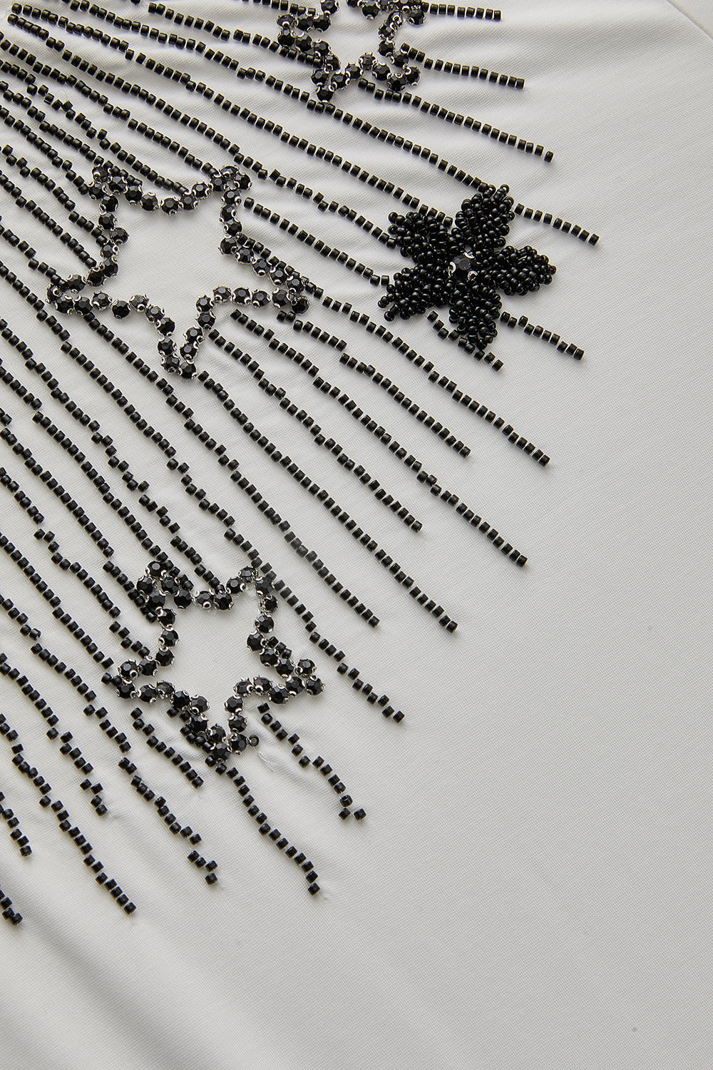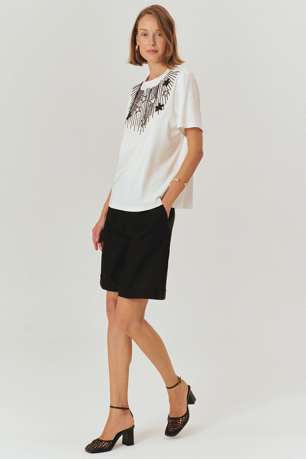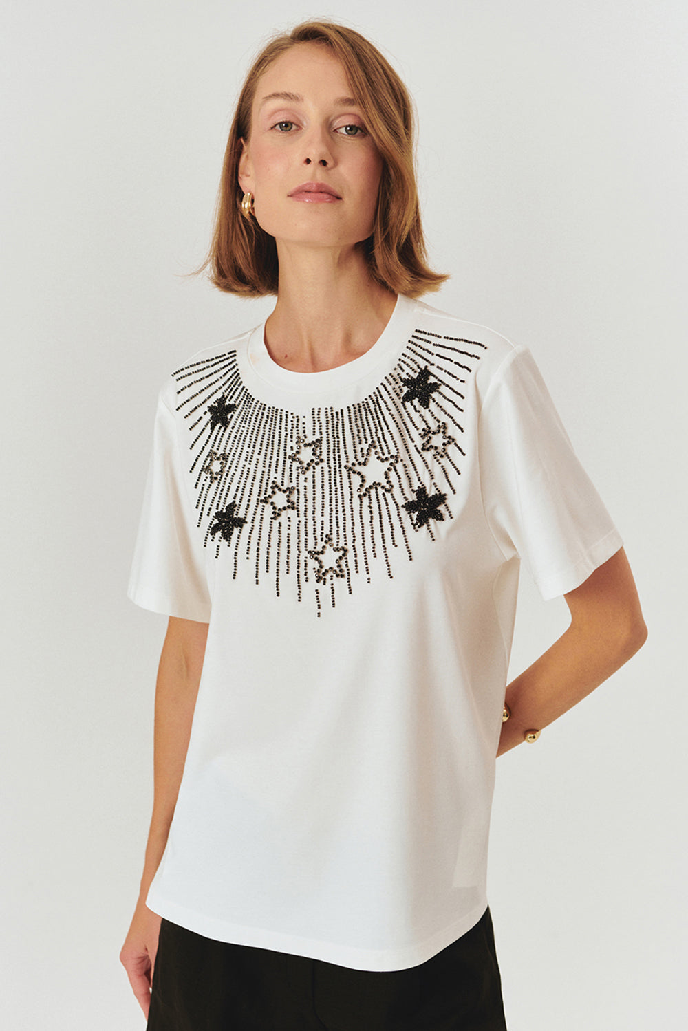 Yıldız İŞlemeli Bisiklet Yaka Regular Örme Tişört