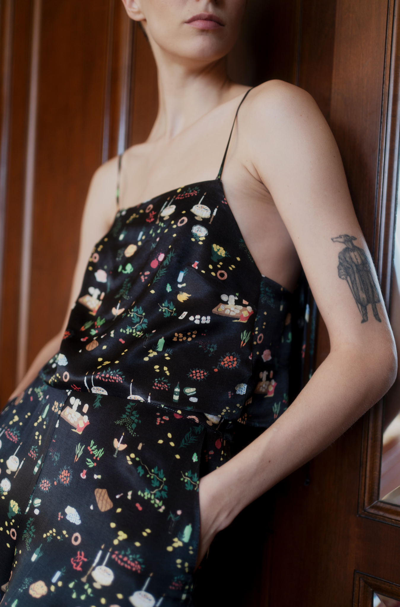 İnce askıları ve eğlenceli piknik desenli tasarımıyla bu üst, gardırobunuza stil ve rahatlık katıyor. Düz yaka detayı sayesinde hem tek başına hem de katmanlı kombinlerde kolayca kullanılabilir. Yaz günlerinde hafif ve ferah bir seçenek sunar.