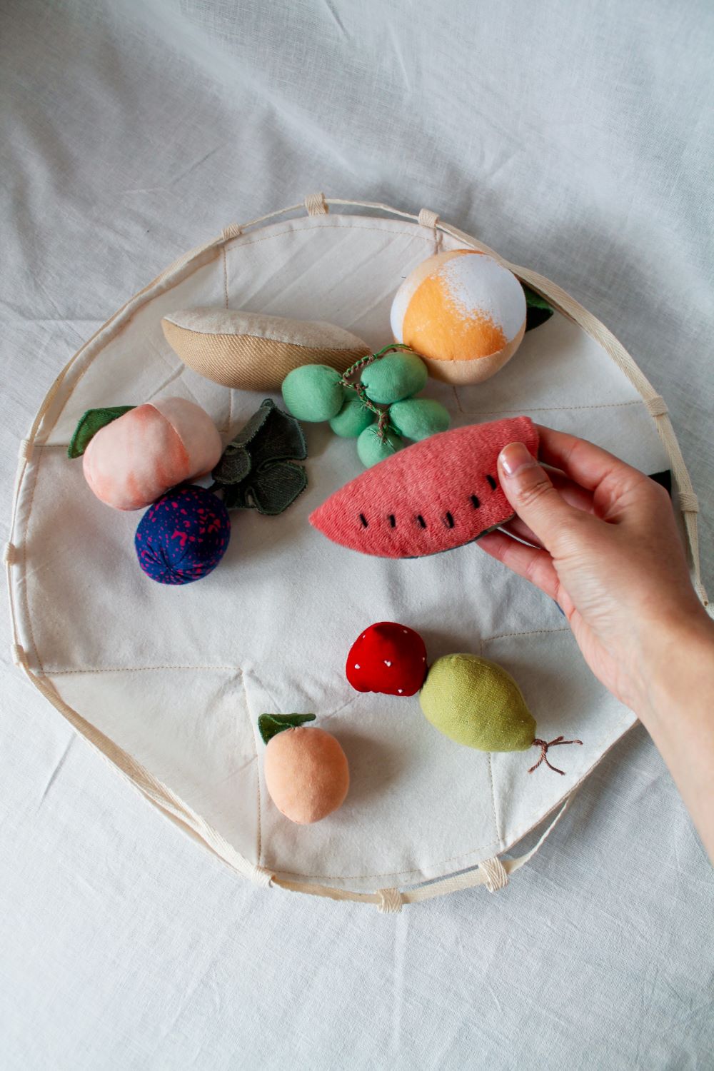 Yaz Meyve Seti, çocukların hayal gücünü besleyen, duyusal gelişimlerini destekleyen eşsiz bir oyuncak setidir. Atık kumaşların ileri dönüşümüyle elde edilen bu özel set, miniklerin dünyasına renk ve eğlence katar. Bu oyuncak setiyle mevsimsel beslenmeye de odaklanabilir ve gezegenimizin mevsim döngüsü hakkında da oyunlar oynayabilirsiniz.