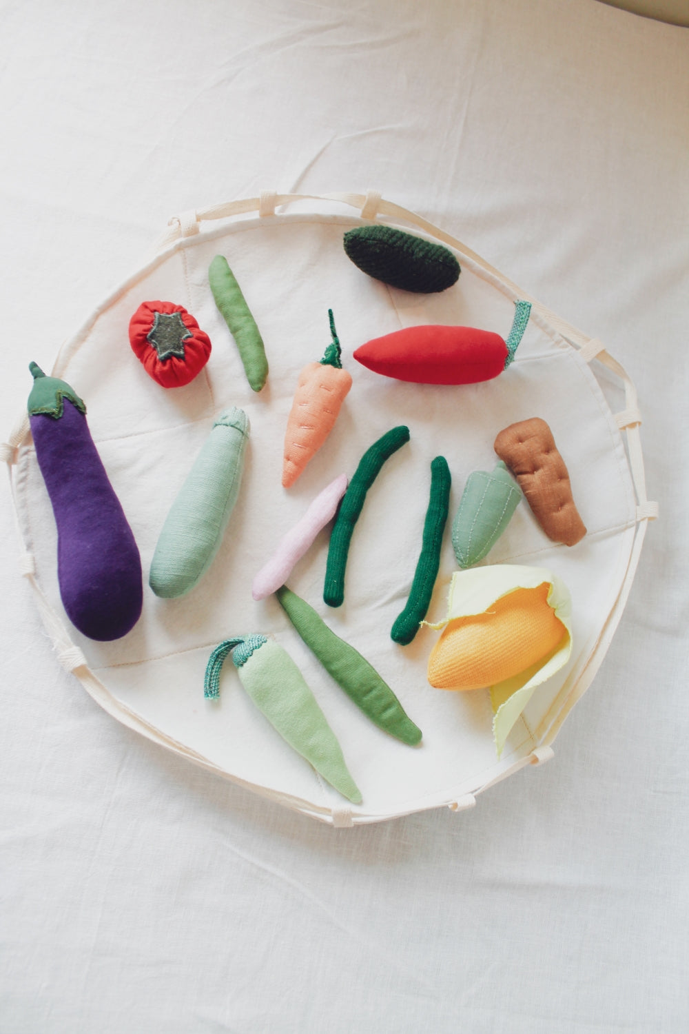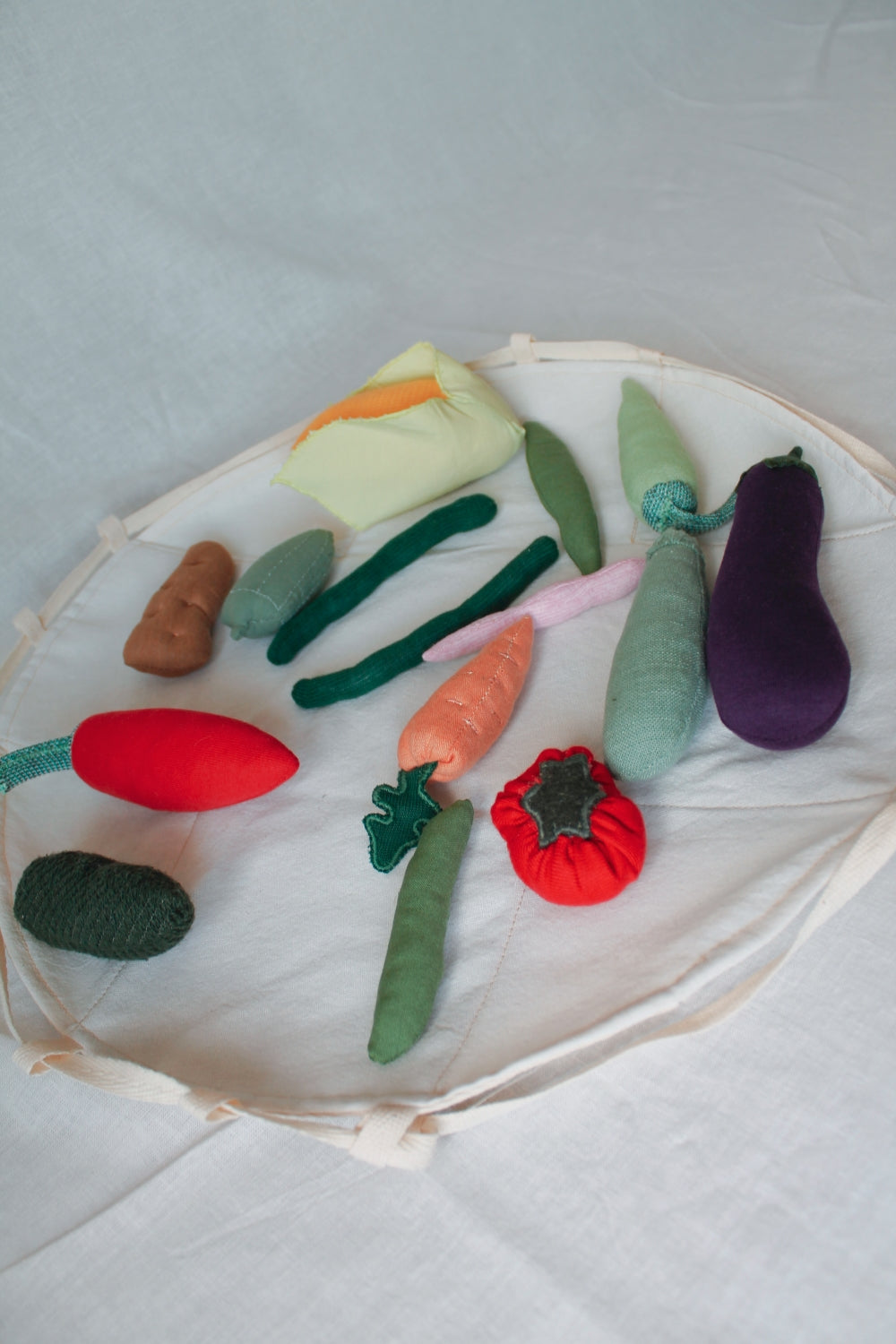 Yaz Sebze Seti, çocukların hayal gücünü besleyen, duyusal gelişimlerini destekleyen eşsiz bir oyuncak setidir. Atık kumaşların ileri dönüşümüyle elde edilen bu özel set, miniklerin dünyasına renk ve eğlence katar. Bu oyuncak setiyle mevsimsel beslenmeye de odaklanabilir ve gezegenimizin mevsim döngüsü hakkında da oyunlar oynayabilirsiniz.