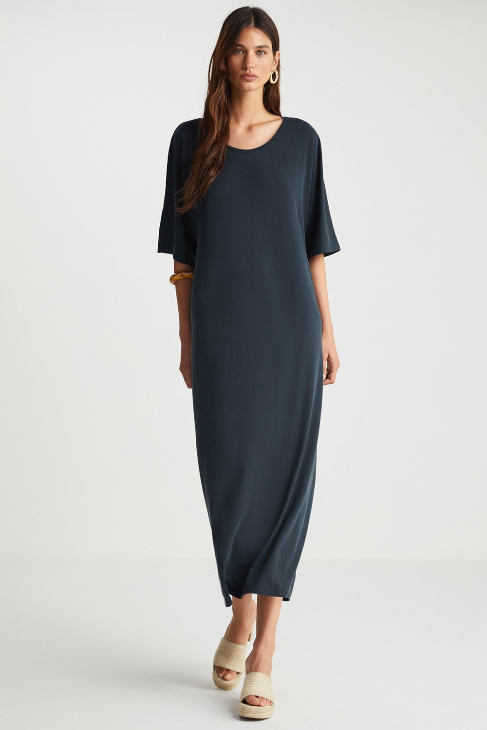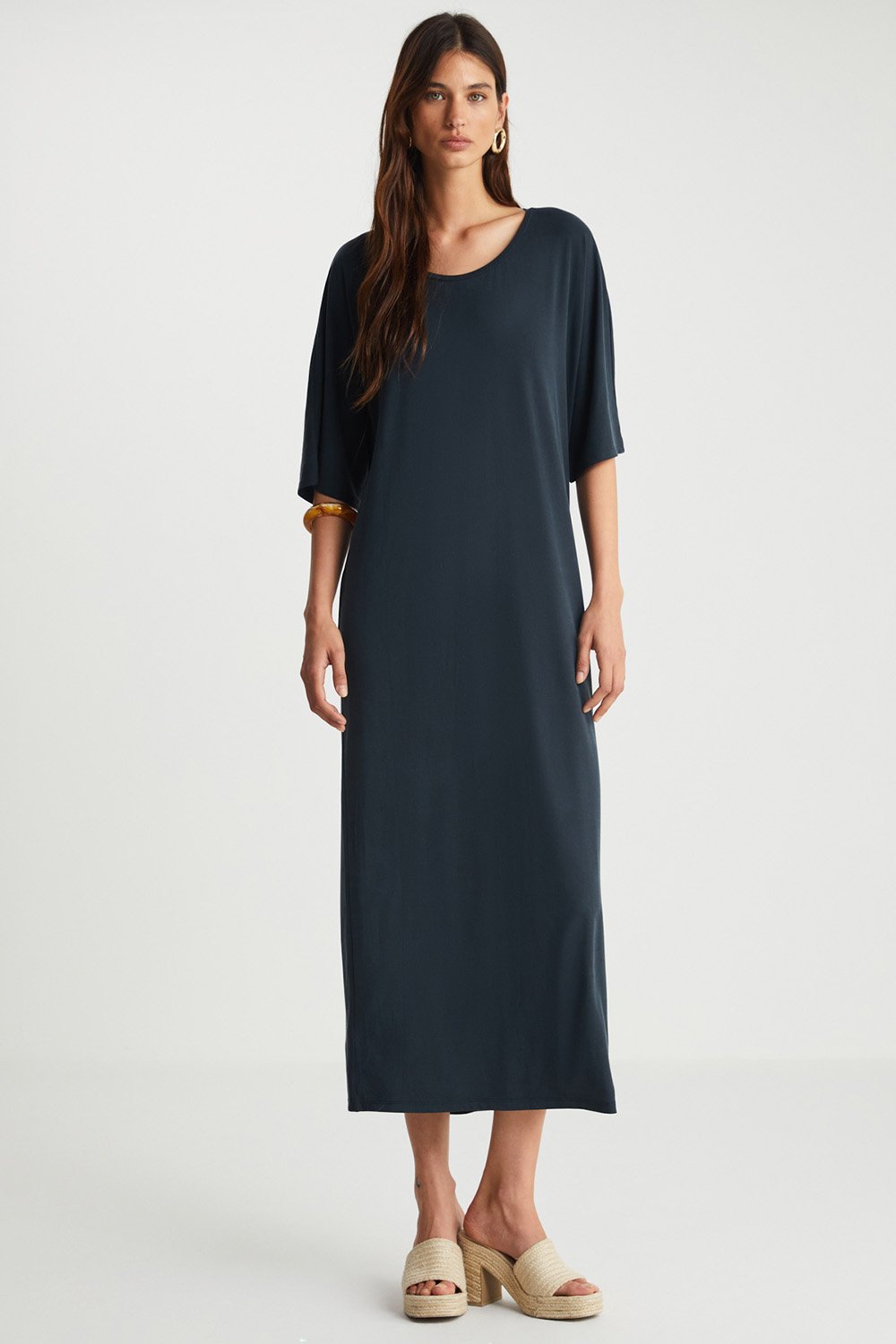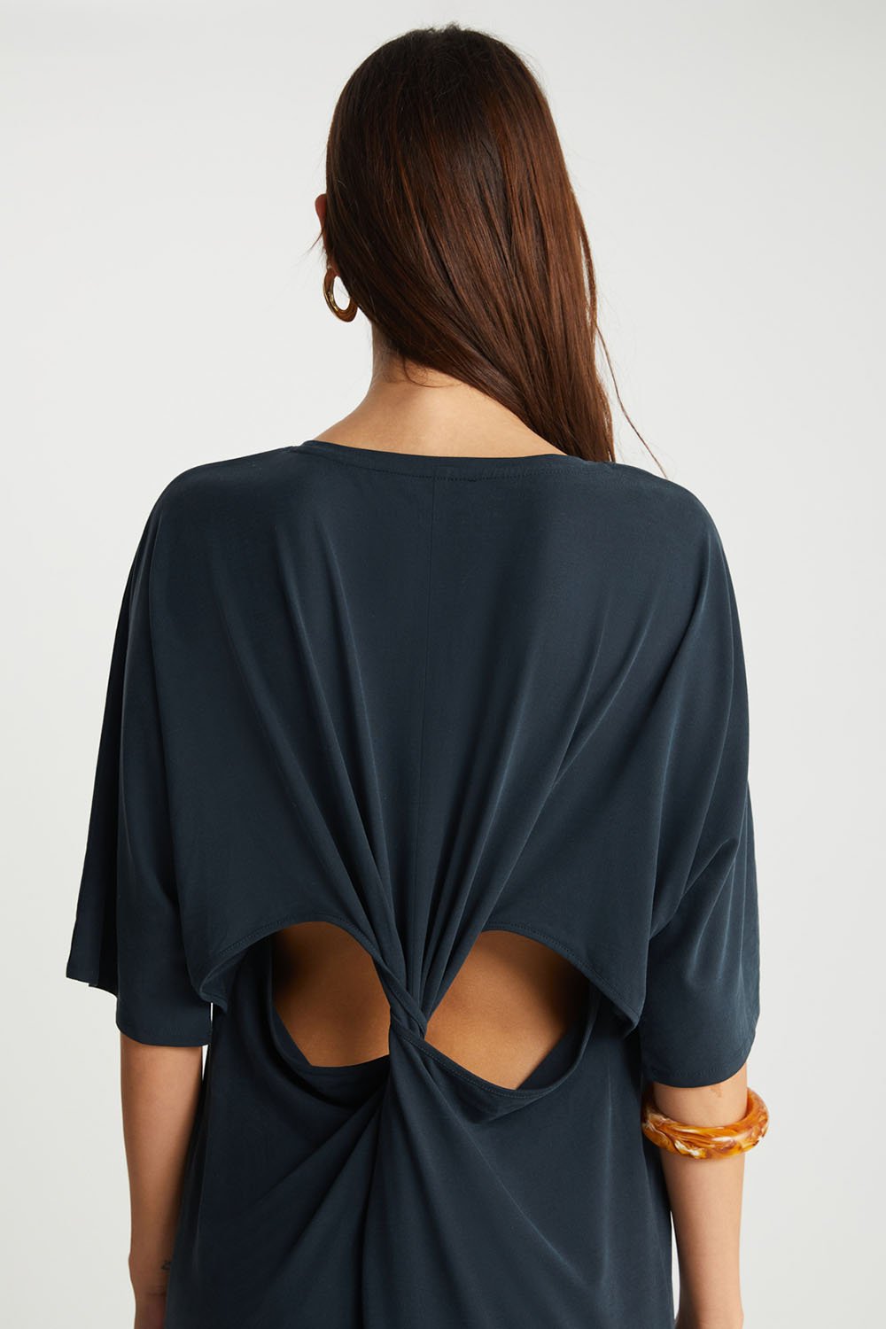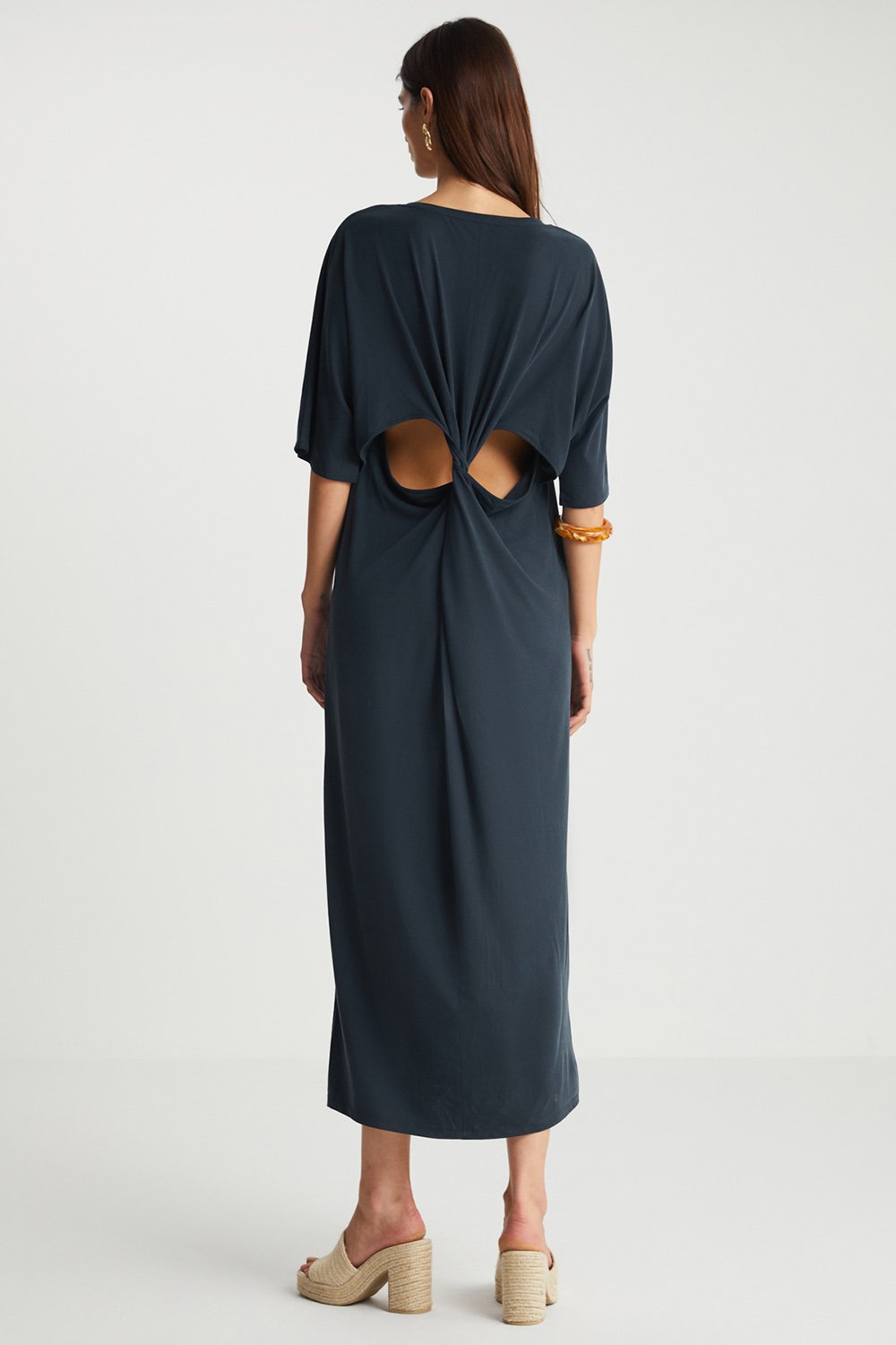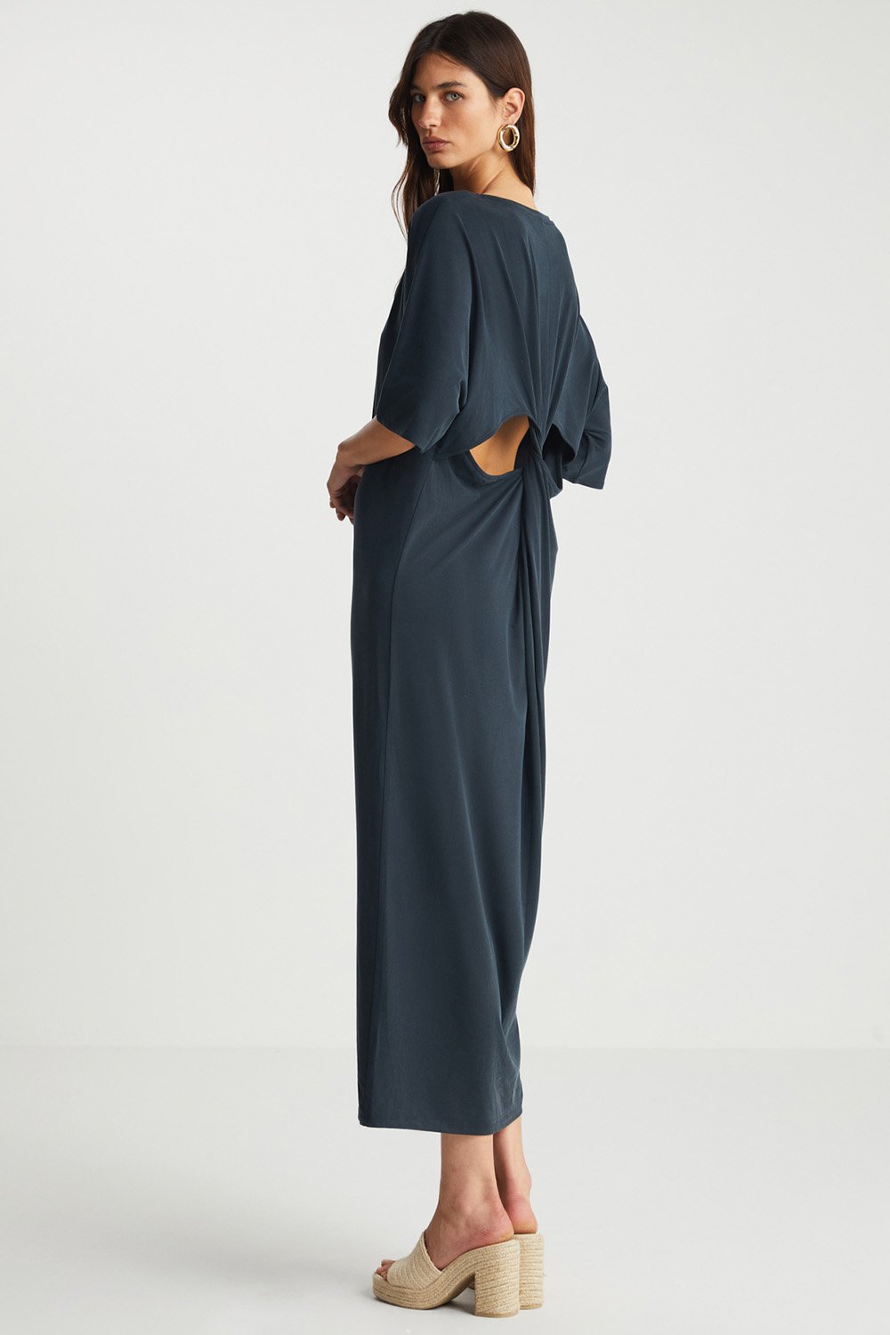 Cupro bol kesim yazlık elbisemiz ipek benzeri dokuma jarse kalitesinden üretilmiştir. Arkadan yukarıya doğru kıvrılan düğüm detayı, bu elbiseyi vurgulayarak günlük stilde ve hatta gece stilinde giymeyi kolaylaştırır.