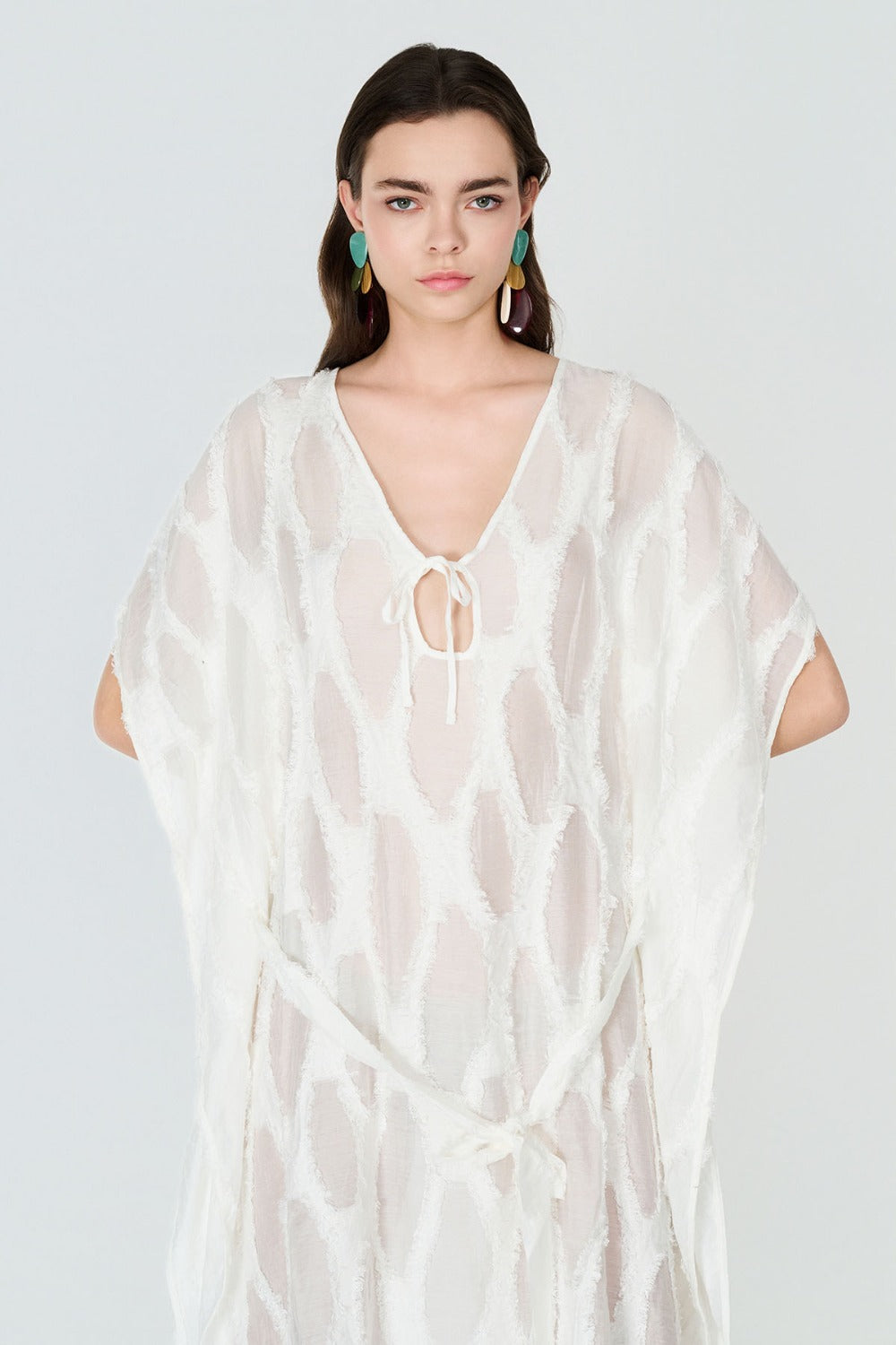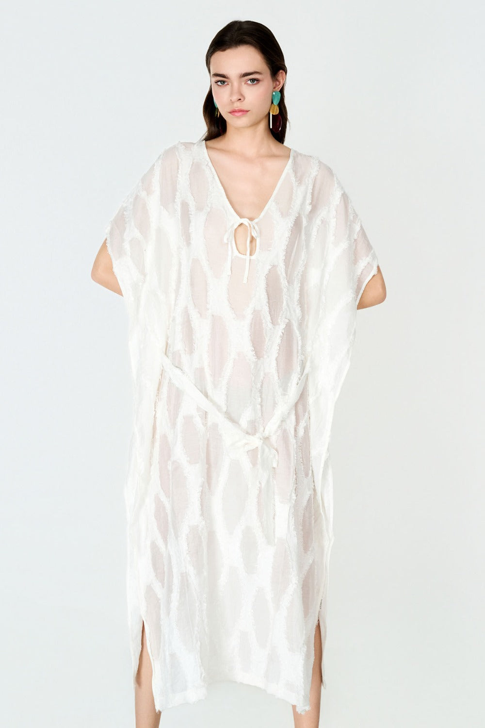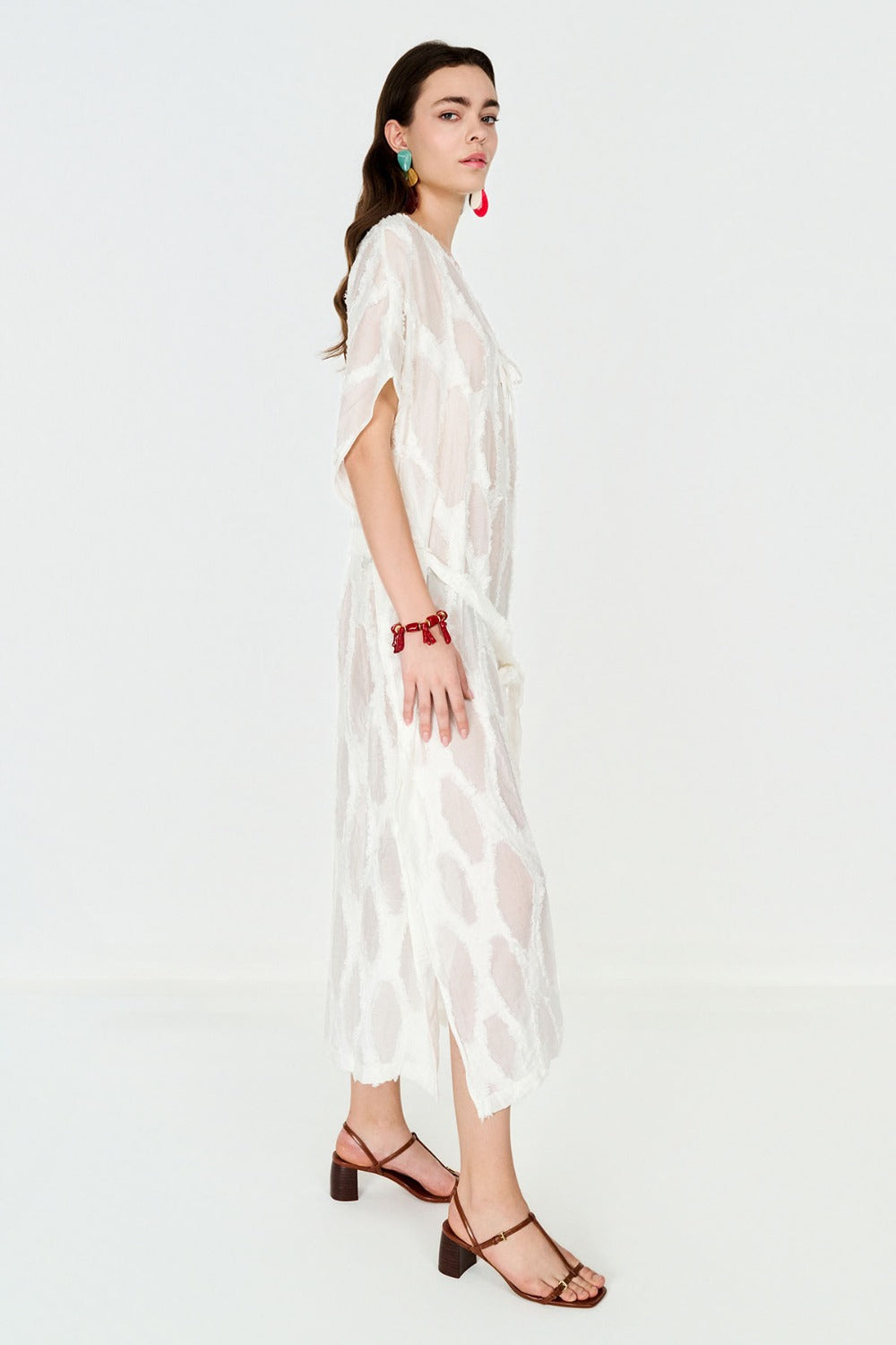 Boneqa’nın özel Design koleksiyonuna ait bu Beyaz Jakarlı Elbise, yaz mevsiminin vazgeçilmez parçalarından biri olmaya aday. Derin V yakası, düşük kol oyukları ve yüksek yan yırtmaçları sayesinde, özellikle bikini ve mayo üzerine giymek için mükemmel bir seçim sunar.