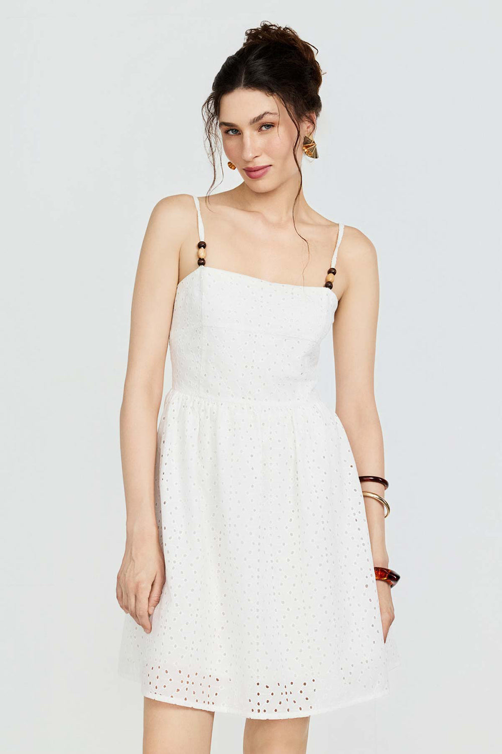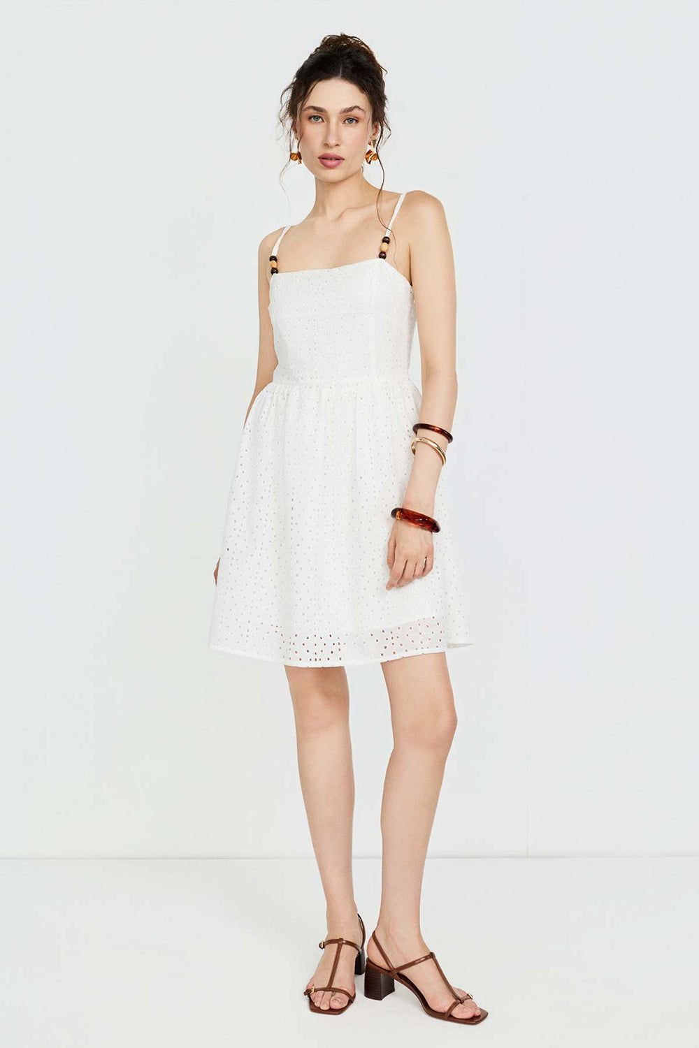 Boncuk Detaylı Brode Mini Elbise
