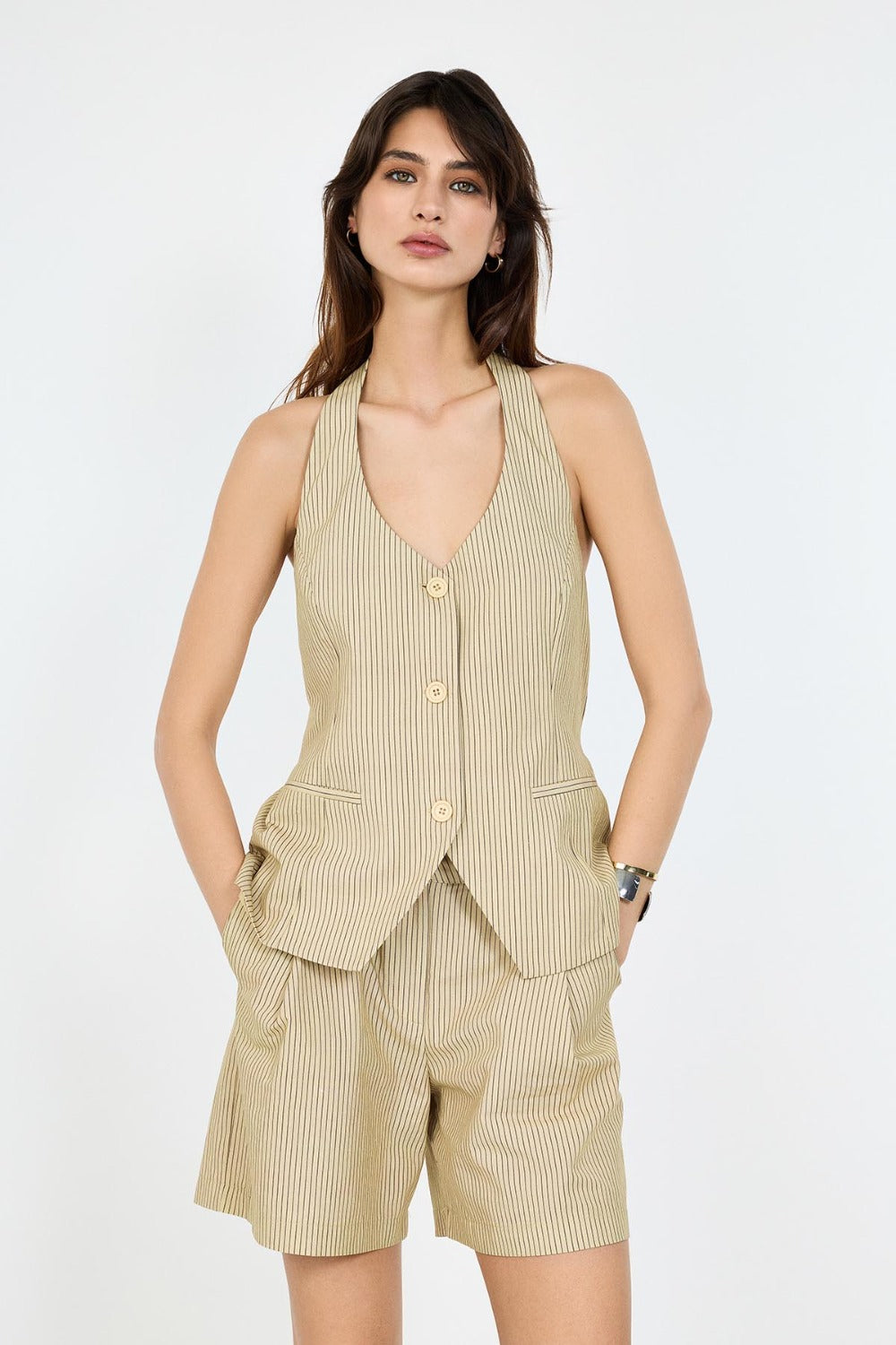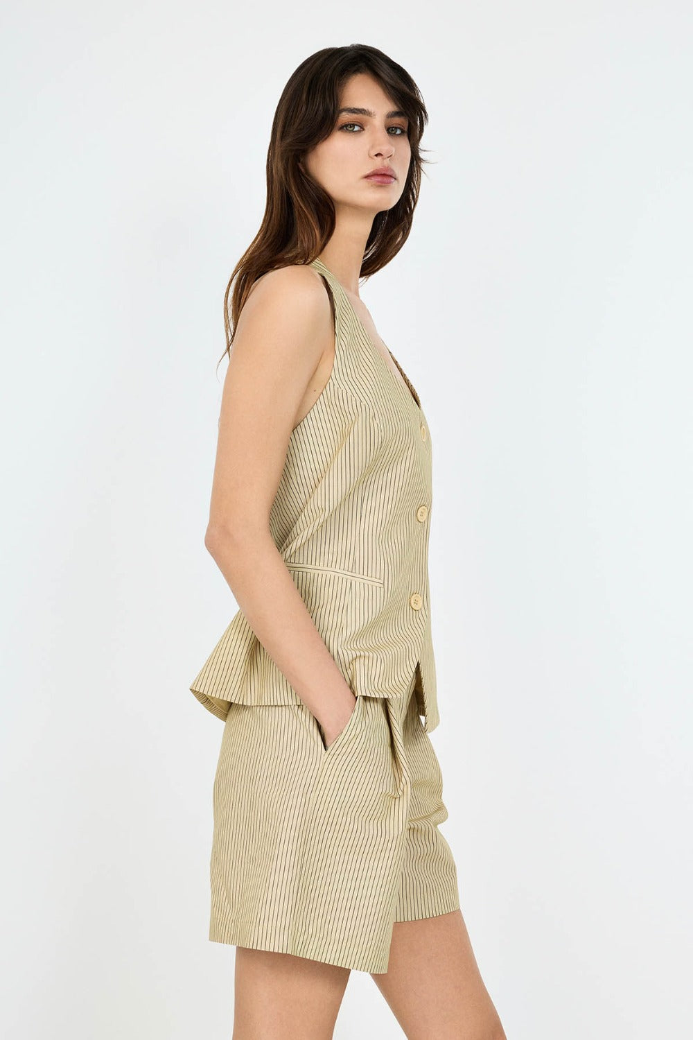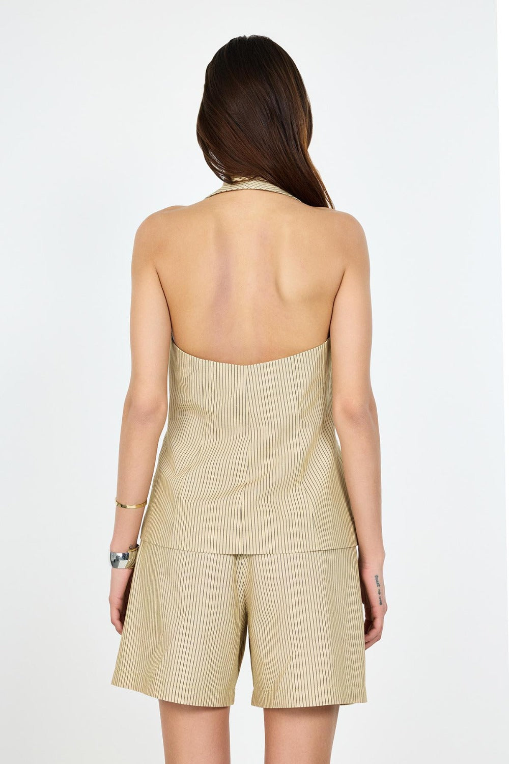 Keten Karışımlı Halter Yaka Sırtı Açık Yelek