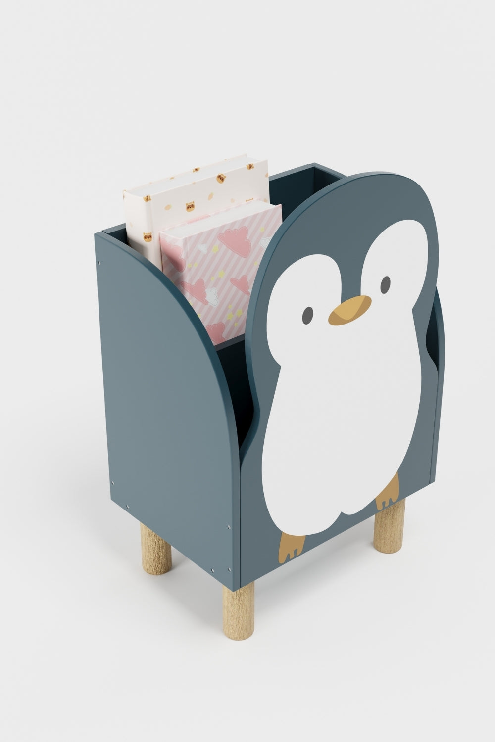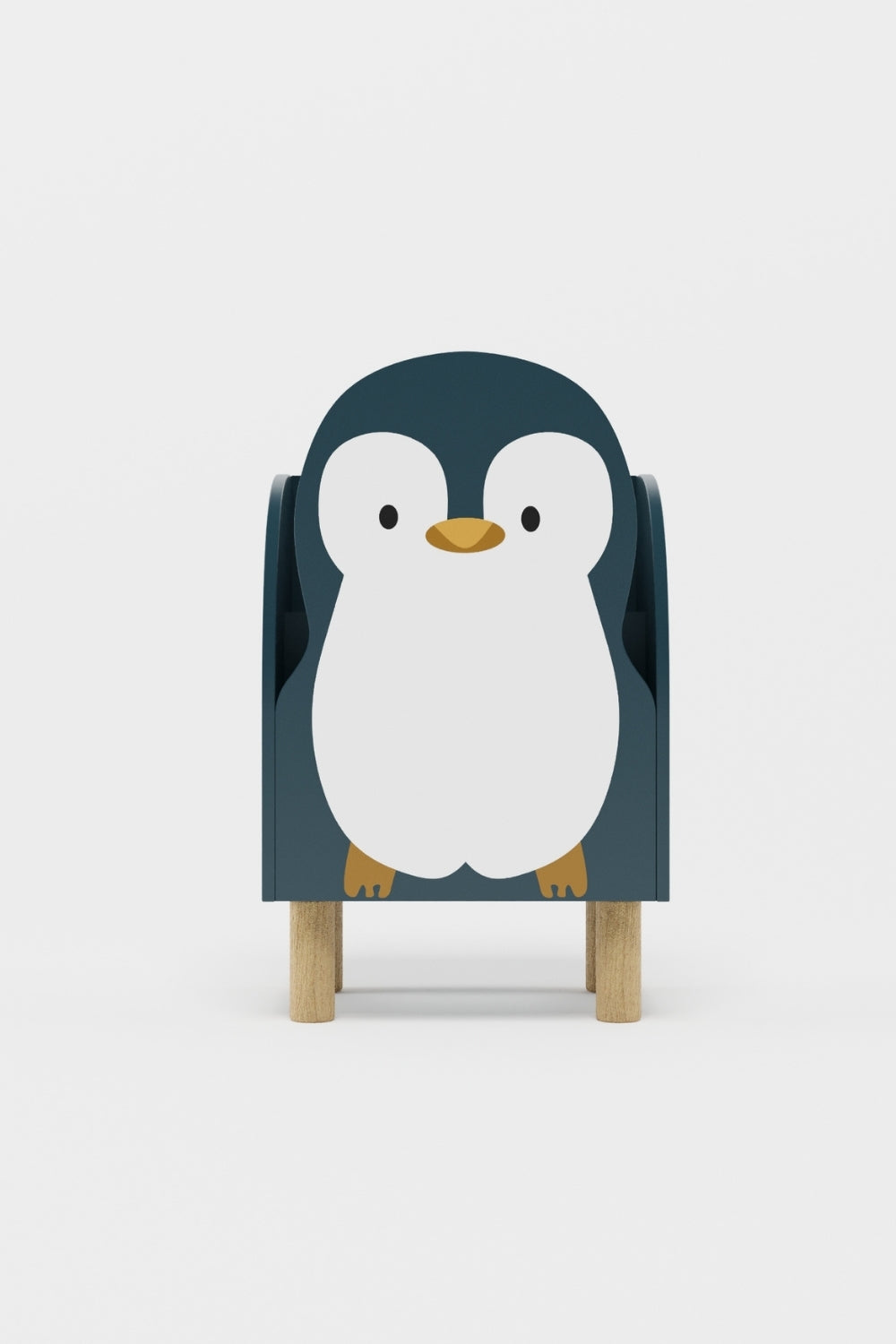 Penguen figürüyle tasarlanmış bu Montessori kitaplık, çocukların kitaplara kendi başlarına erişmelerini sağlayarak bağımsızlıklarını destekler. Hem eğitici hem dekoratif olan bu özel kitaplık, çocuk odasına neşeli ve estetik bir görünüm kazandırır.