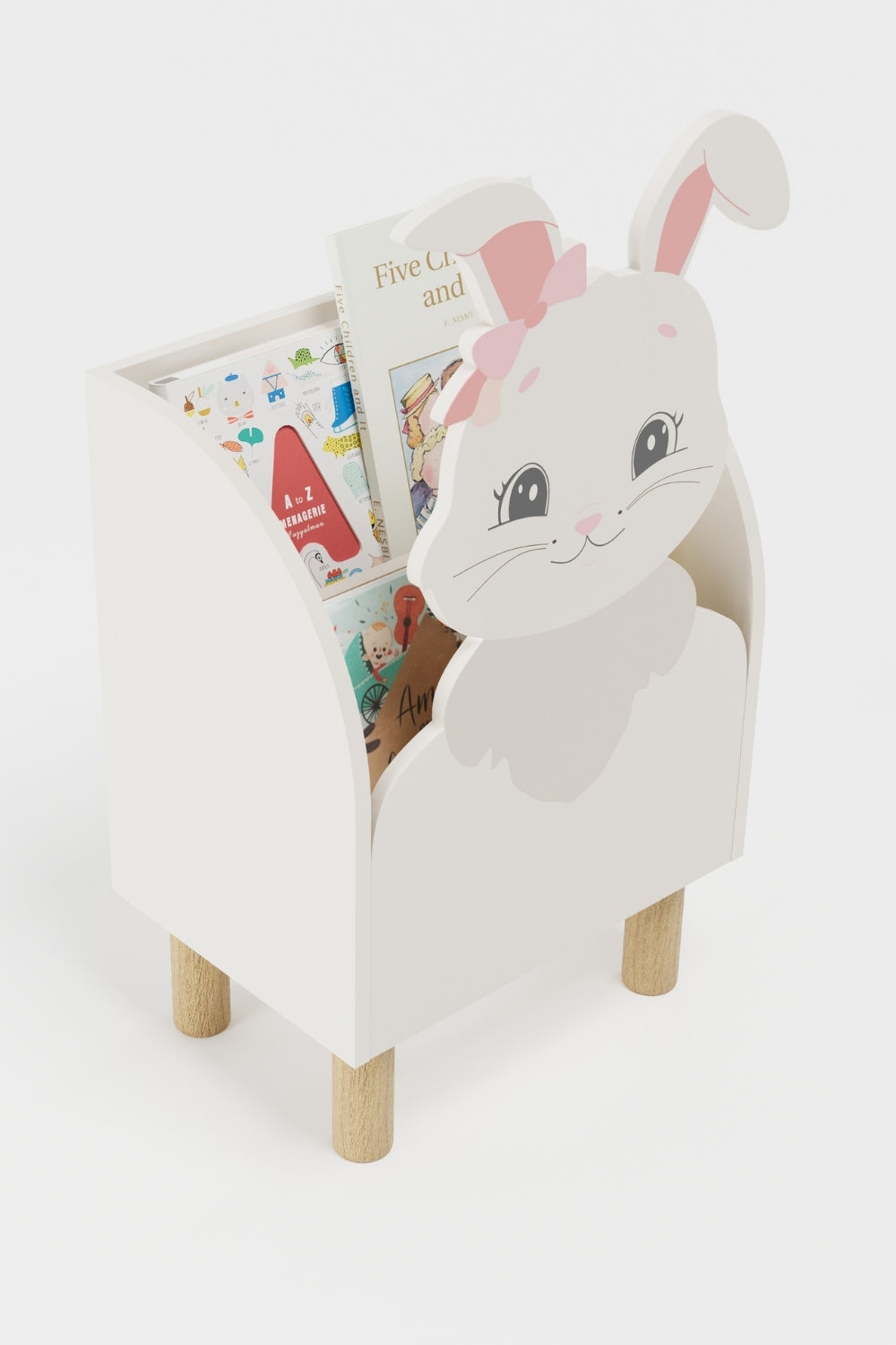Tavşan Pia figürlü Montessori kitaplık, çocukların kitaplara kendi başlarına kolayca ulaşabilmesi için tasarlanmıştır.Montessori prensiplerine uygun yapısı sayesinde çocukların bağımsızlık, düzen ve kitap okuma alışkanlığı kazanmalarını destekler.
