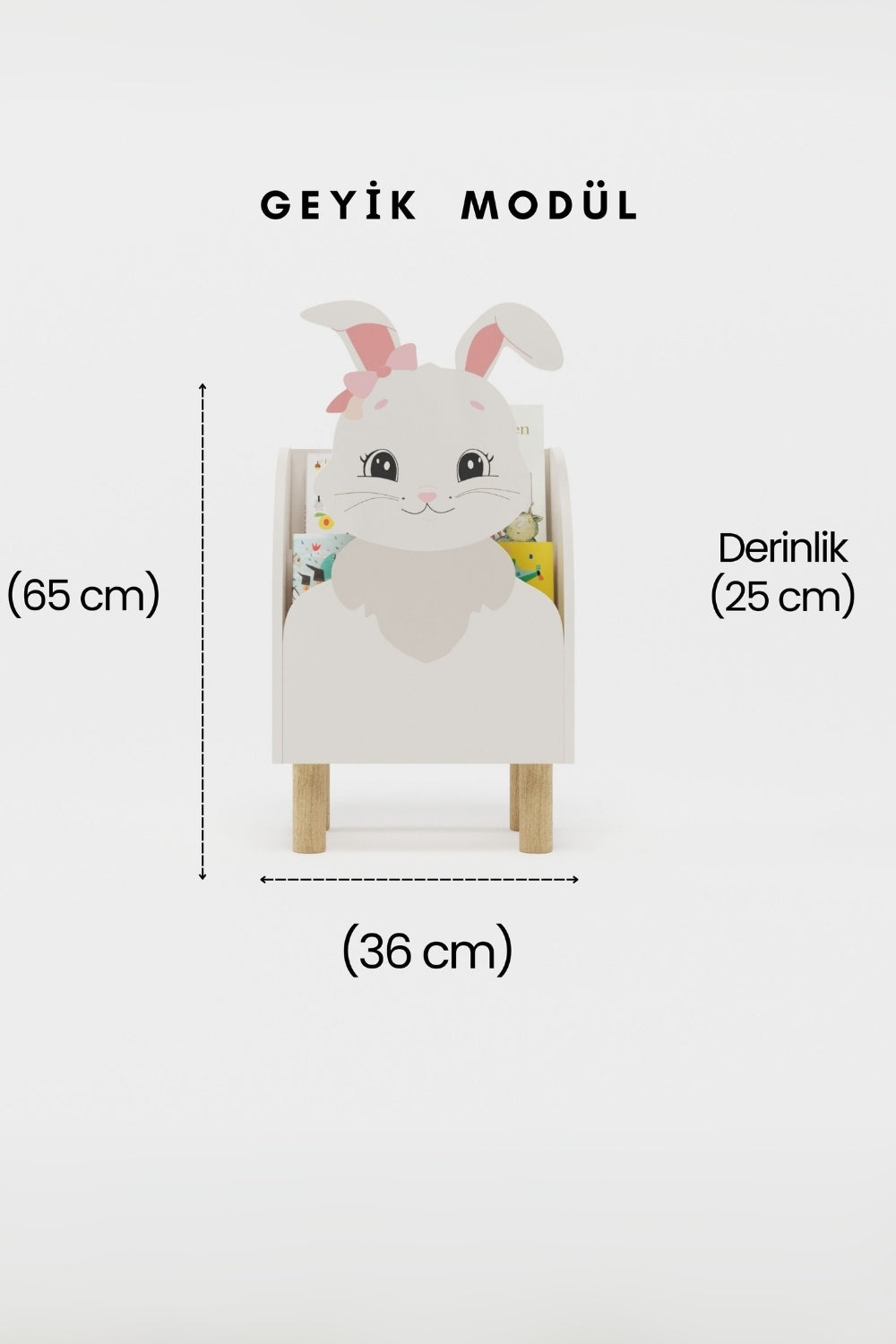 Sevimli tavşan figürü, çocuk odalarına sade, huzurlu ve sıcak bir atmosfer kazandırır.Yumuşak hatlı formu ve güvenli tasarımı ile küçük yaş grupları için ideal bir kullanım sunar.Ahşap yapısı sayesinde hem dayanıklı hem de estetik bir görünüm sağlar.