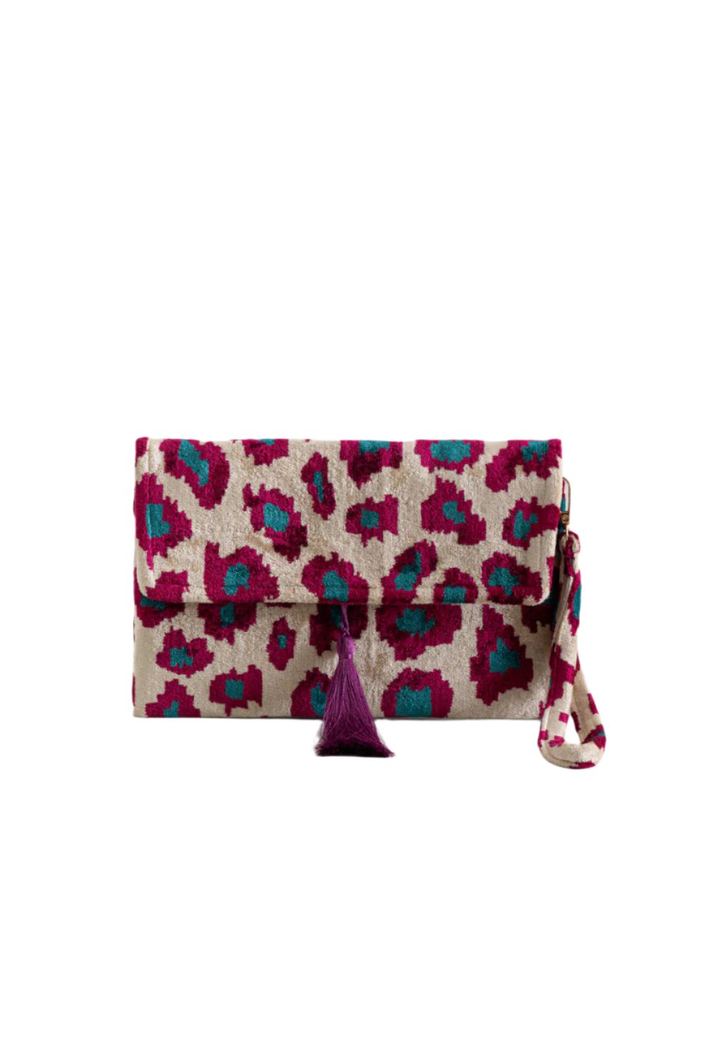 Tüm günlük ihtiyaçları taşıyacak şekilde tasarlanan el çantaları, renkleri ve desenleriyle eklektik ve canlı renkleri sevenler için çok renkli geleneksel Özbek motifleri donatılmış ipek kadifeden üretilmiştir.