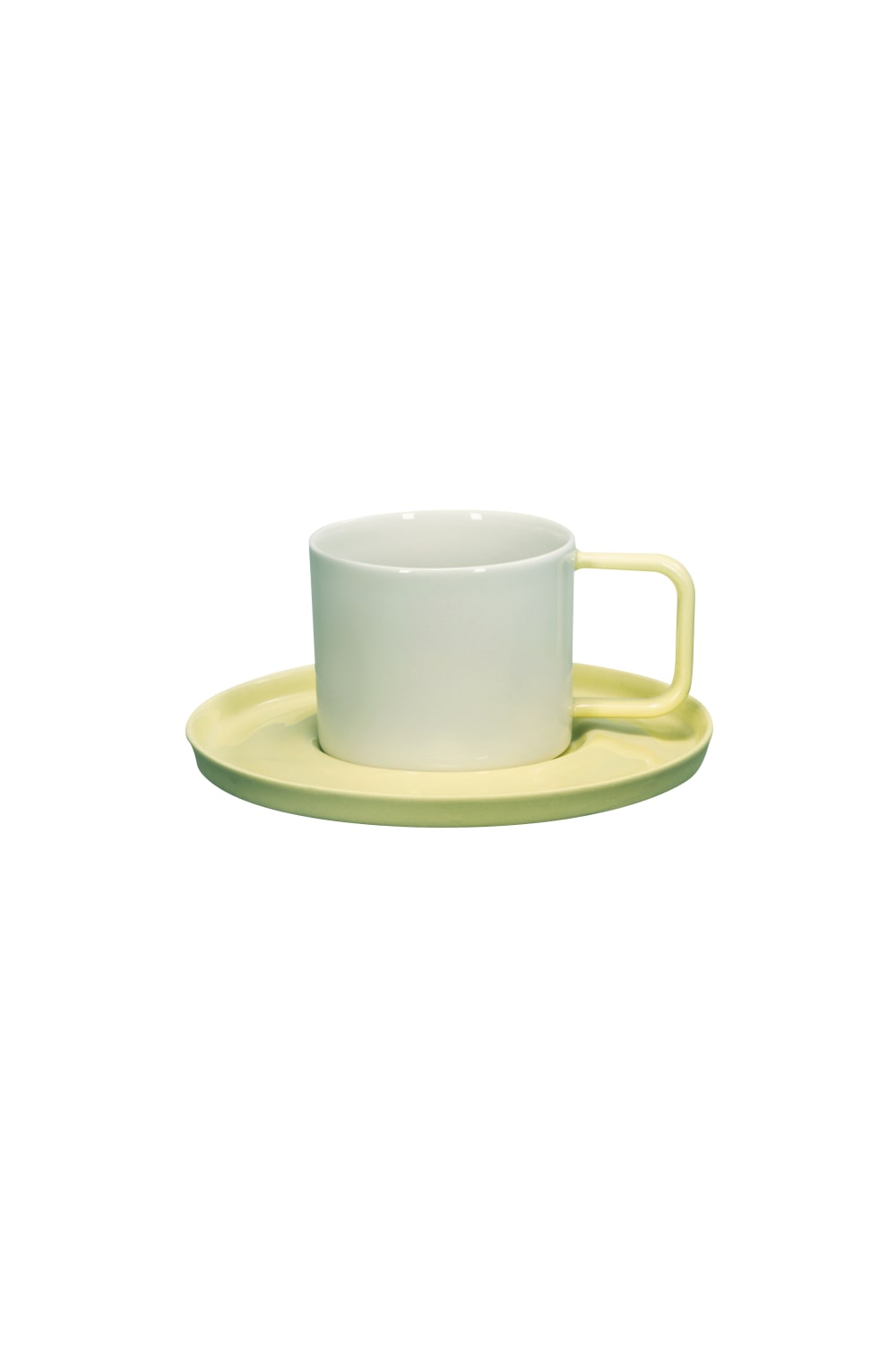 Josephine El Yapımı Porselen Türk Kahvesi Fincanı & Tabağı / Beyaz - Sarı