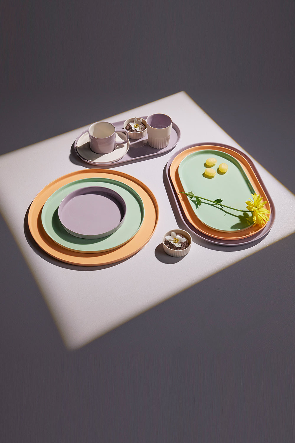 Özel tasarım, el yapımı porselen sunum servis ürünü Pure Color oval tepsi.