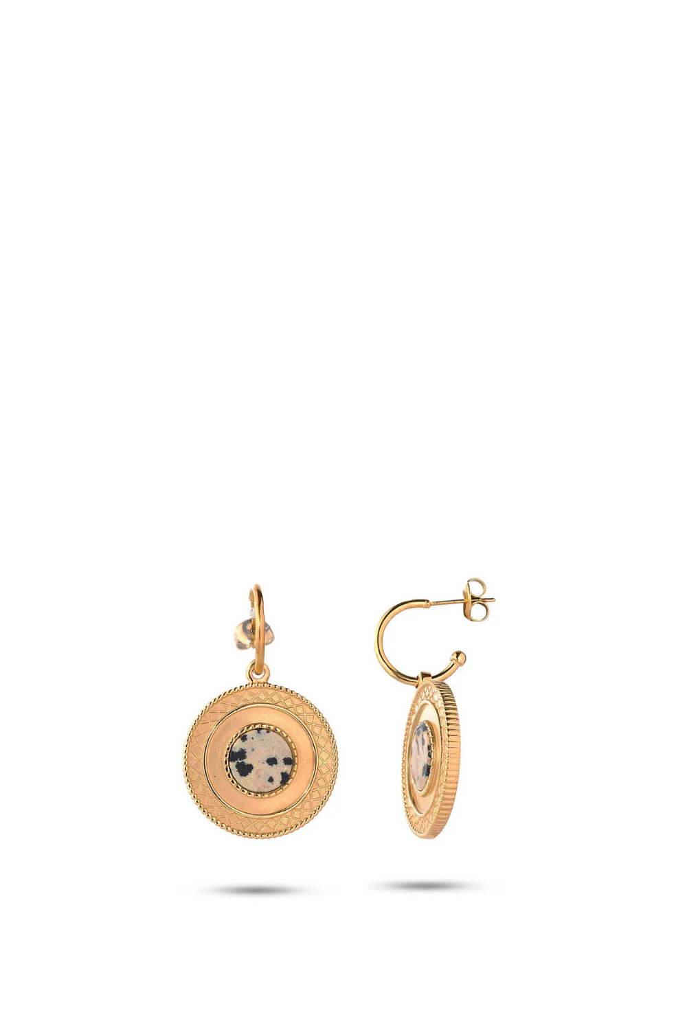 Tiana Desenli Doğal Taşlı 14 Ayar Altın Kaplama Çelik Kadın Küpe